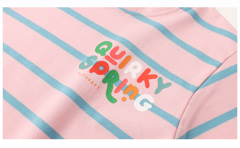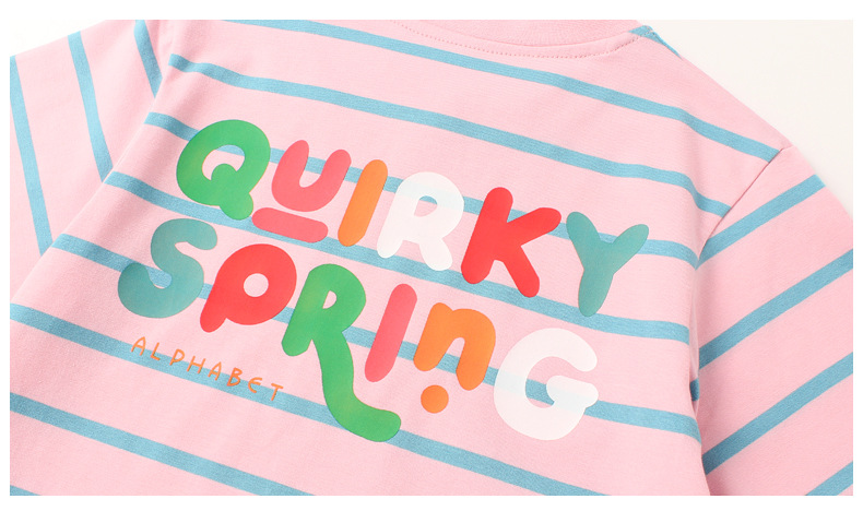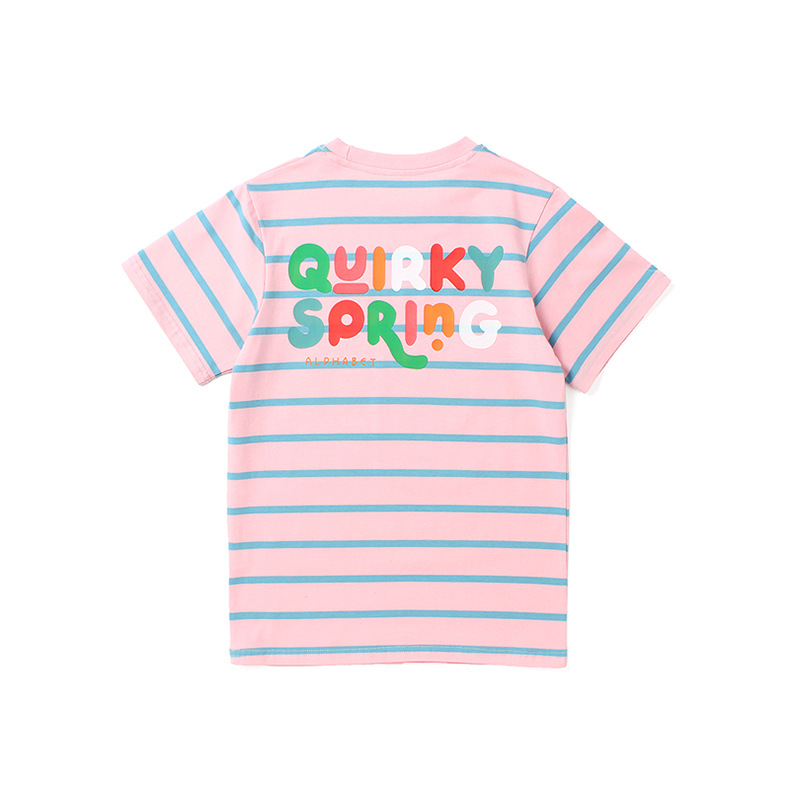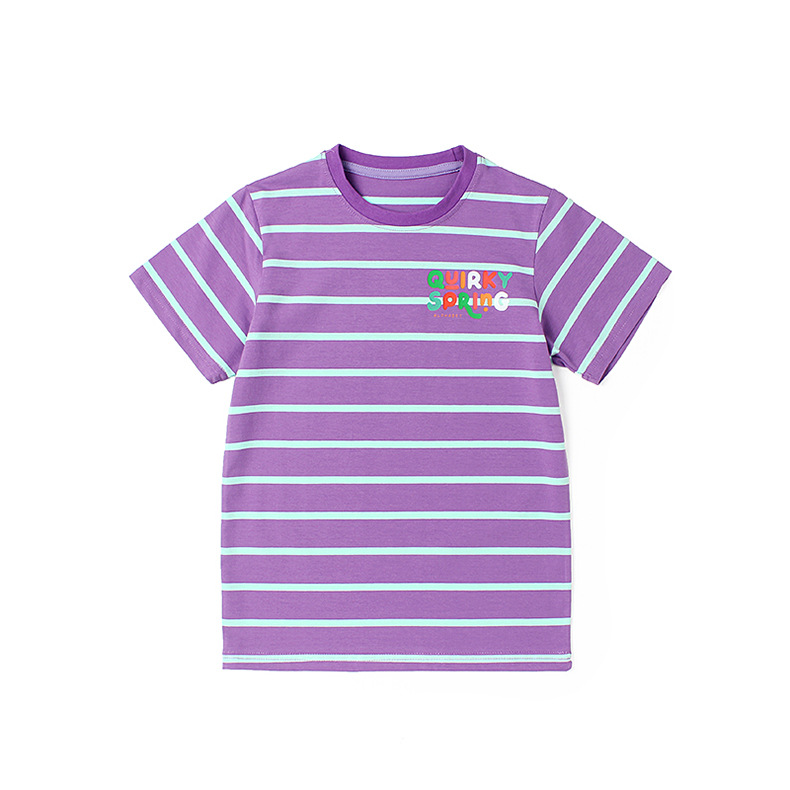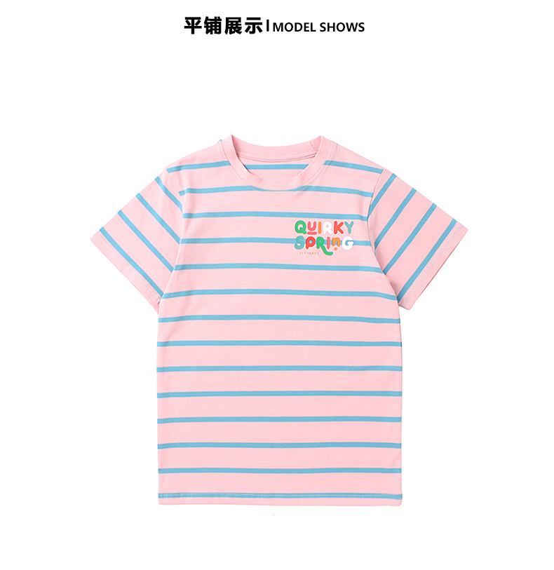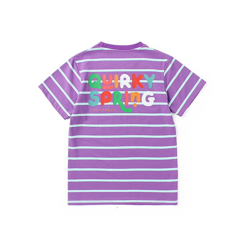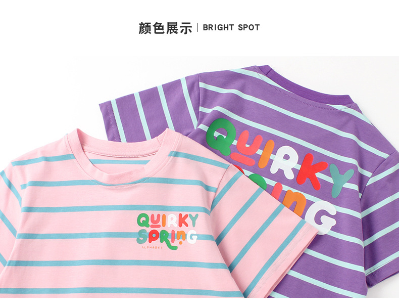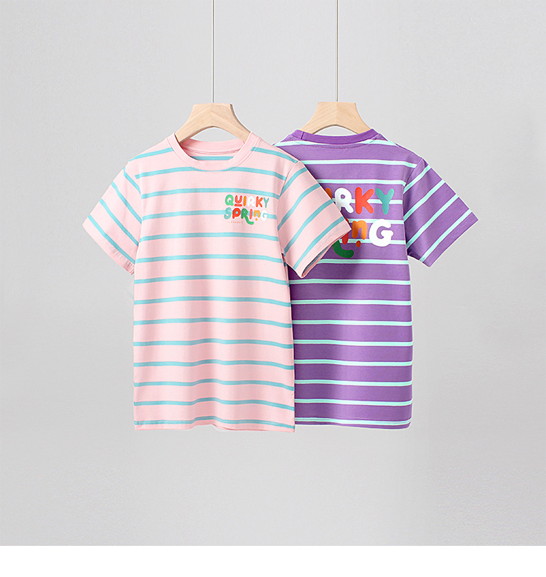 Ropa de verano estilo coreano para niños nueva camiseta de manga corta para niños letra del Tesoro femenino superior a rayas de manga corta para niñas al por mayor