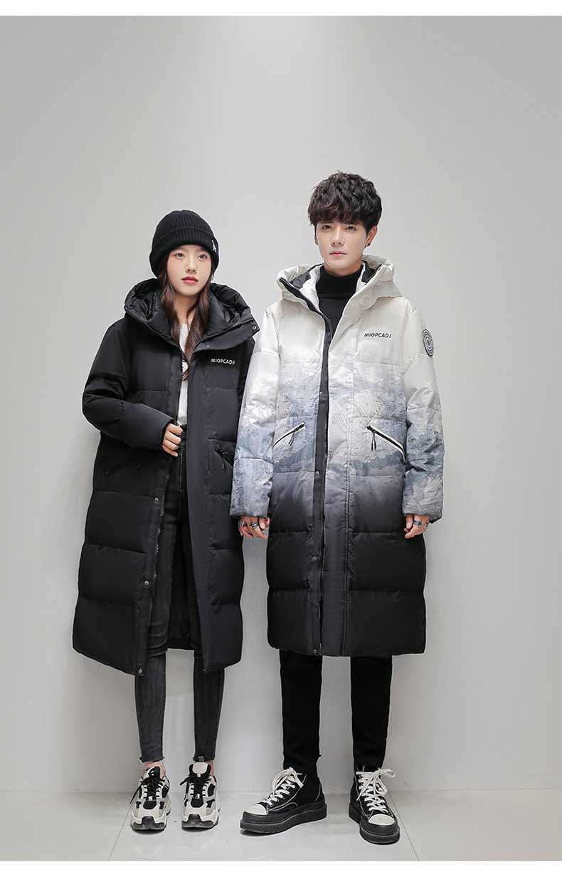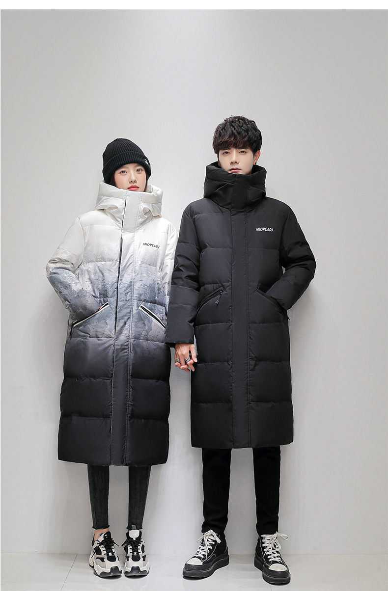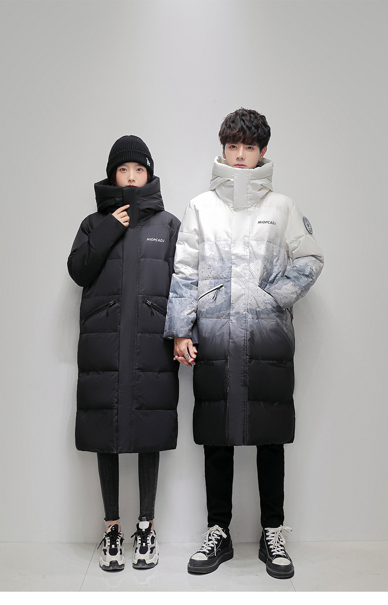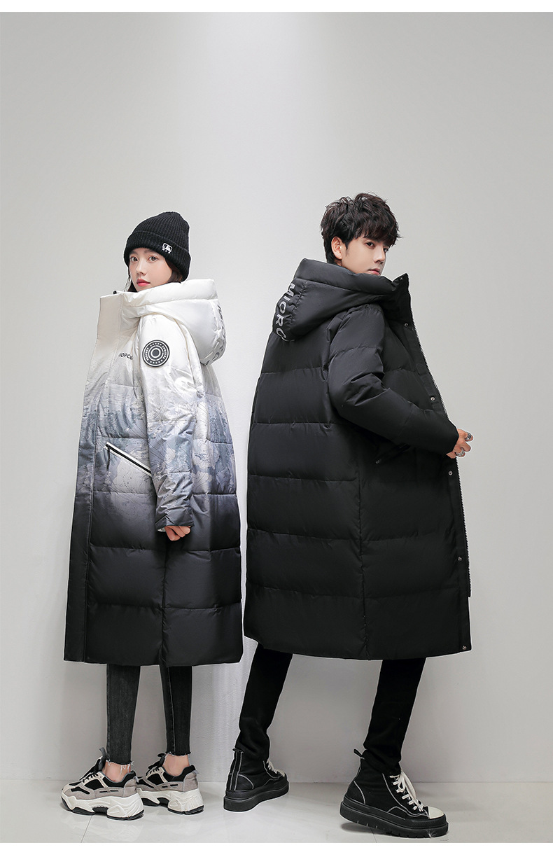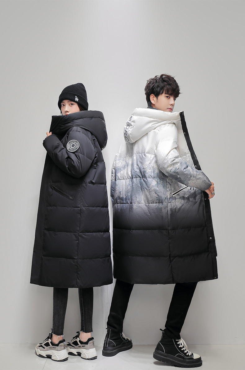 Comercio exterior transfronterizo ropa de algodón para hombres de invierno para hombres, largos sobre la rodilla, gruesos y cálidos, parejas degradadas, abrigos para jóvenes