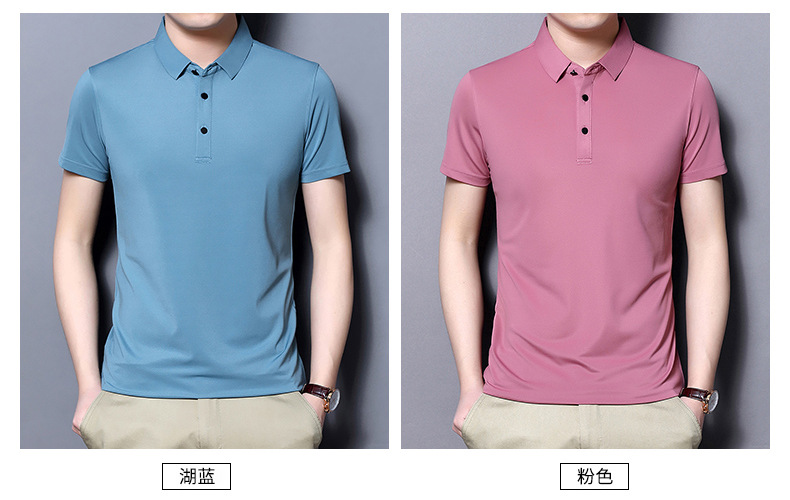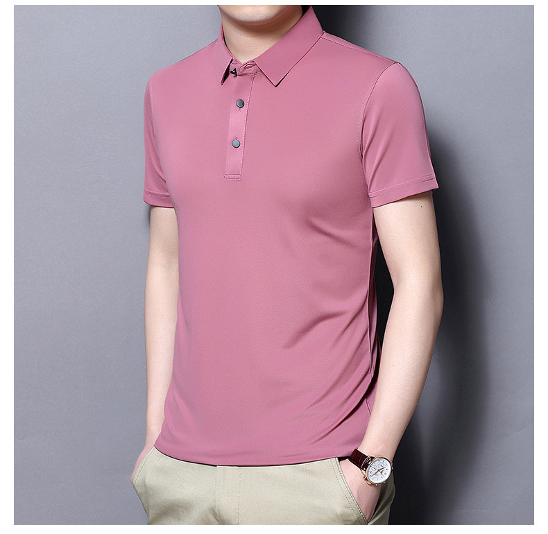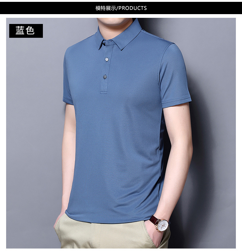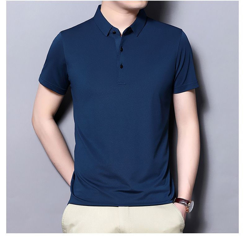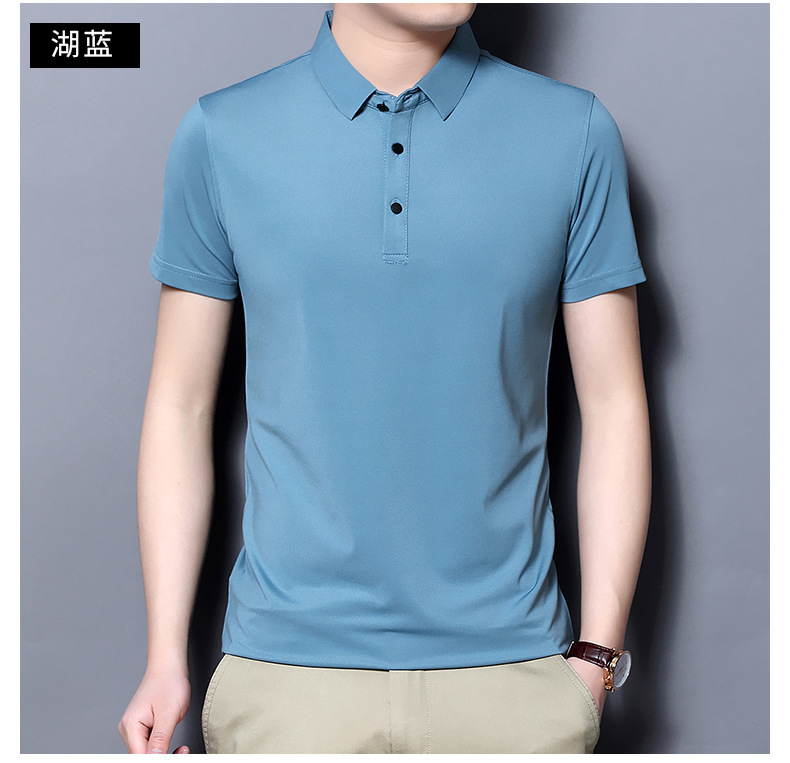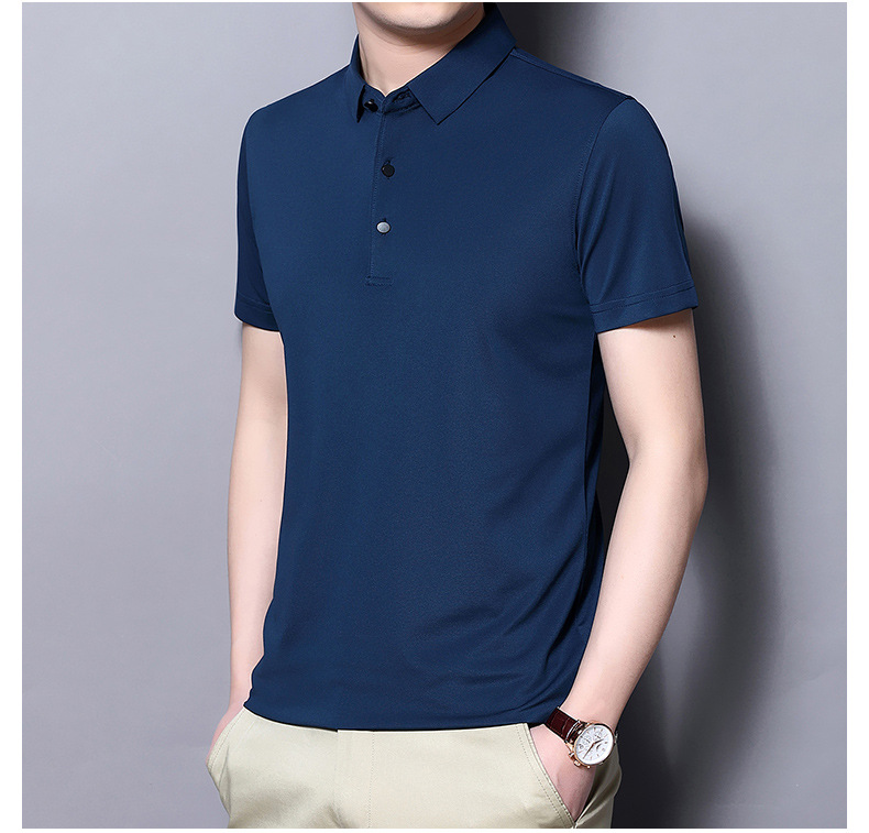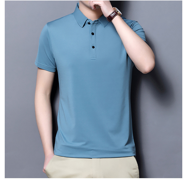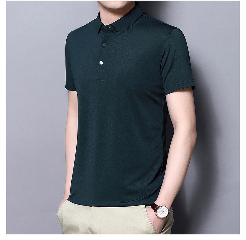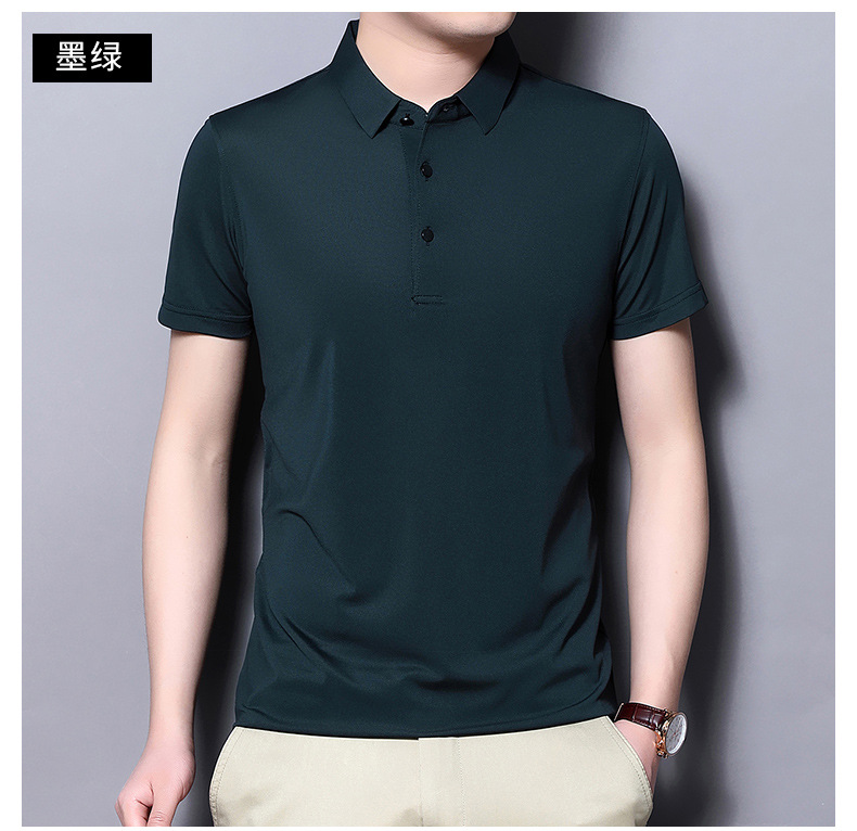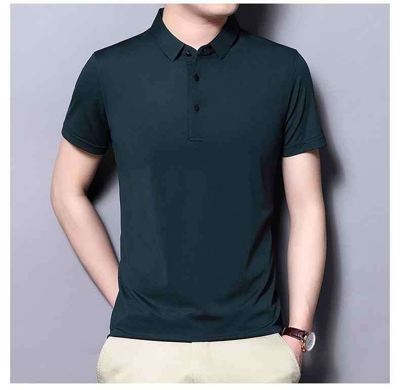 Tienda online Venta caliente de alta elasticidad sin costuras hielo seda Polo camisa de verano de los hombres no planchar de secado rápido de manga corta Camiseta de los hombres Nuevo