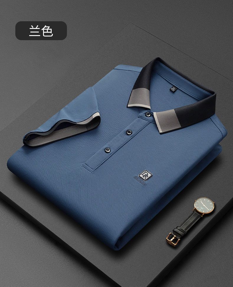 Nuevo Polo guapo de los hombres de verano que cose la Camiseta de algodón mercerizado de los hombres de moda flojos cómodos guapos
