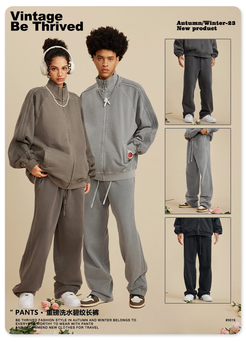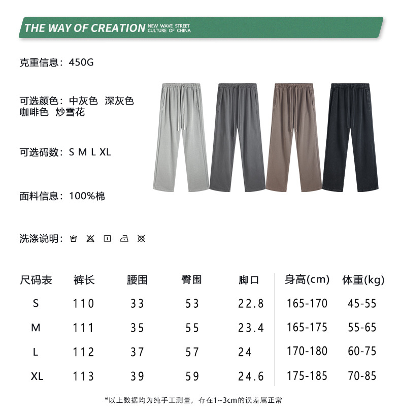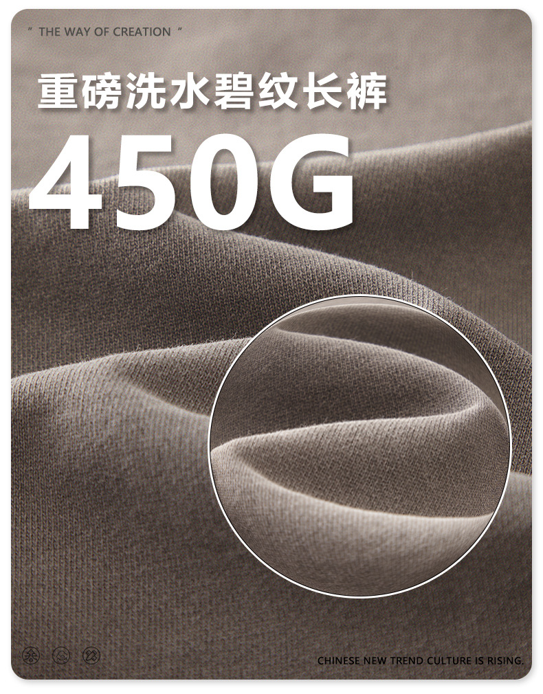 BE Men's Wear 2025 Spring and Autumn Heavy 450G Pantalones juveniles lavados Pantalones deportivos rectos sueltos de la marca de moda americana
