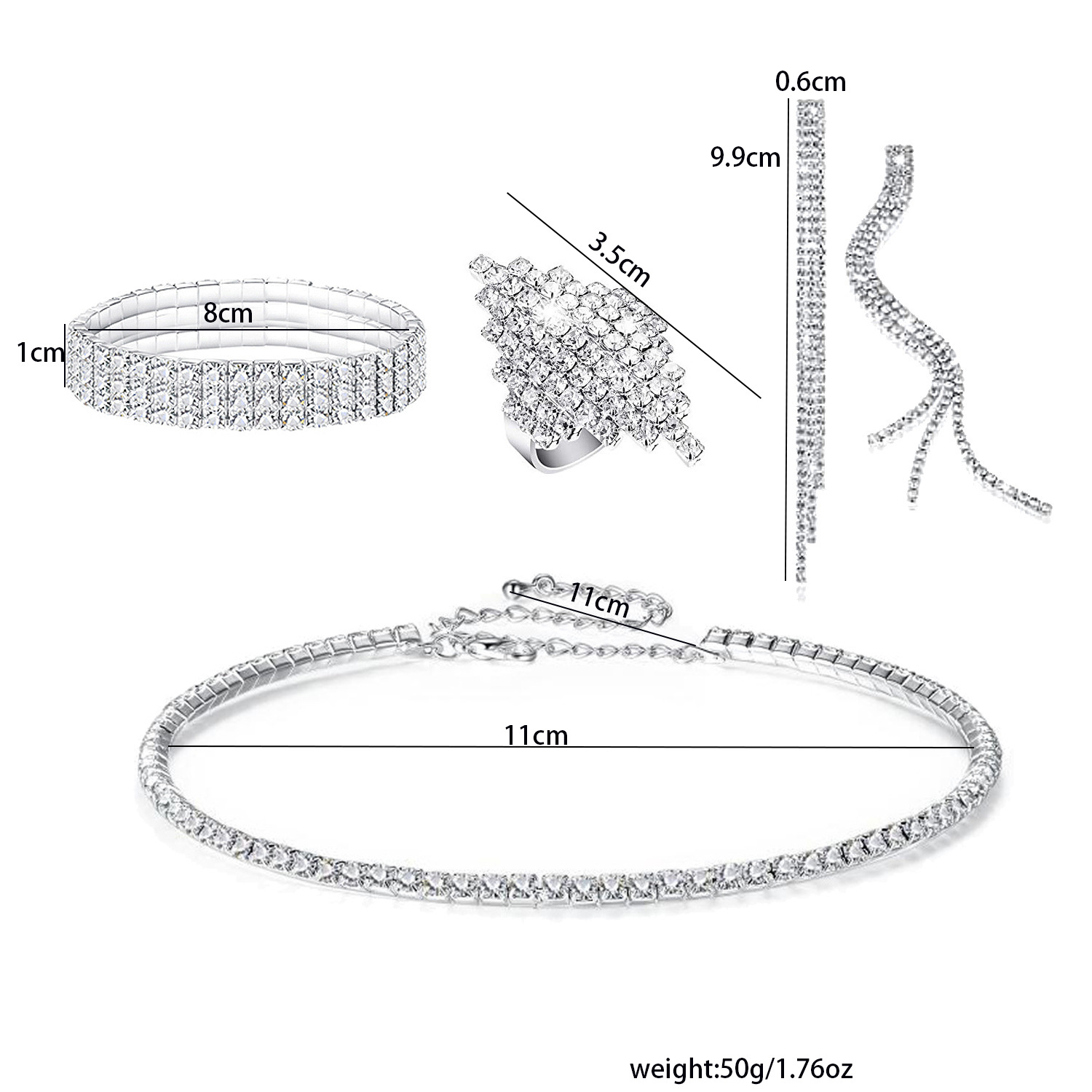 Garra de cobre europeo y americano collar de diamantes pendientes pulsera anillo nupcial de cuatro piezas Amazon dama de honor collar traje