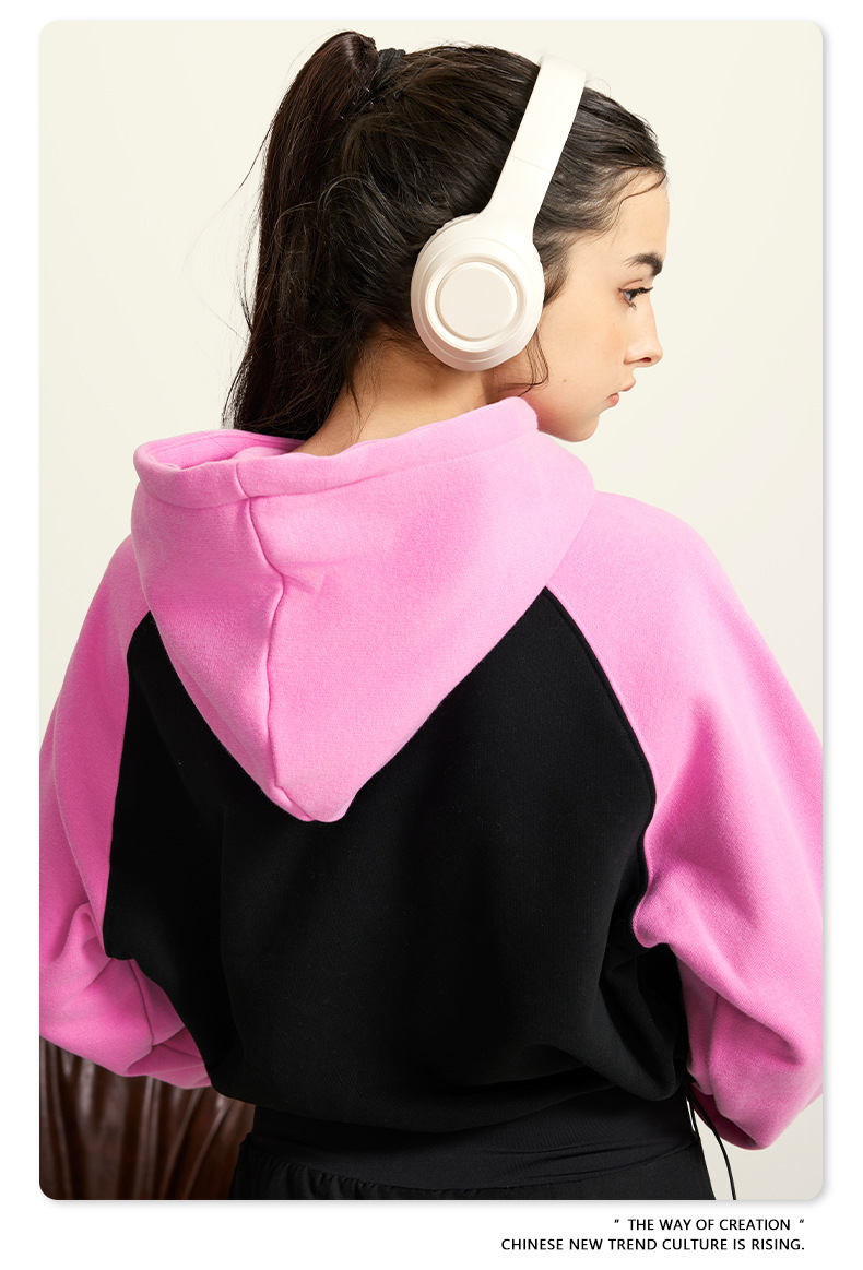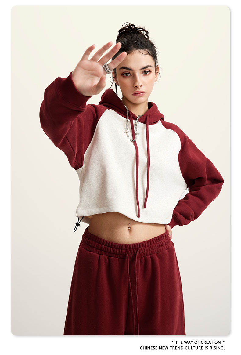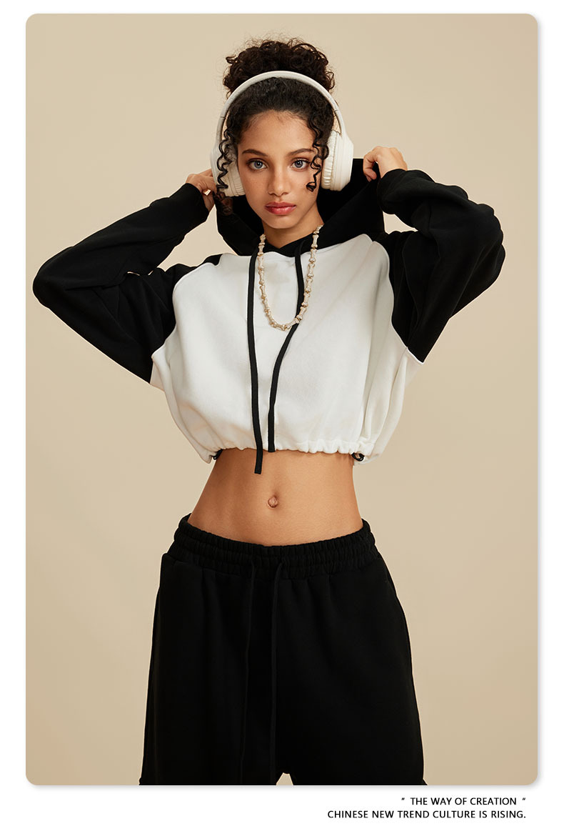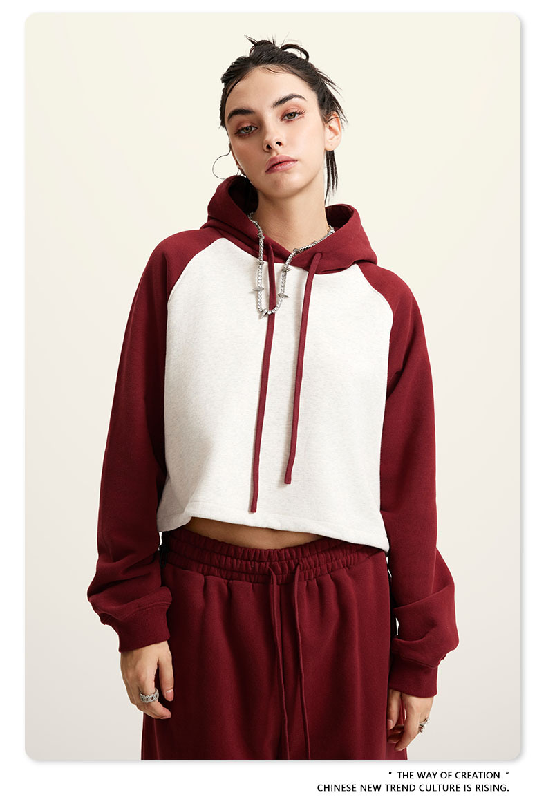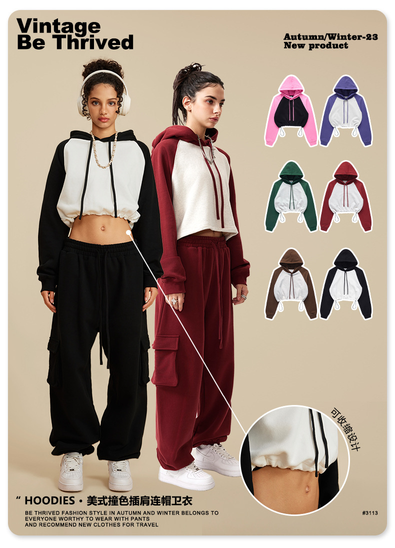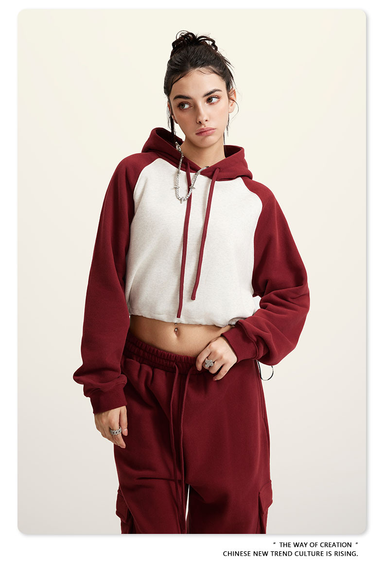 BE ropa de mujer 2023 otoño e invierno Color de contraste americano Raglan BM estilo corto chica caliente suéter con capucha chica caliente marca de moda con capucha para mujeres