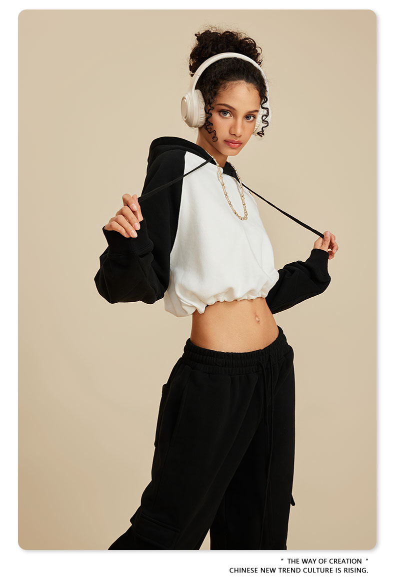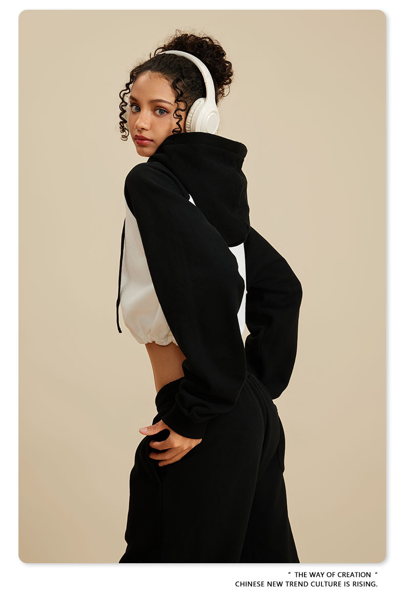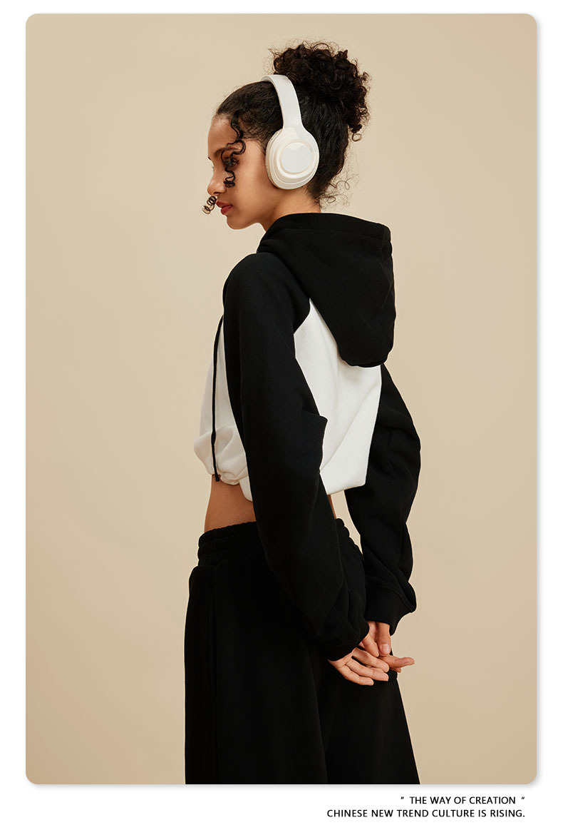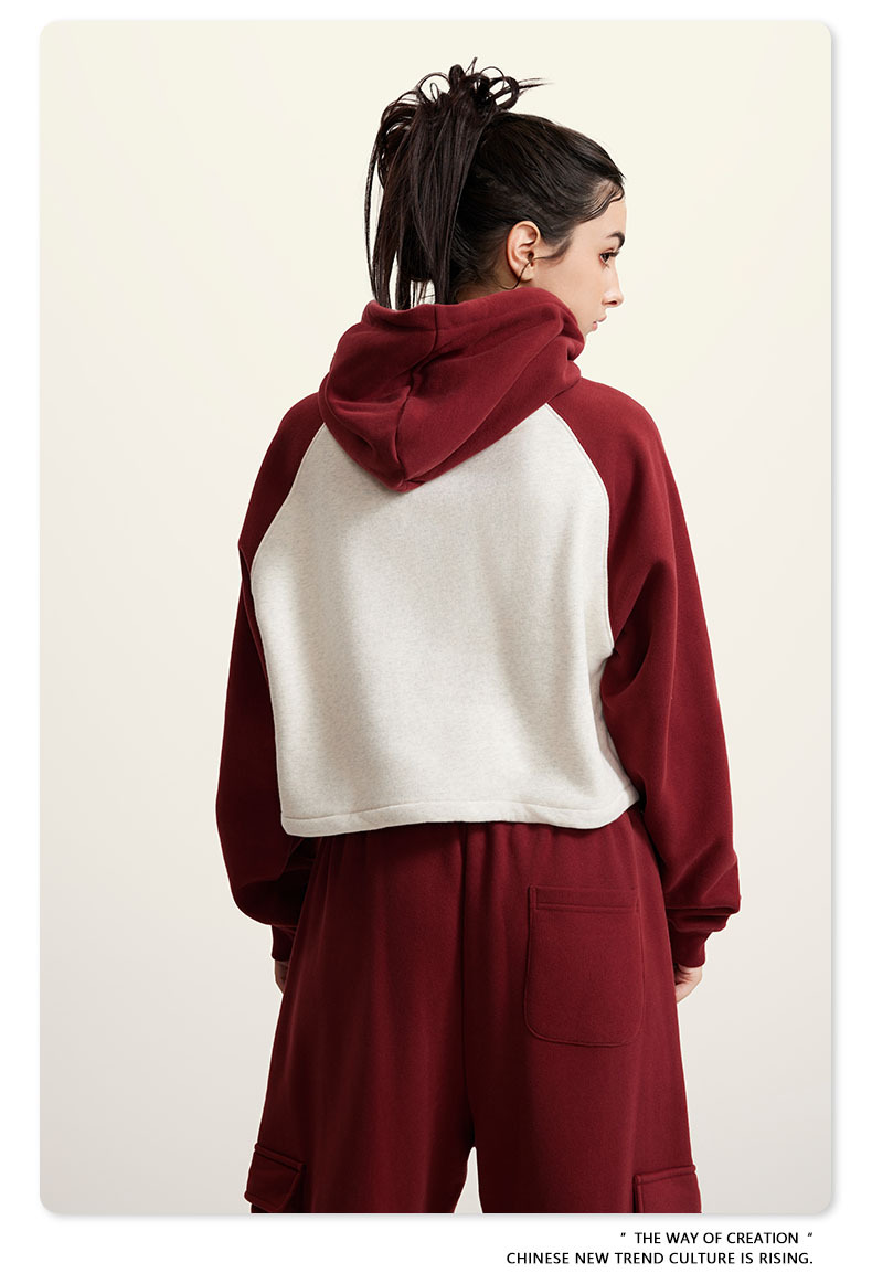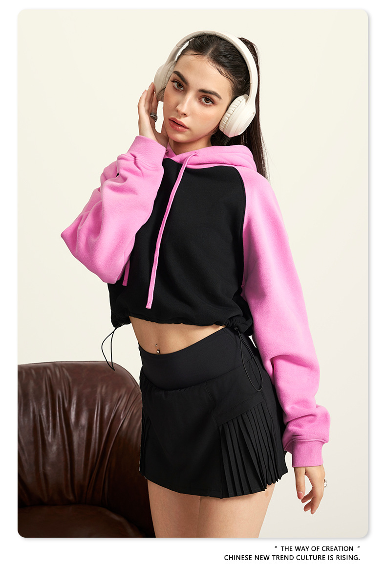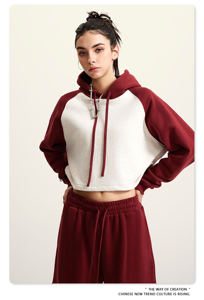 BE ropa de mujer 2023 otoño e invierno Color de contraste americano Raglan BM estilo corto chica caliente suéter con capucha chica caliente marca de moda con capucha para mujeres