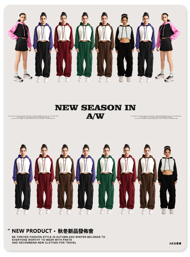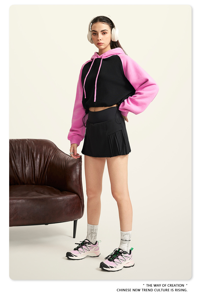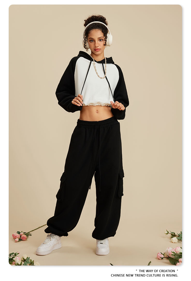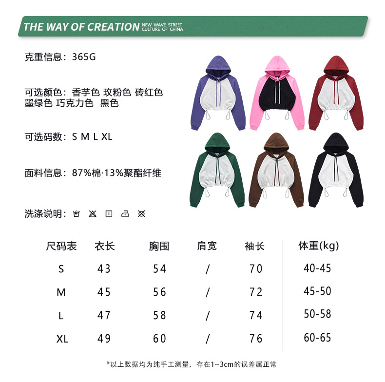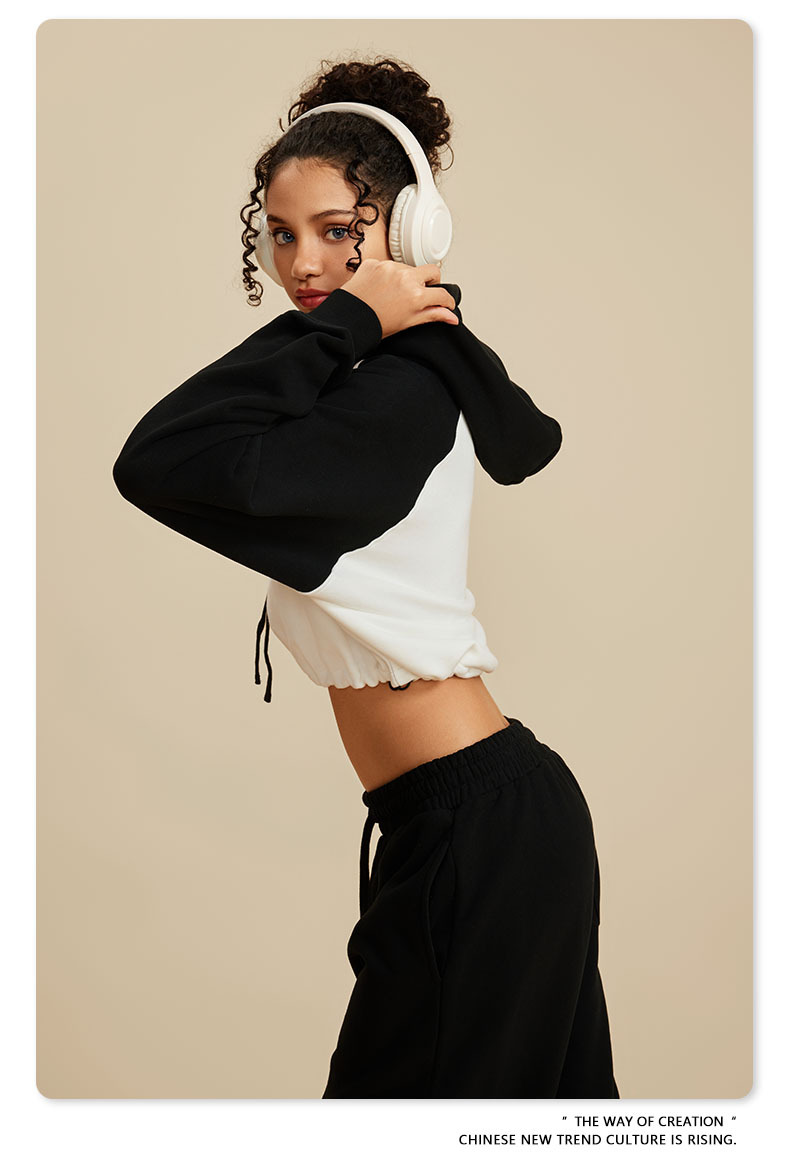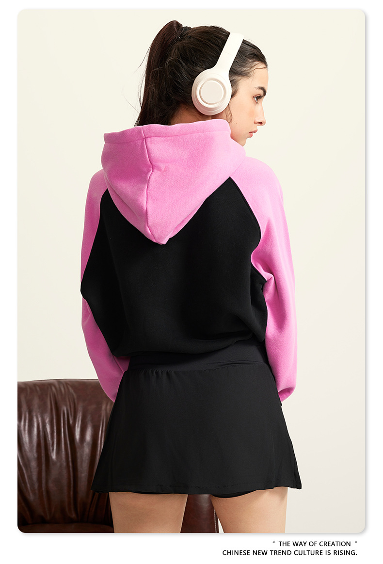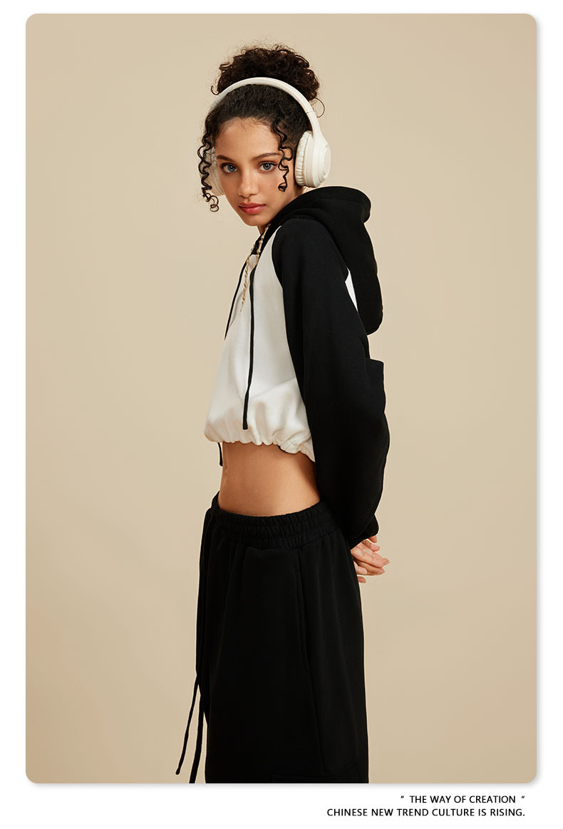 BE ropa de mujer 2023 otoño e invierno Color de contraste americano Raglan BM estilo corto chica caliente suéter con capucha chica caliente marca de moda con capucha para mujeres