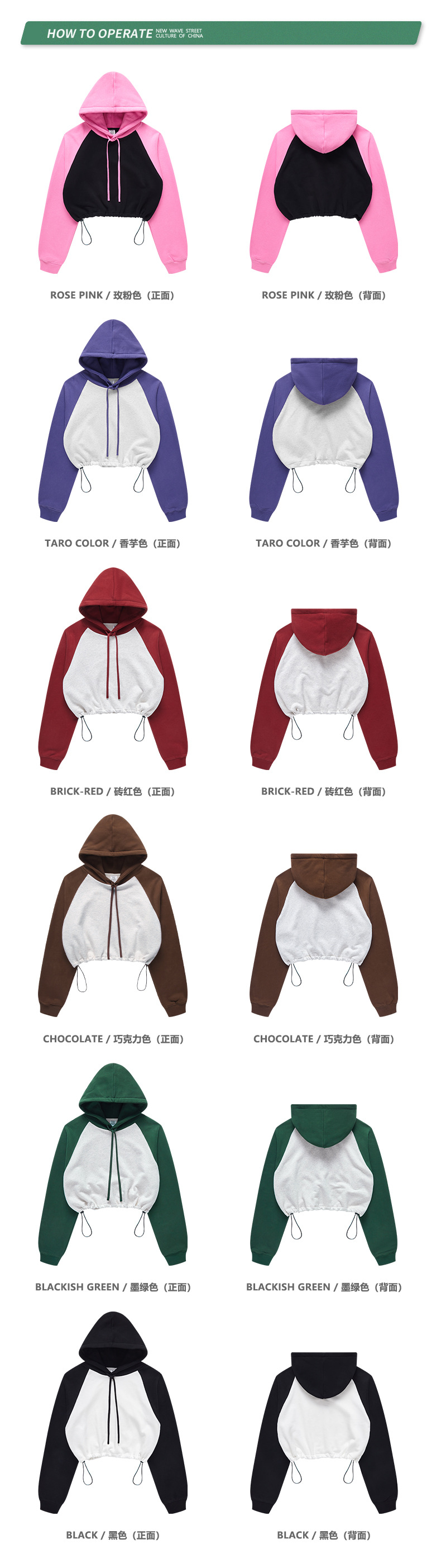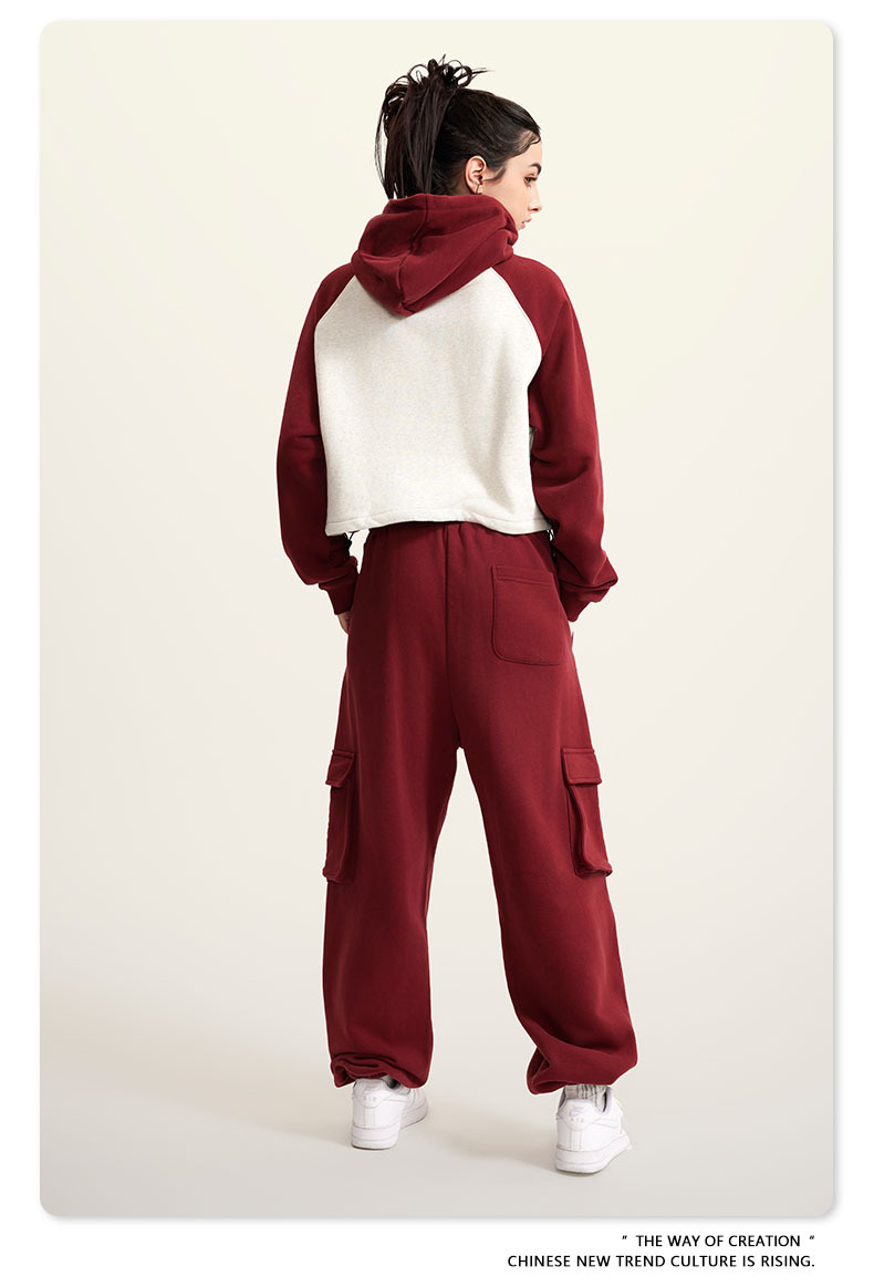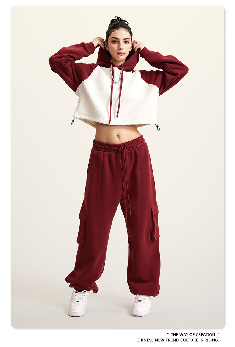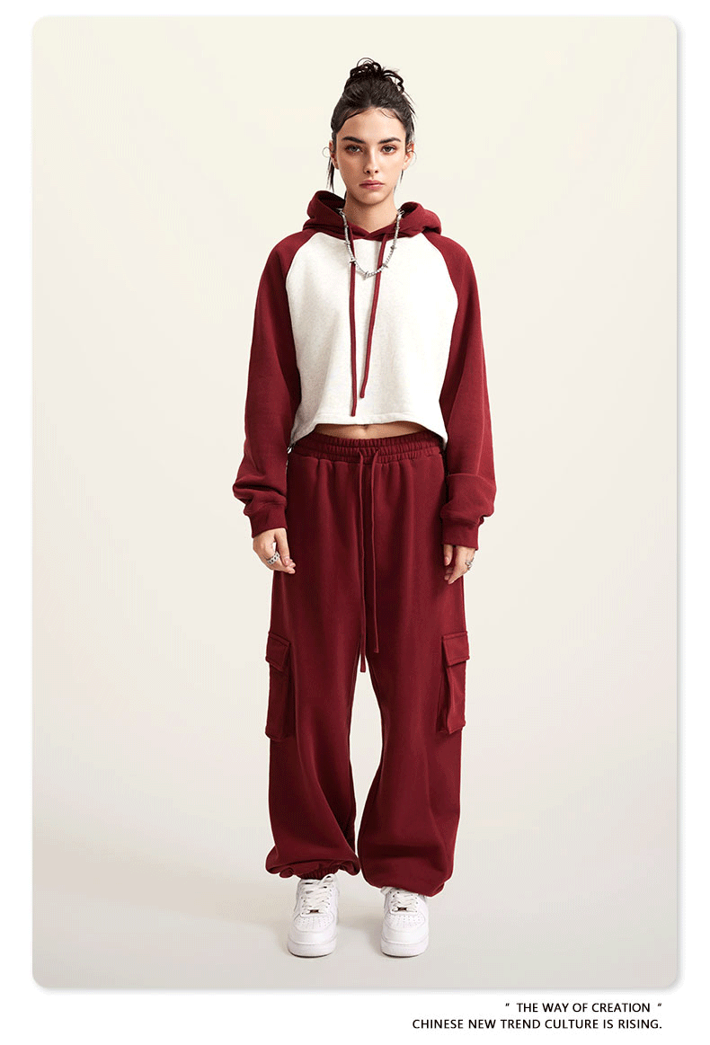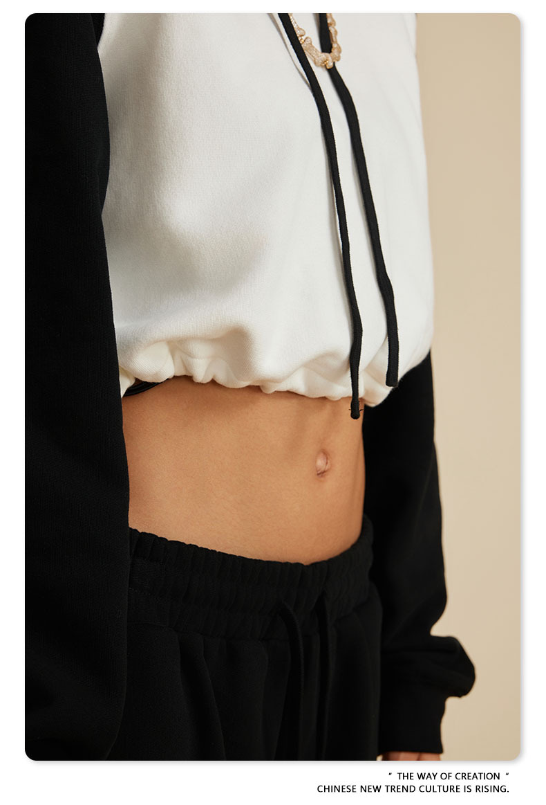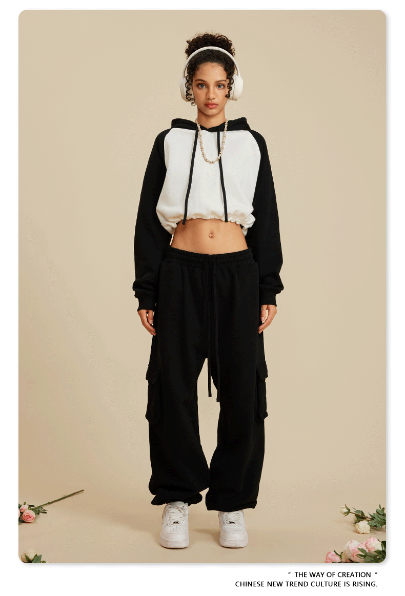 BE ropa de mujer 2023 otoño e invierno Color de contraste americano Raglan BM estilo corto chica caliente suéter con capucha chica caliente marca de moda con capucha para mujeres