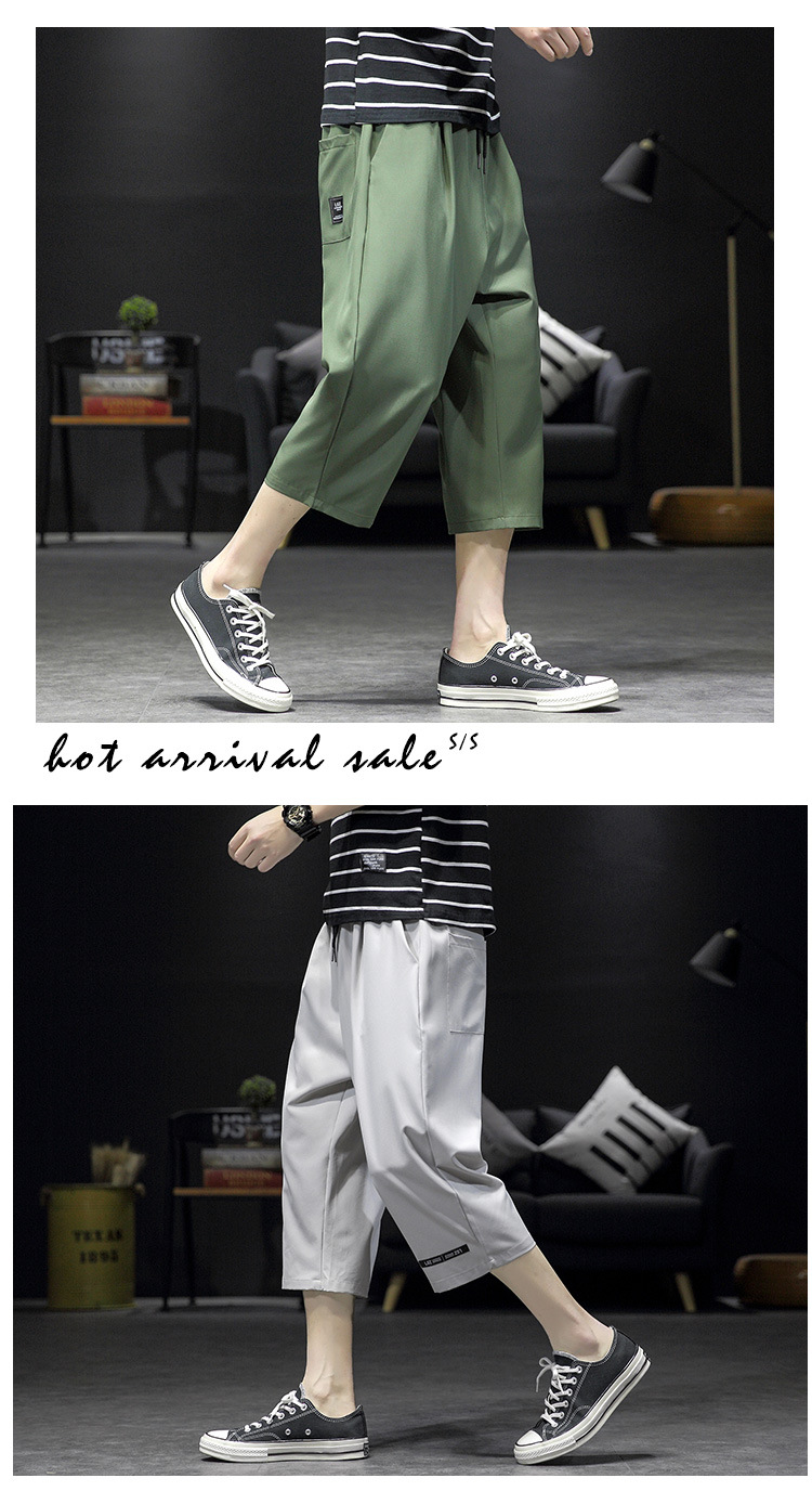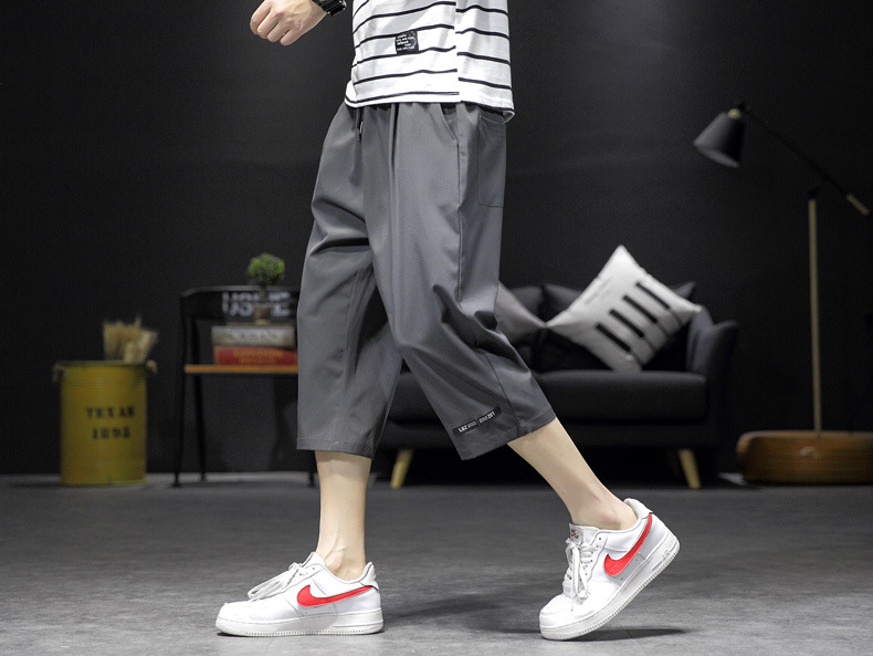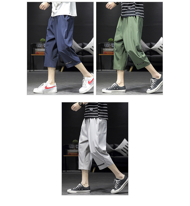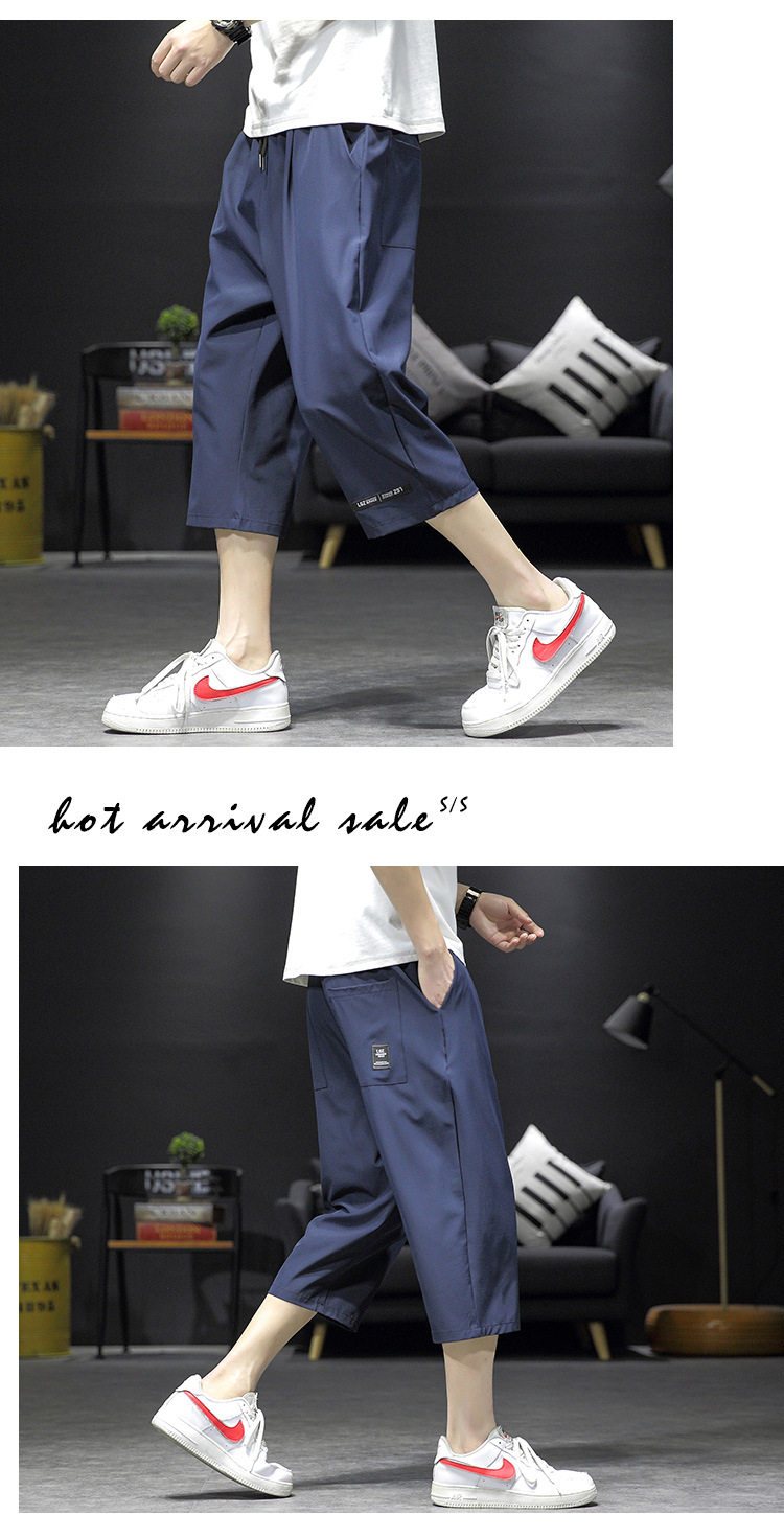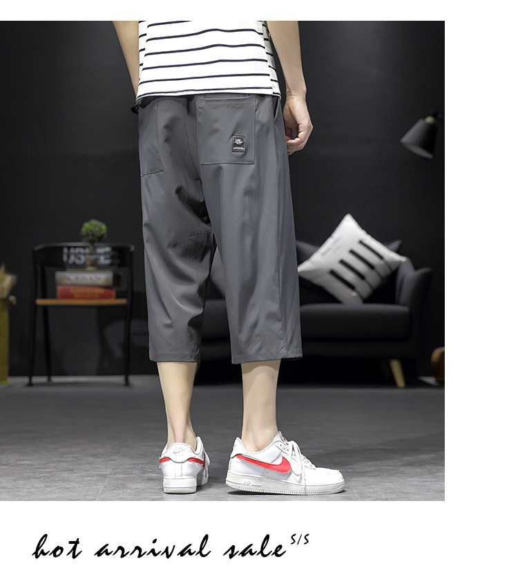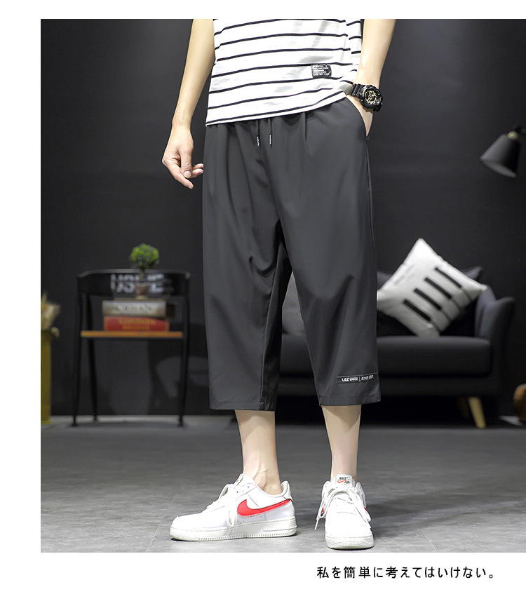 ¡Cool! Seda de hielo recortada pantalones cortos de los hombres de verano delgada suelta casual deportes sobre la rodilla de secado rápido 7 desgaste exterior