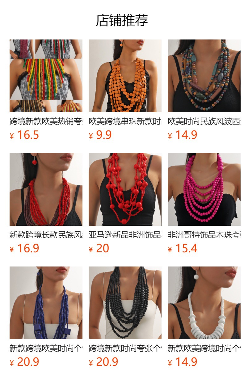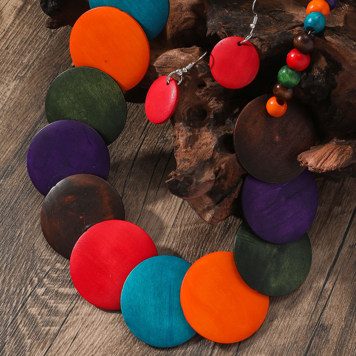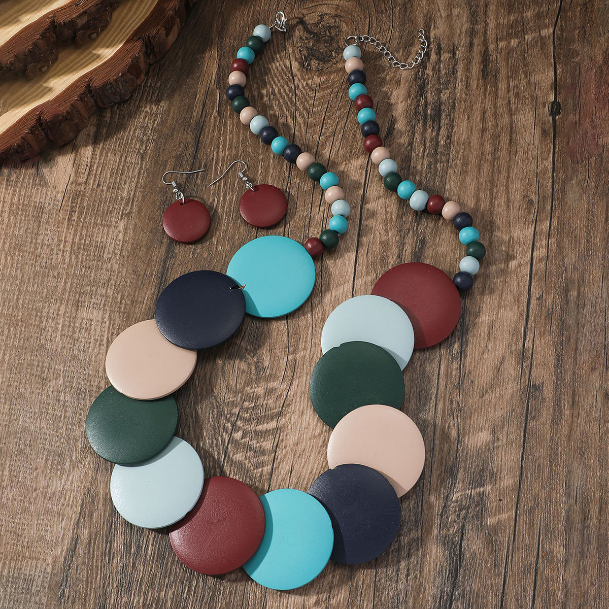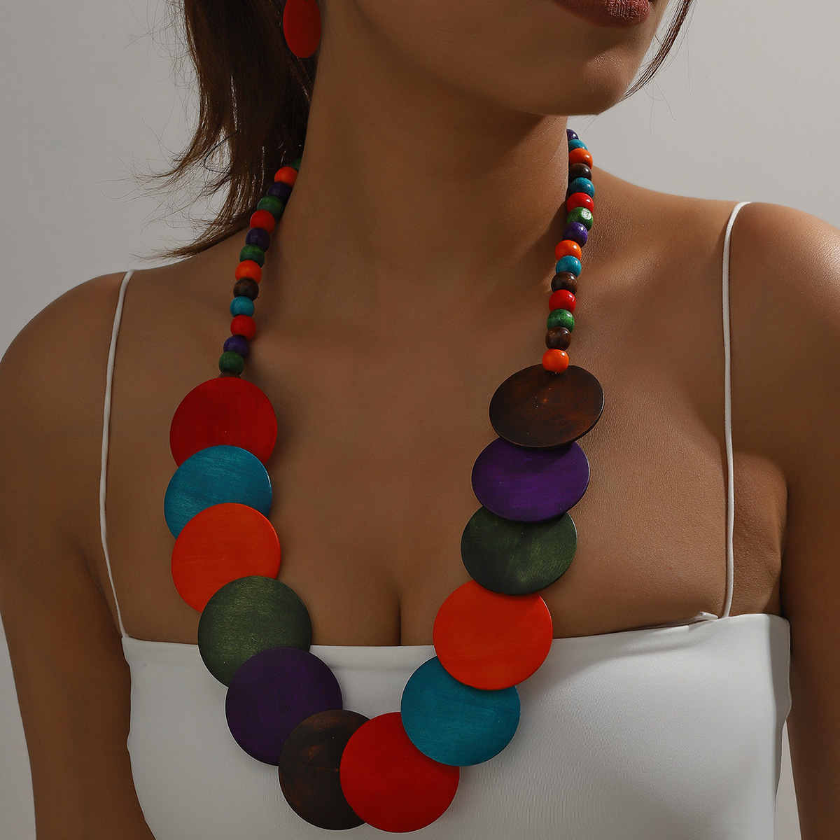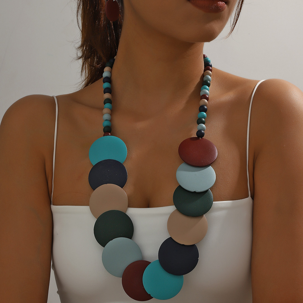 Traje de joyería de mujer de estilo étnico bohemio de múltiples capas con cuentas redondas grandes multicolores retro europeo y americano