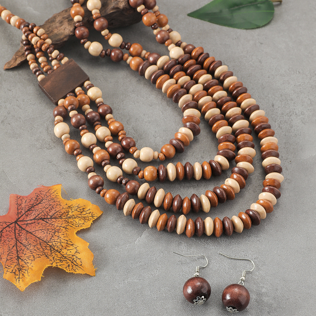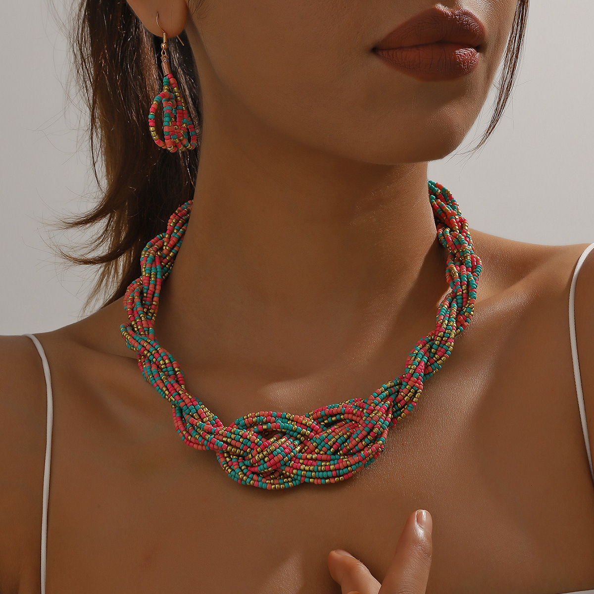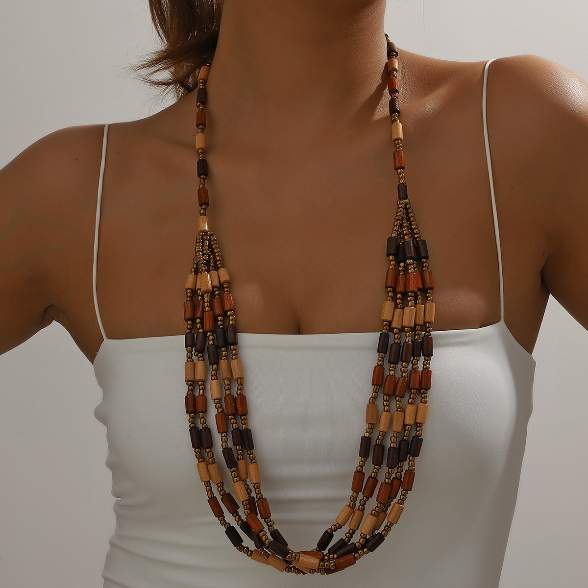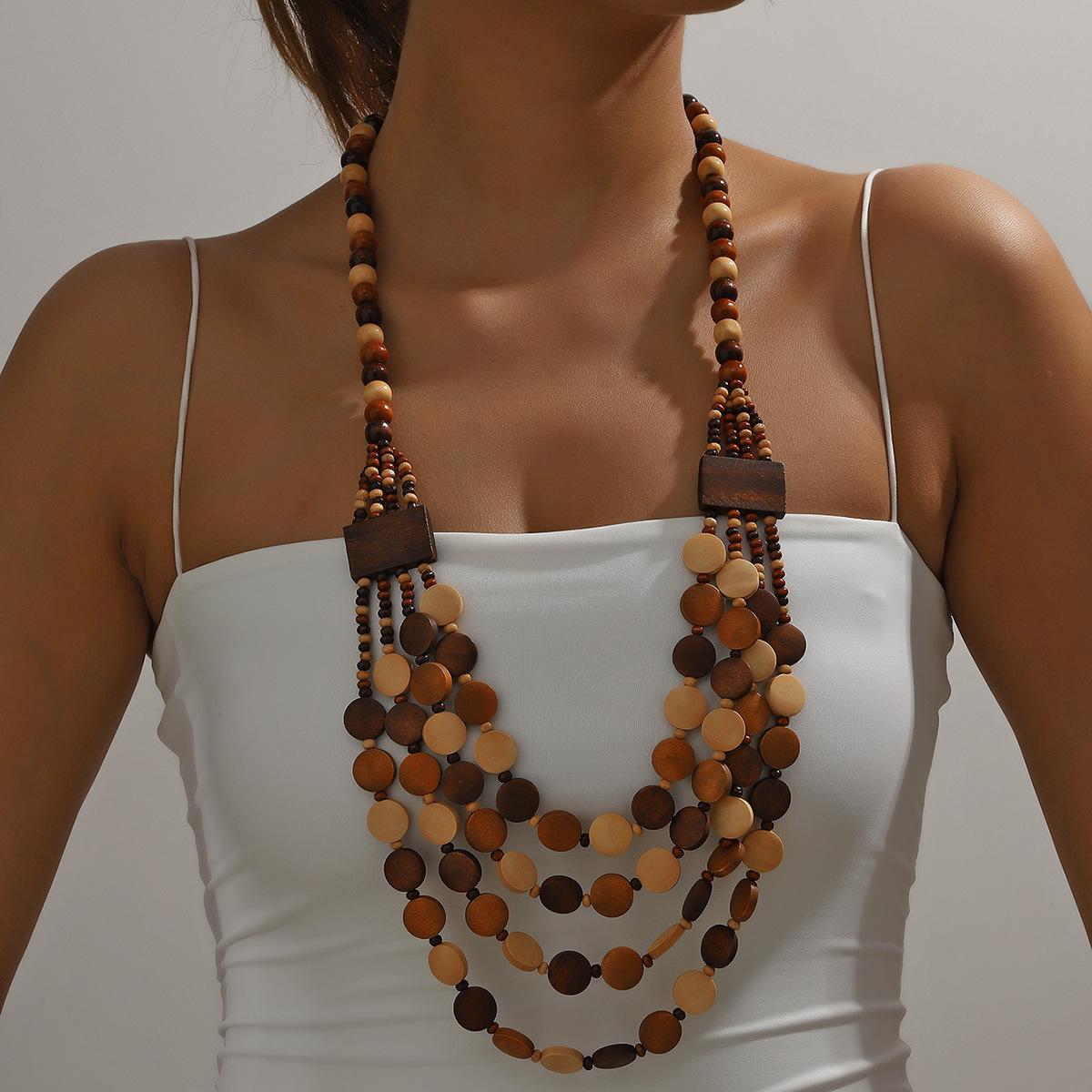 Traje de joyería de mujer de estilo étnico bohemio de múltiples capas con cuentas redondas grandes multicolores retro europeo y americano