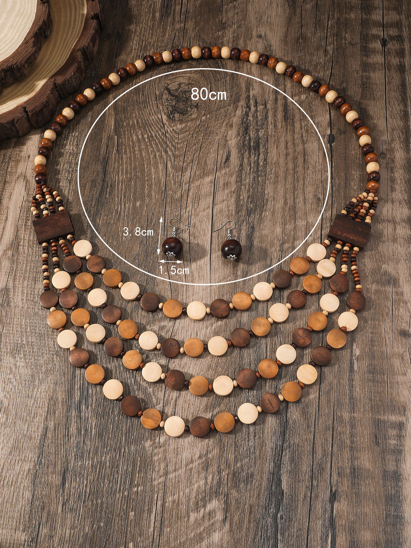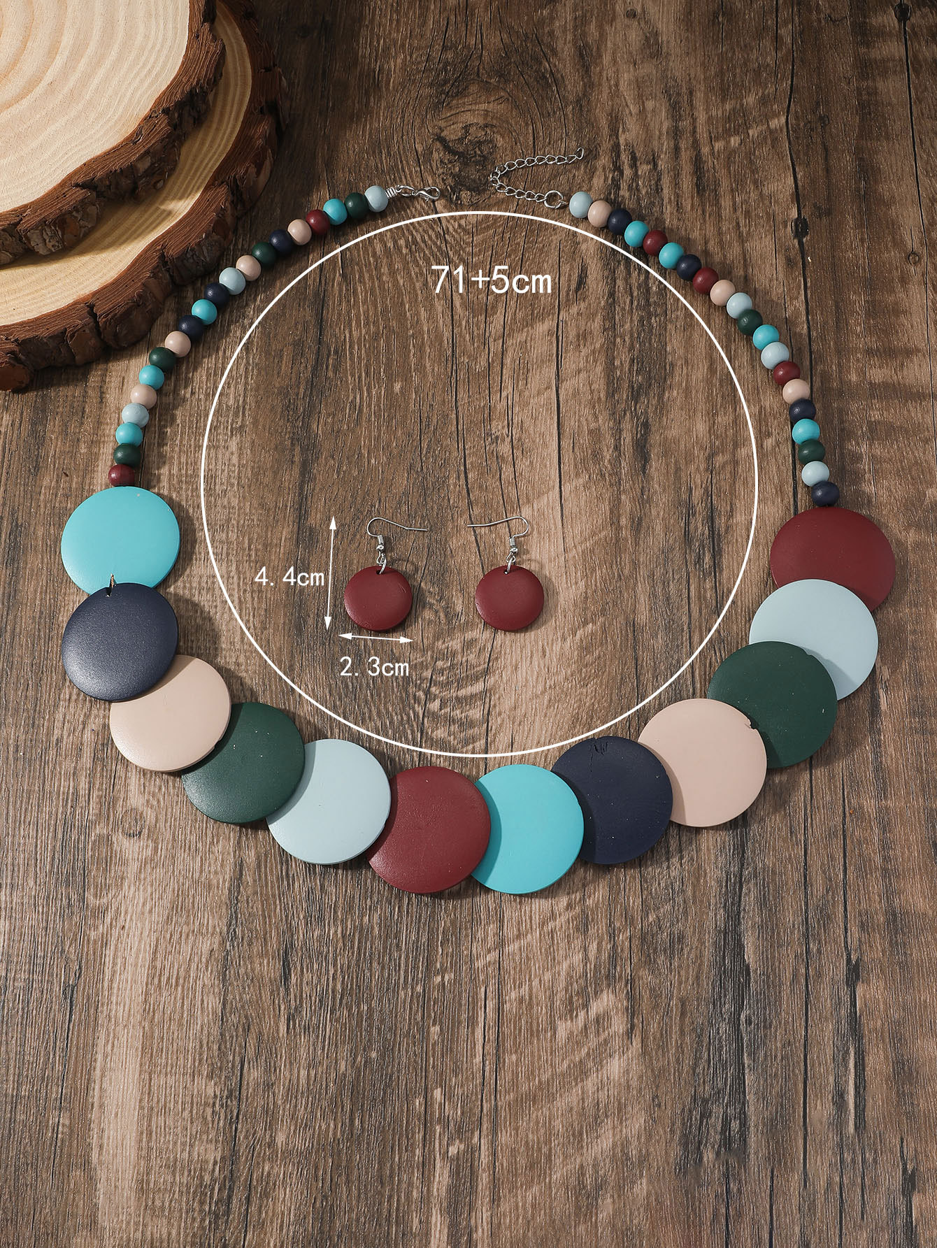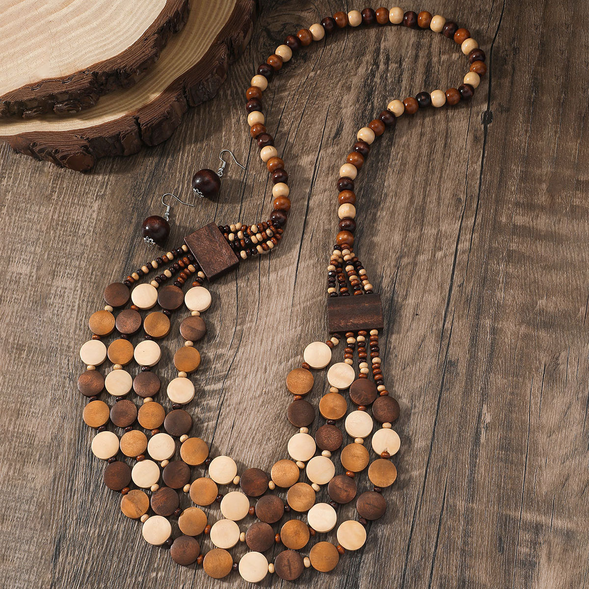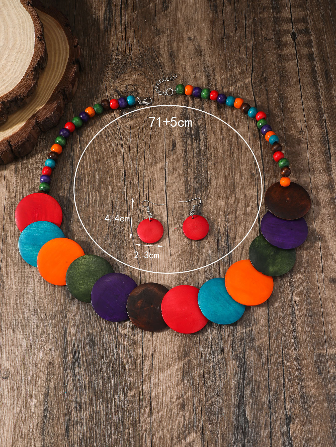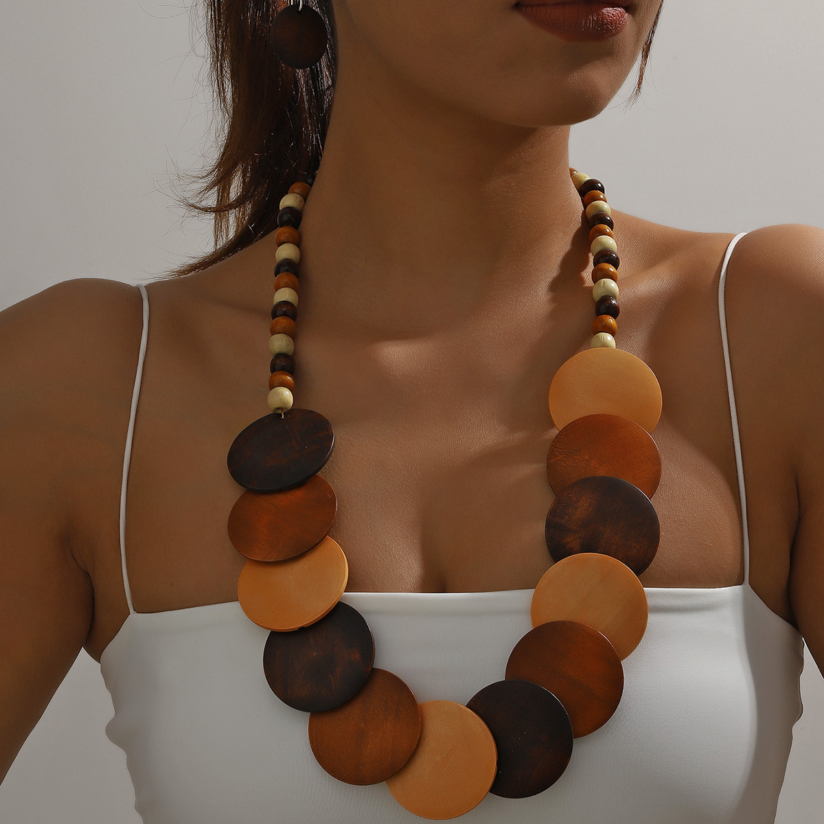 Traje de joyería de mujer de estilo étnico bohemio de múltiples capas con cuentas redondas grandes multicolores retro europeo y americano