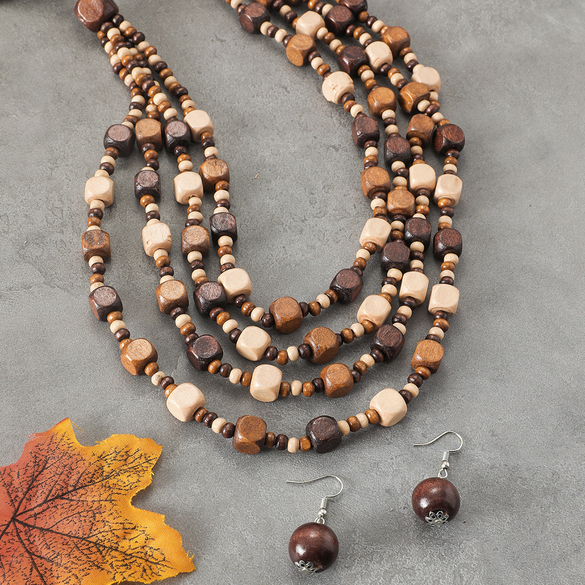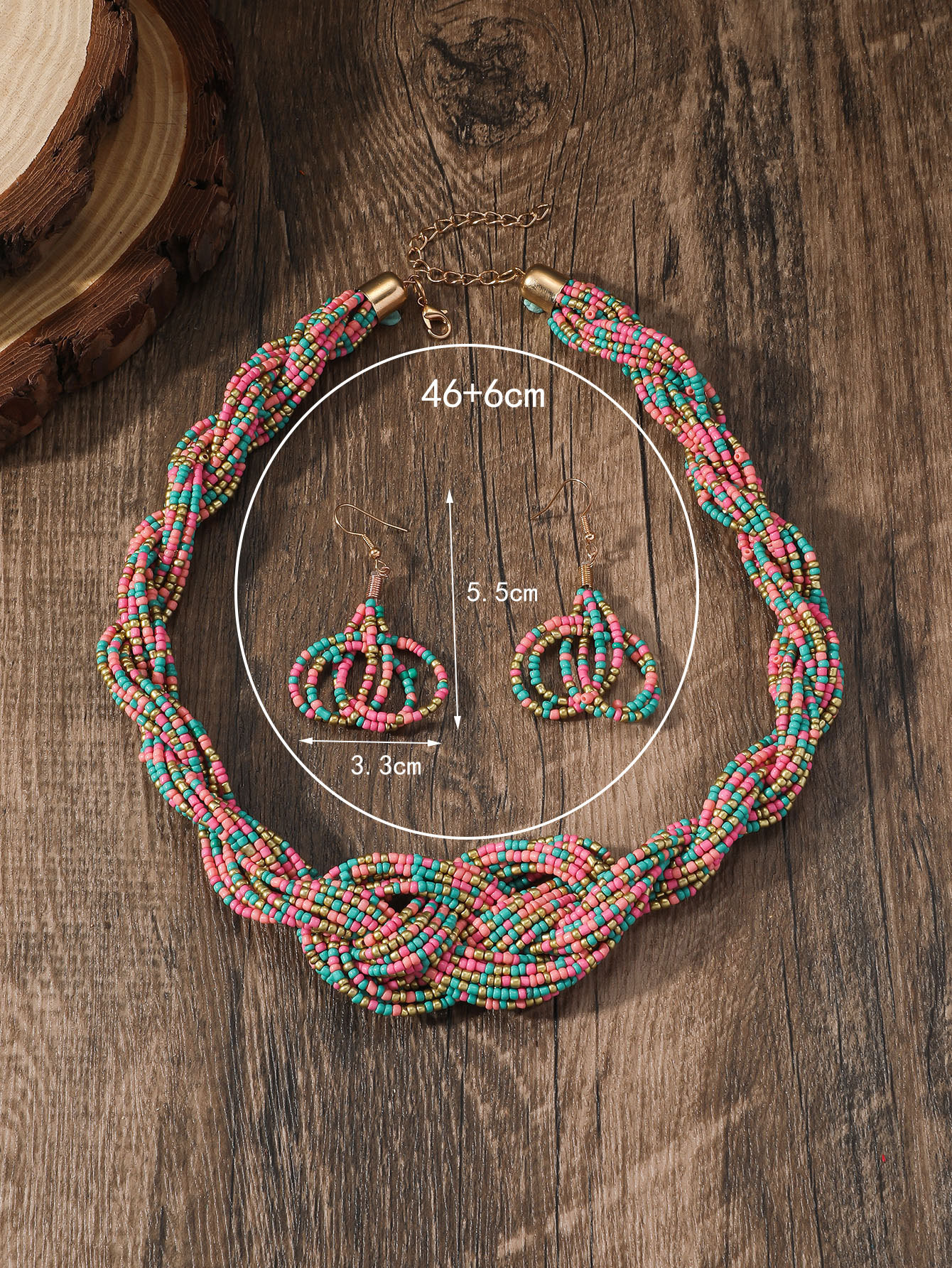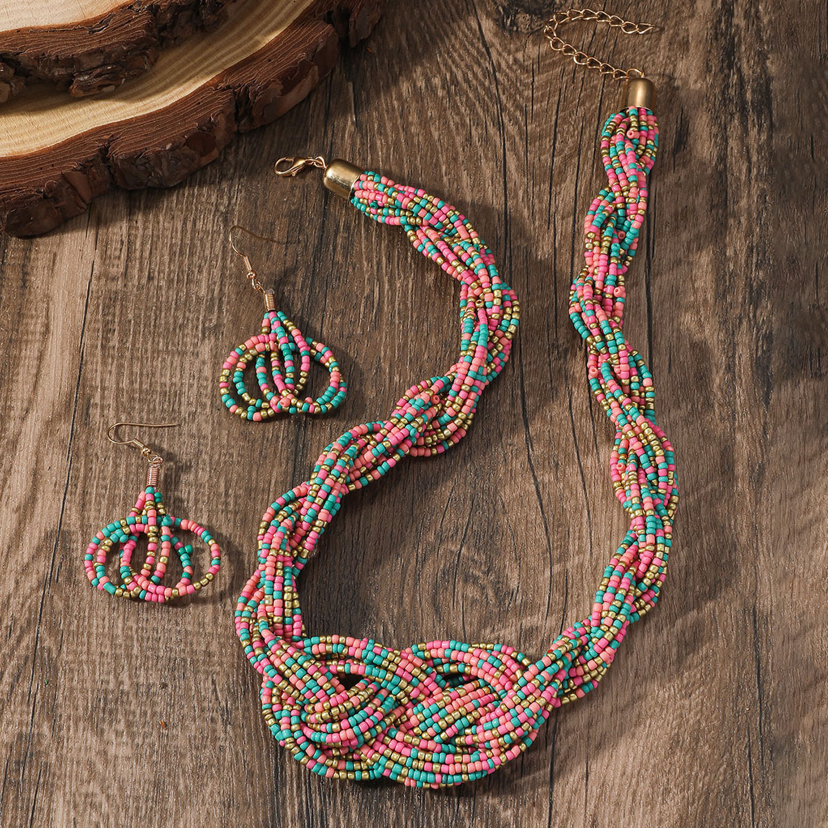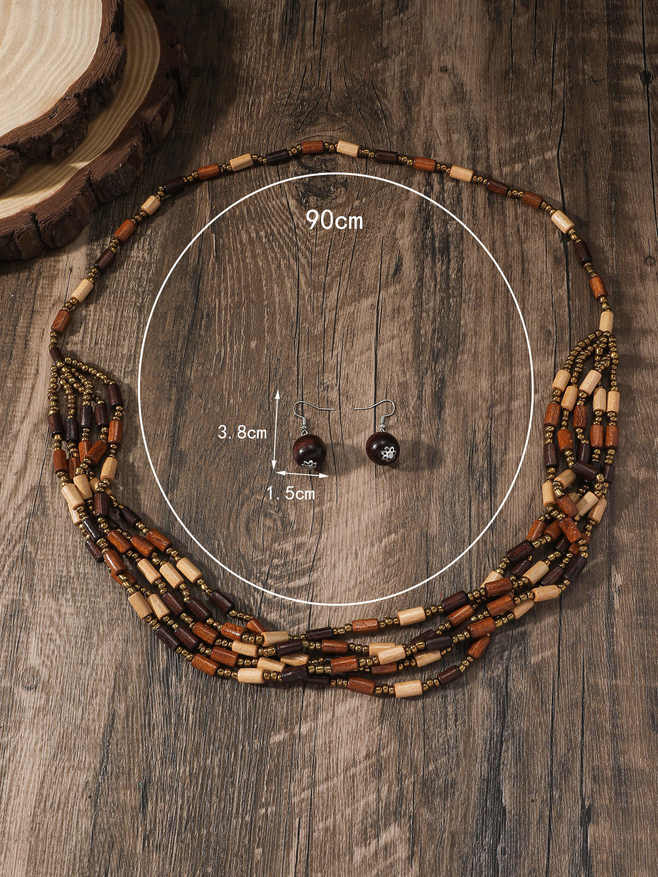 Traje de joyería de mujer de estilo étnico bohemio de múltiples capas con cuentas redondas grandes multicolores retro europeo y americano