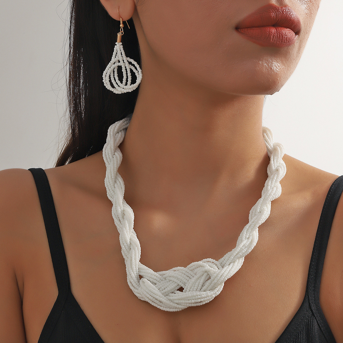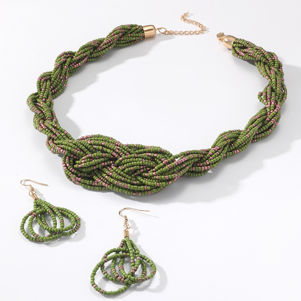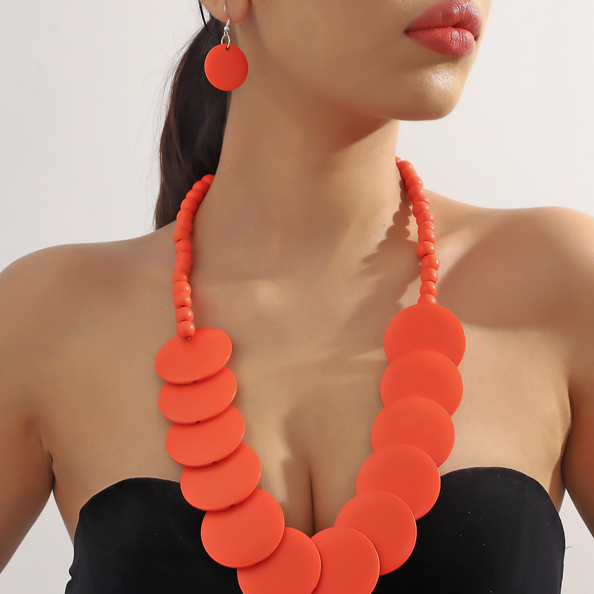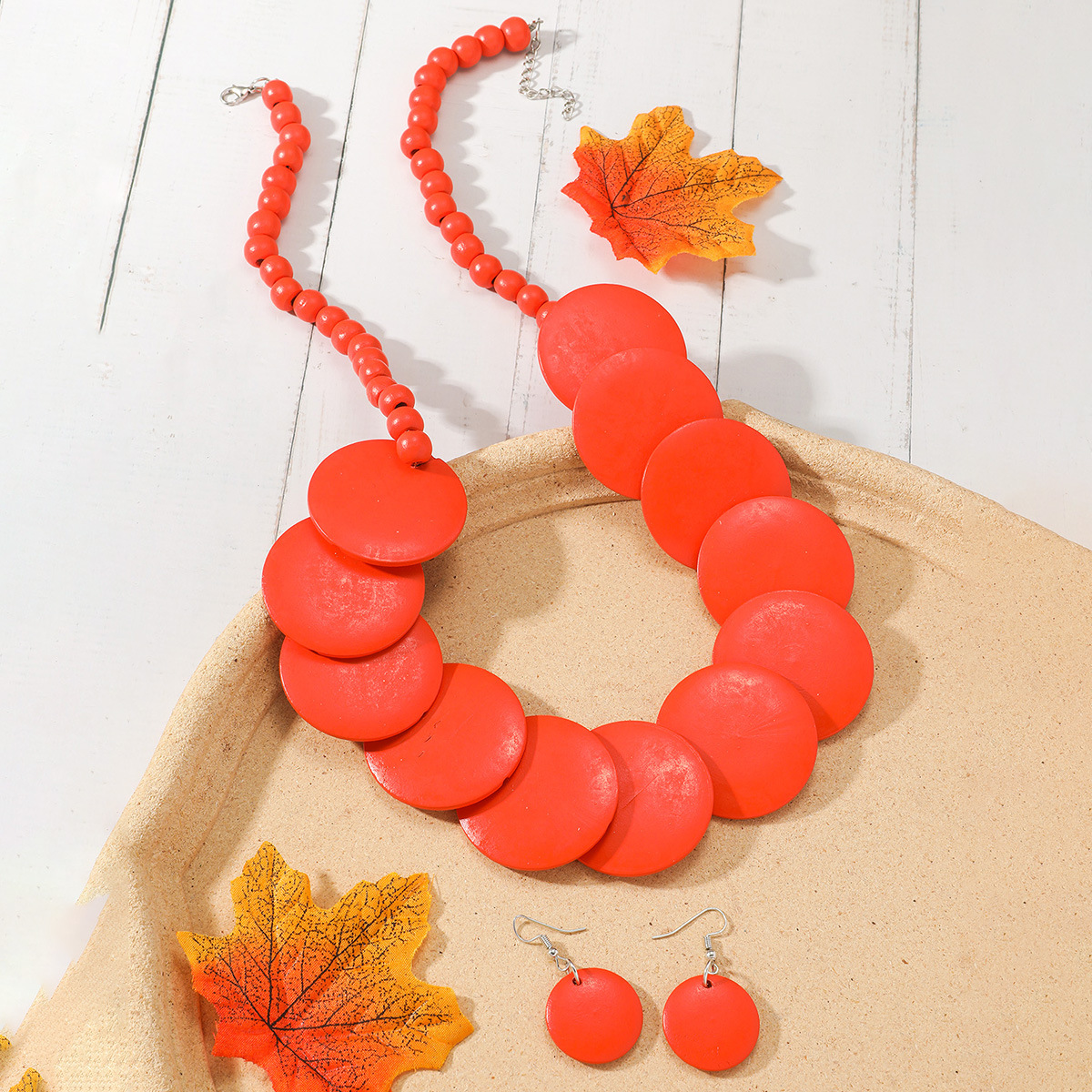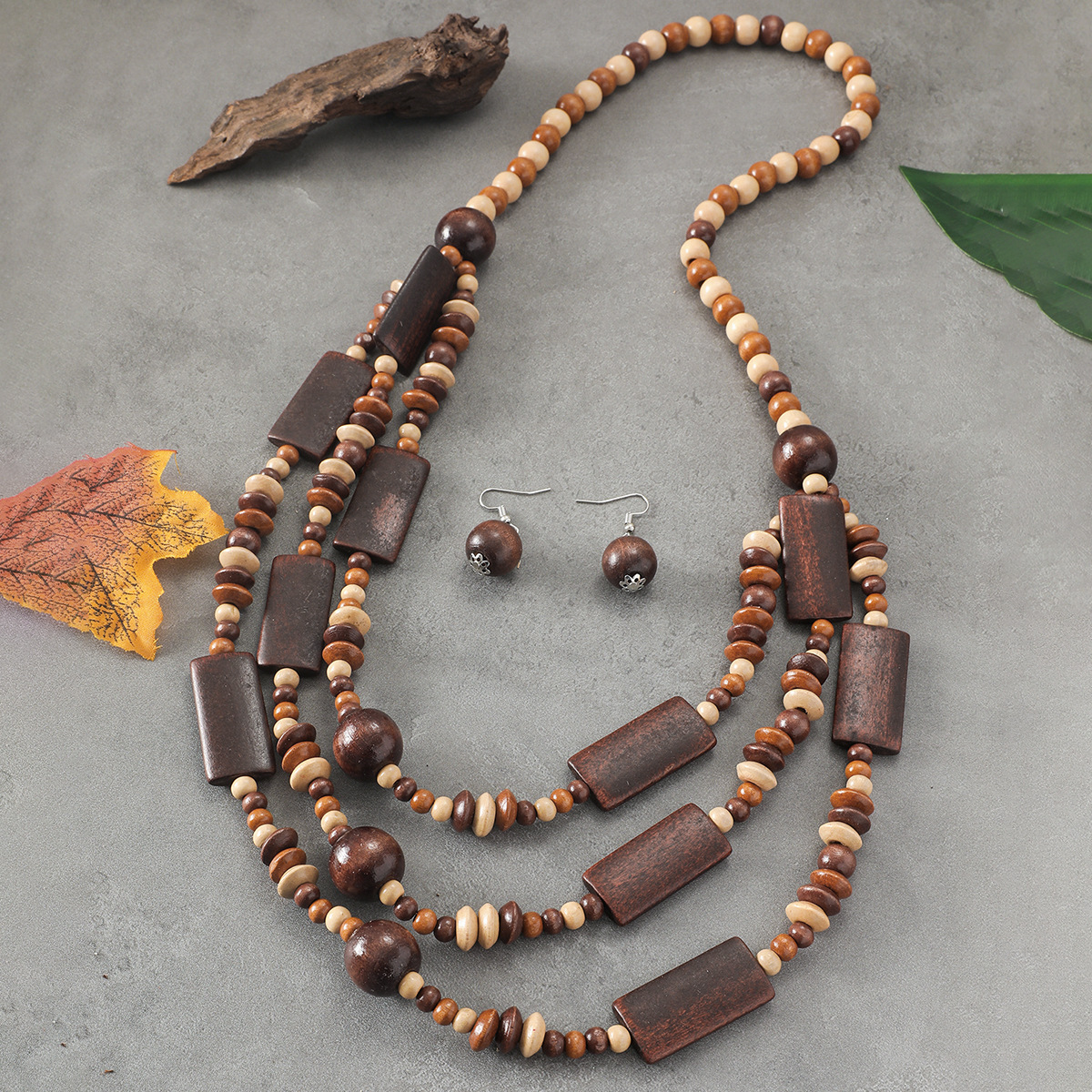 Traje de joyería de mujer de estilo étnico bohemio de múltiples capas con cuentas redondas grandes multicolores retro europeo y americano