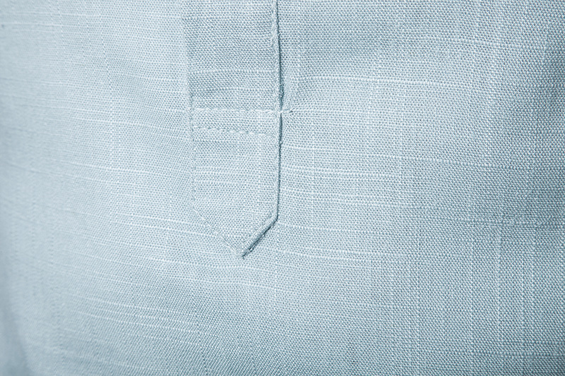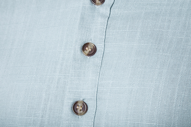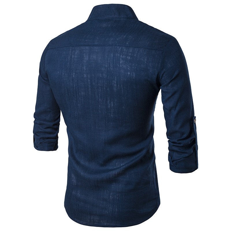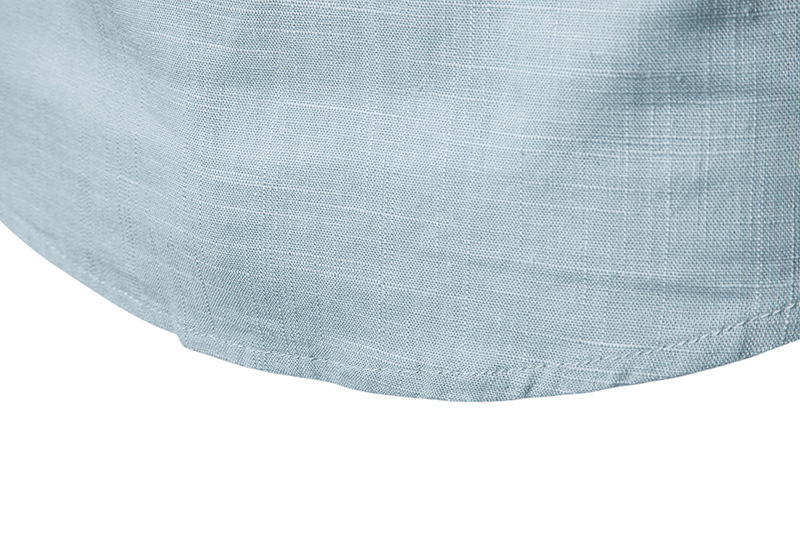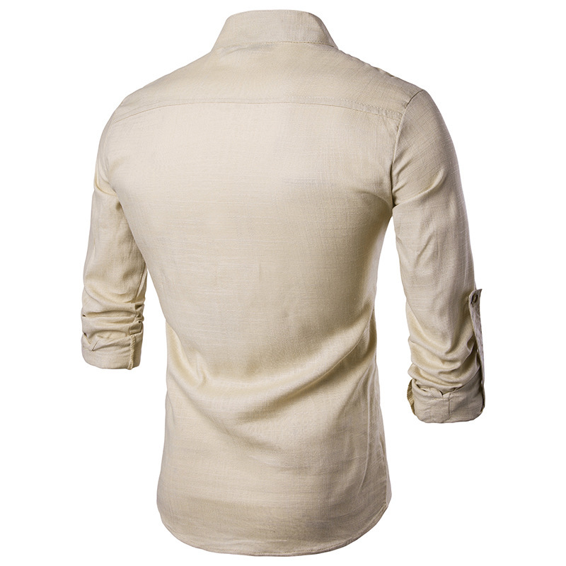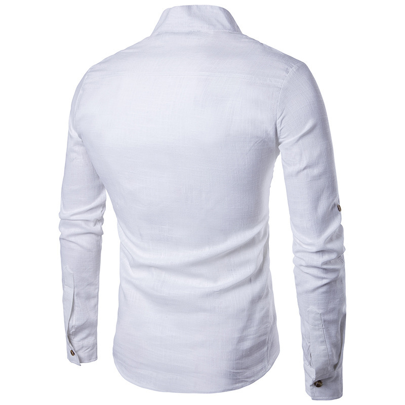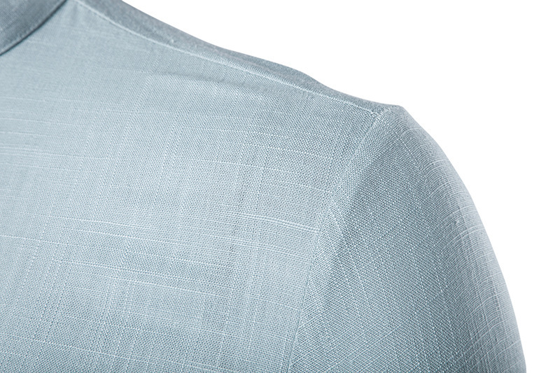 Amazon transfronterizo nuevos hombres de tamaño europeo de color sólido de algodón y lino camisa de manga larga Henry Collar de lino de color sólido camisa de cuello alto