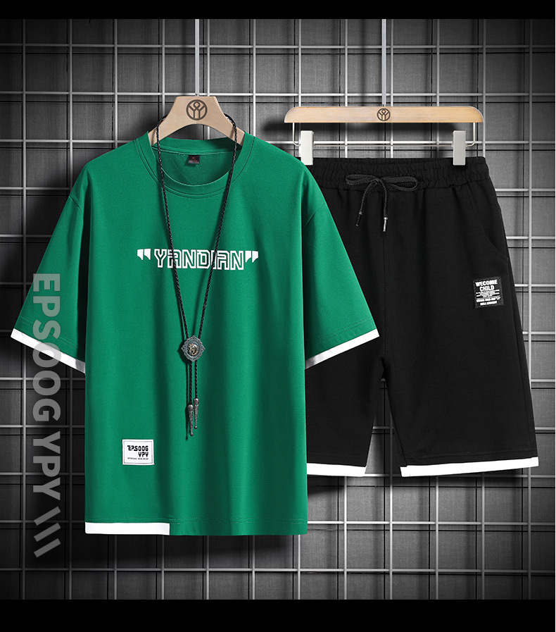 Traje casual pantalones cortos de manga corta para hombres ropa deportiva para hombres marca de moda Pantalones cortos de dos piezas para hombres guapos