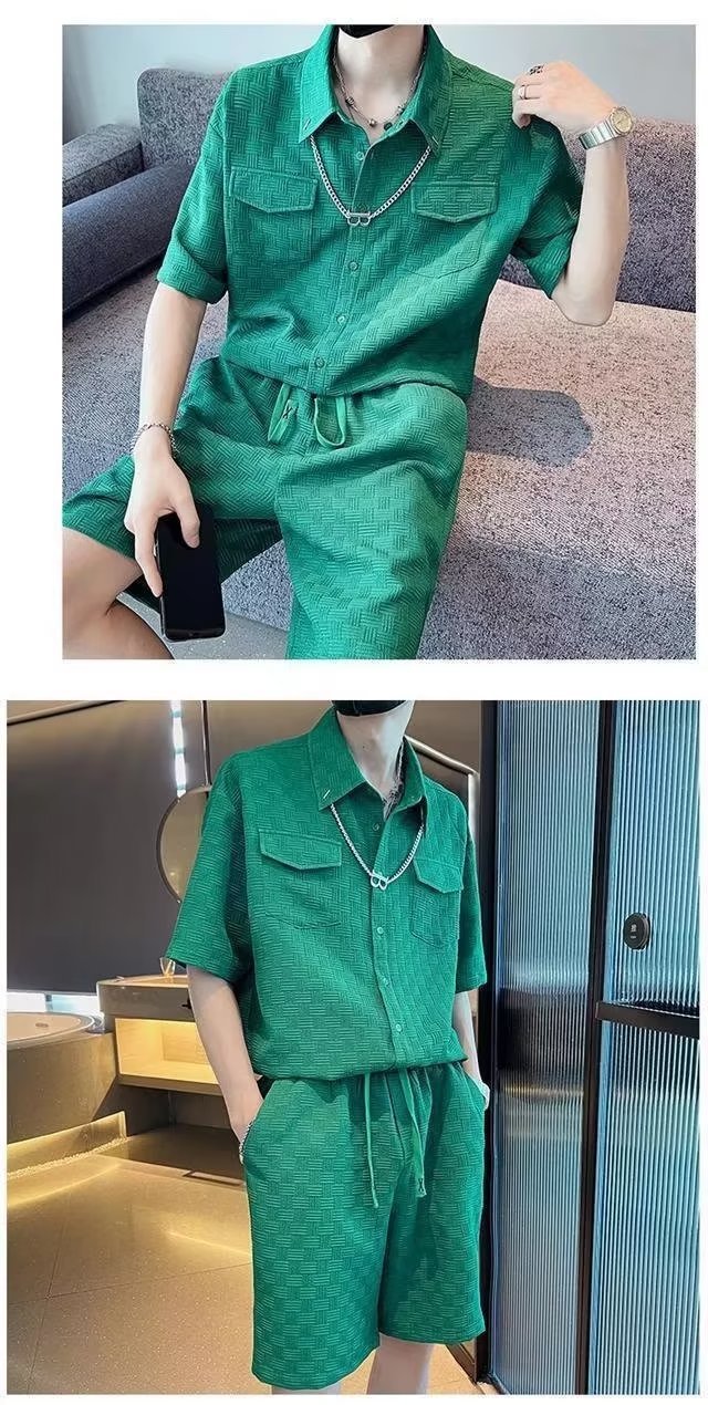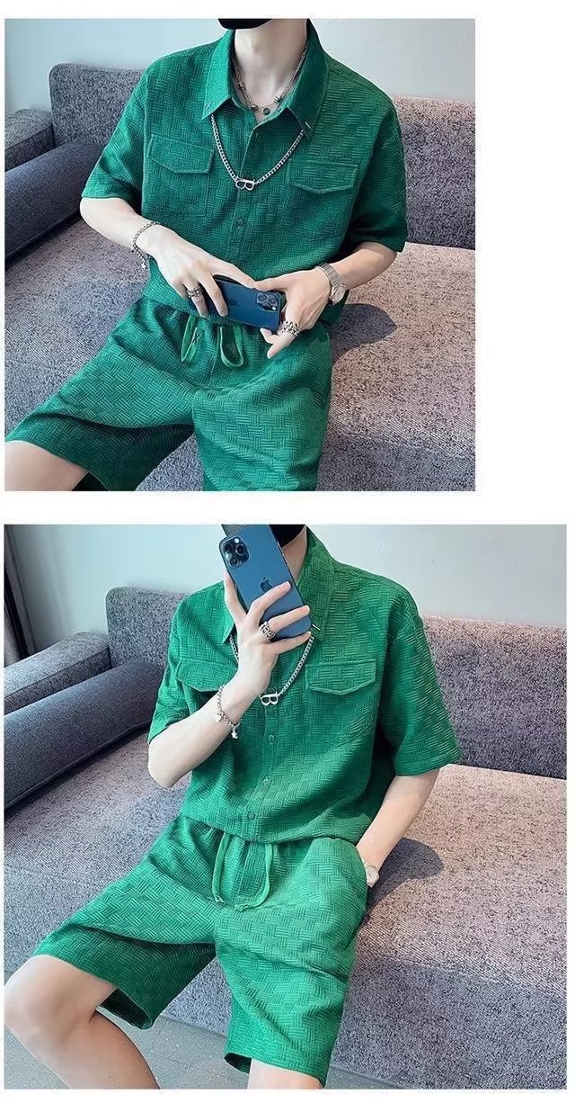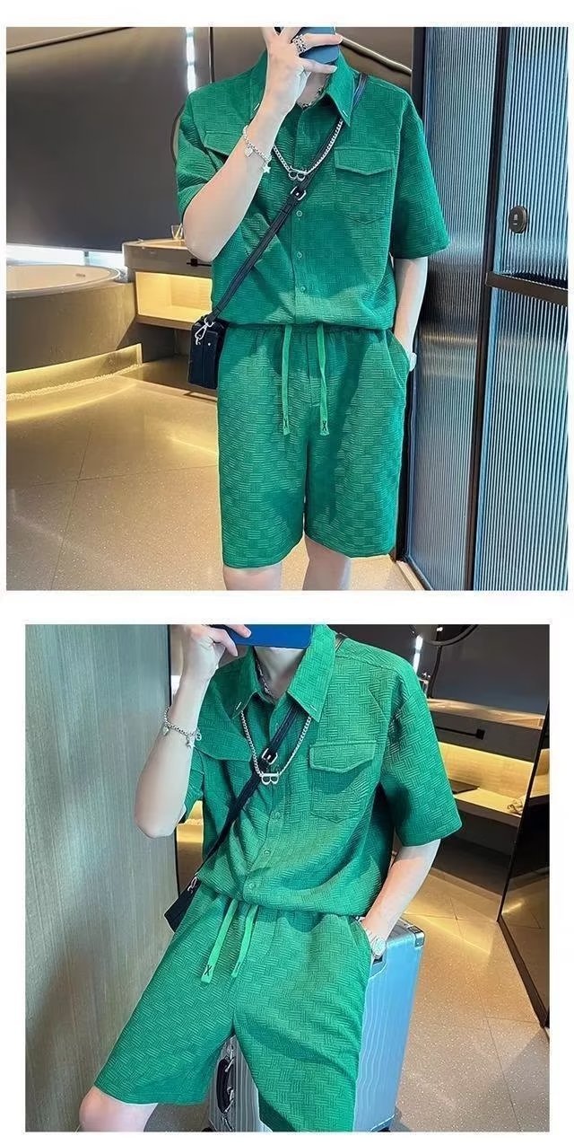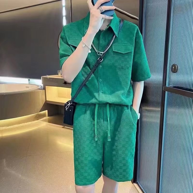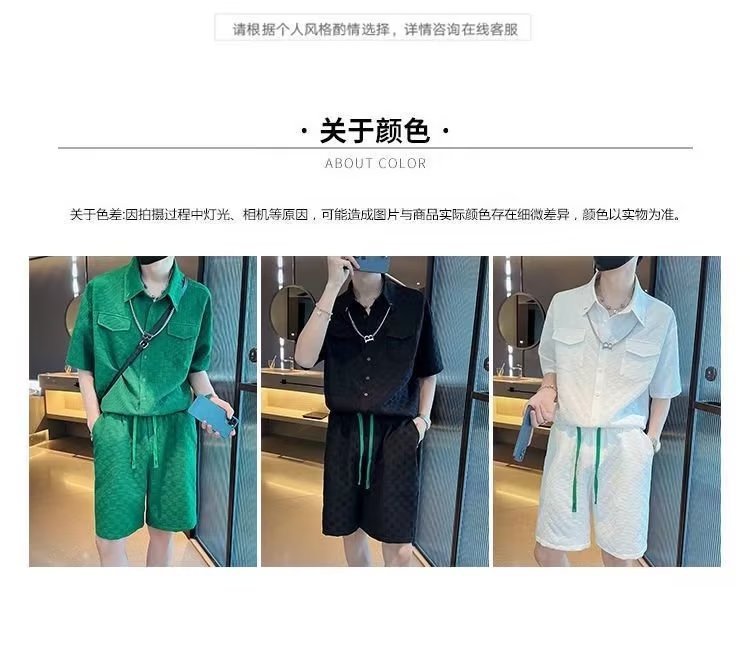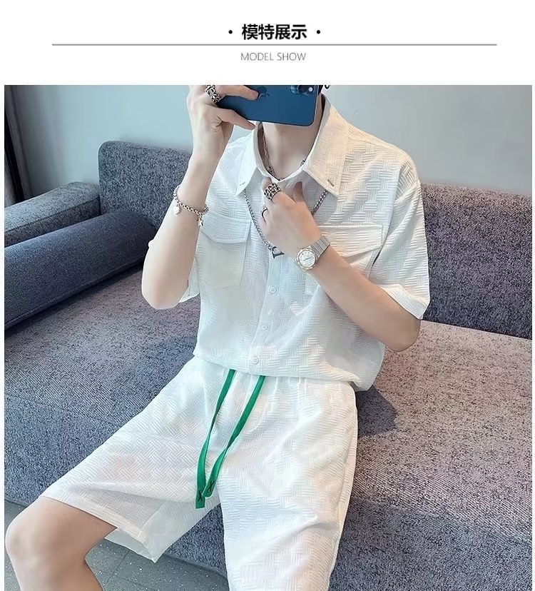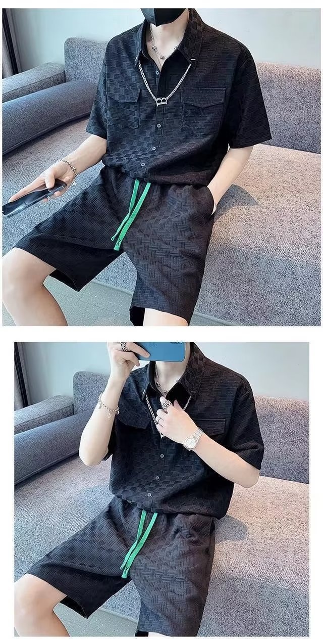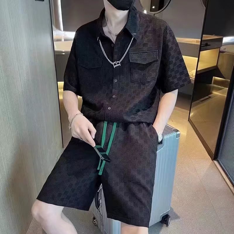 Traje deportivo casual para hombre verano 2023 camisa de manga corta de cinco puntos con pantalones cortos de cinco puntos conjunto de moda ruoshuai