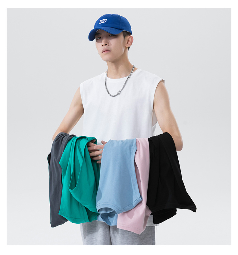 Ropa de hombre ACU | Chaleco de hombre de algodón puro marca de moda sin mangas camiseta de color sólido 2025 verano suelto top de fondo de todo fósforo