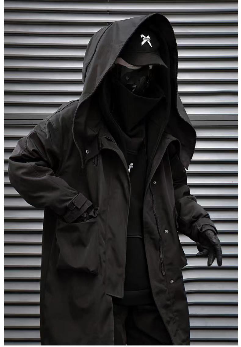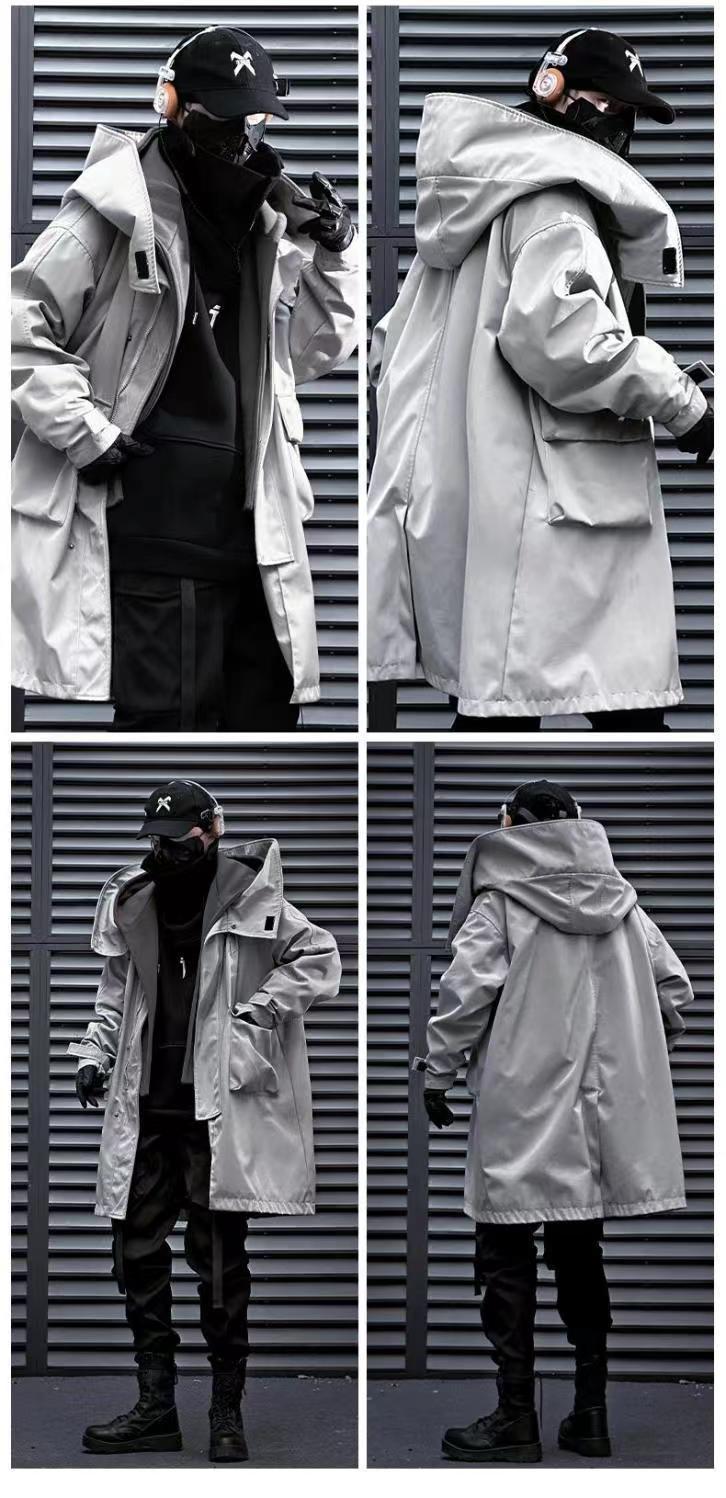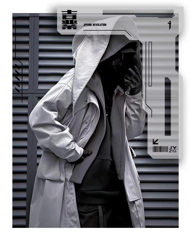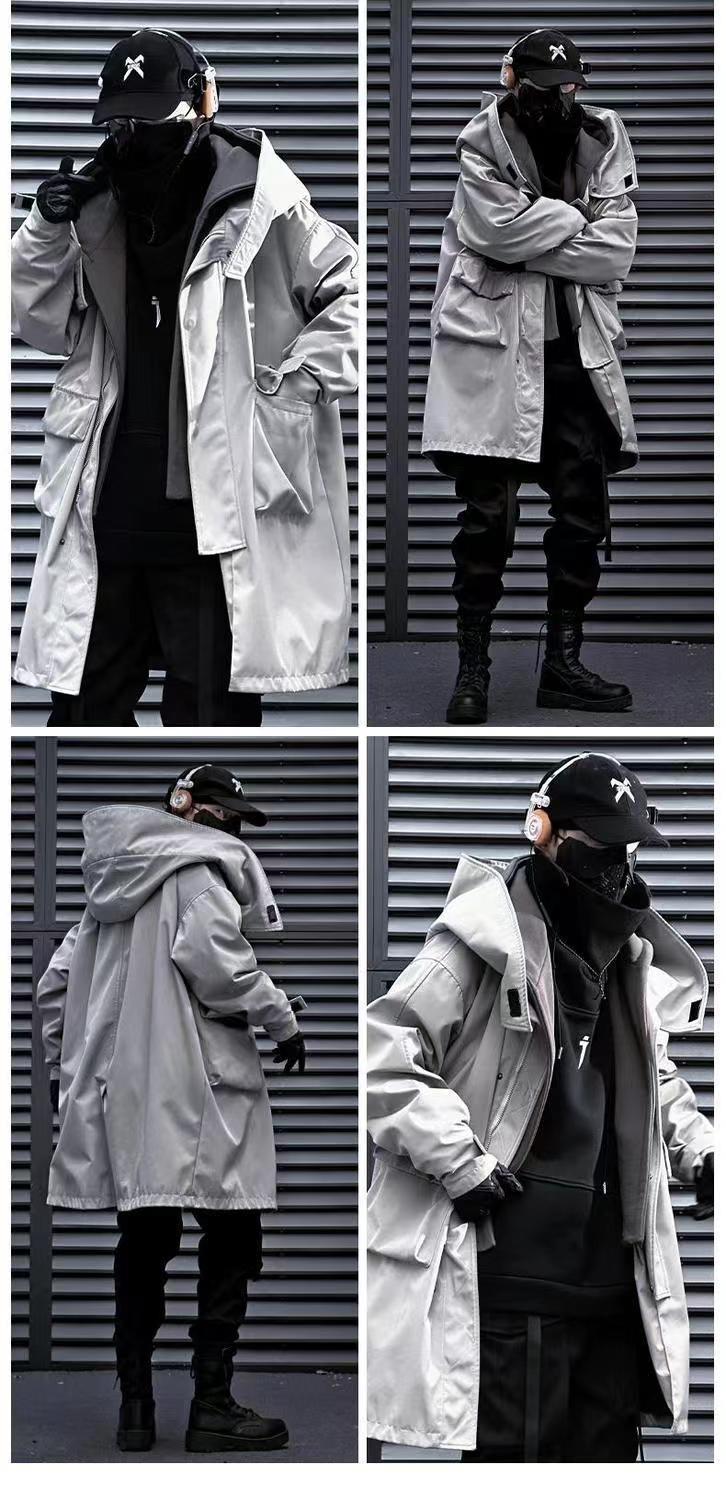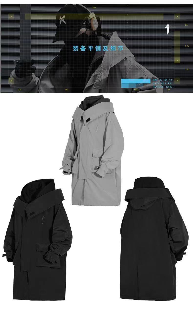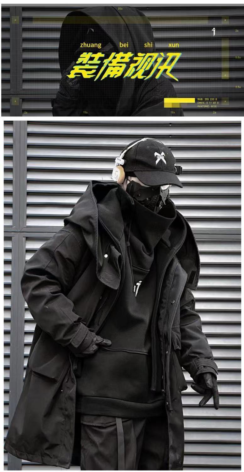 Jiye industria pesada Otoño e Invierno falso de dos piezas ropa de trabajo funcional viento costura rompevientos hombres y mujeres casual de media longitud abrigo Abrigo acolchado de algodón