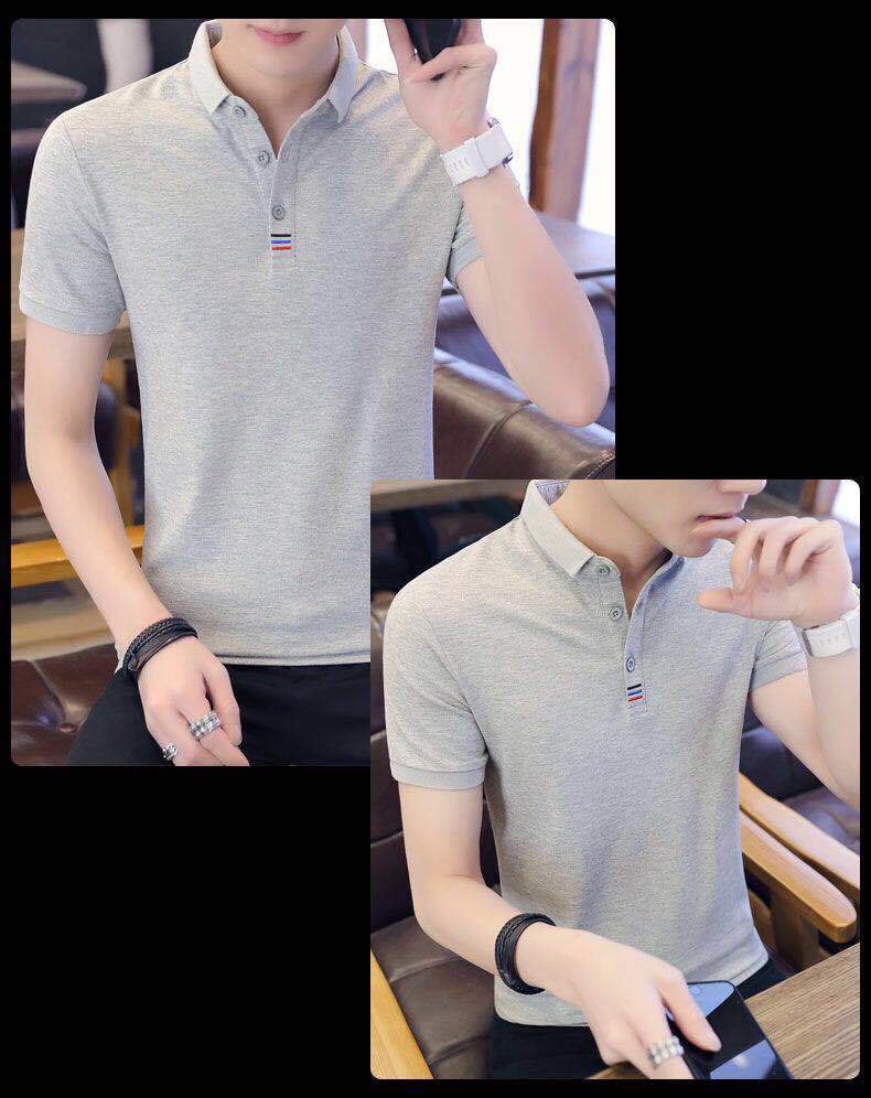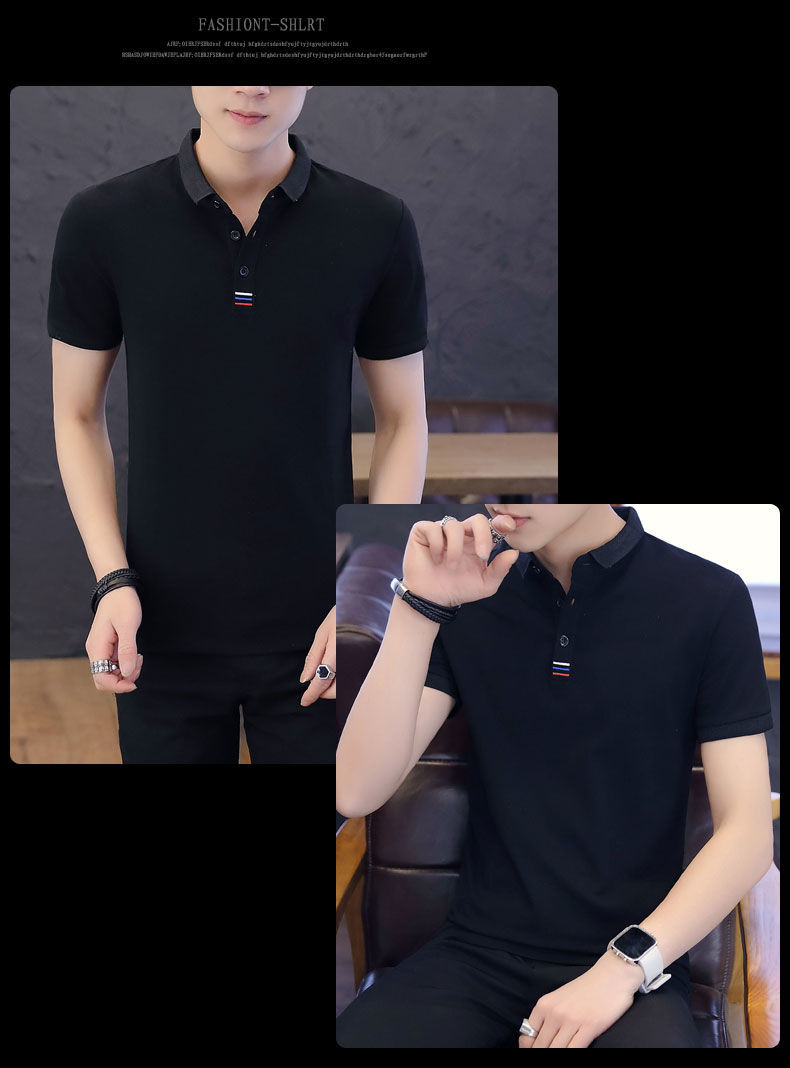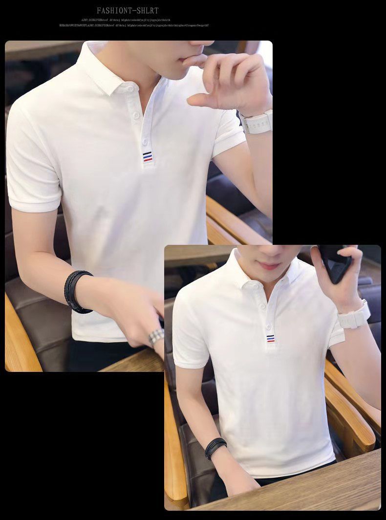 Camiseta de manga corta de los hombres de verano bordada más el tamaño camisa de polo de solapa jóvenes estudiantes camisa de fondo de media manga superior de color sólido