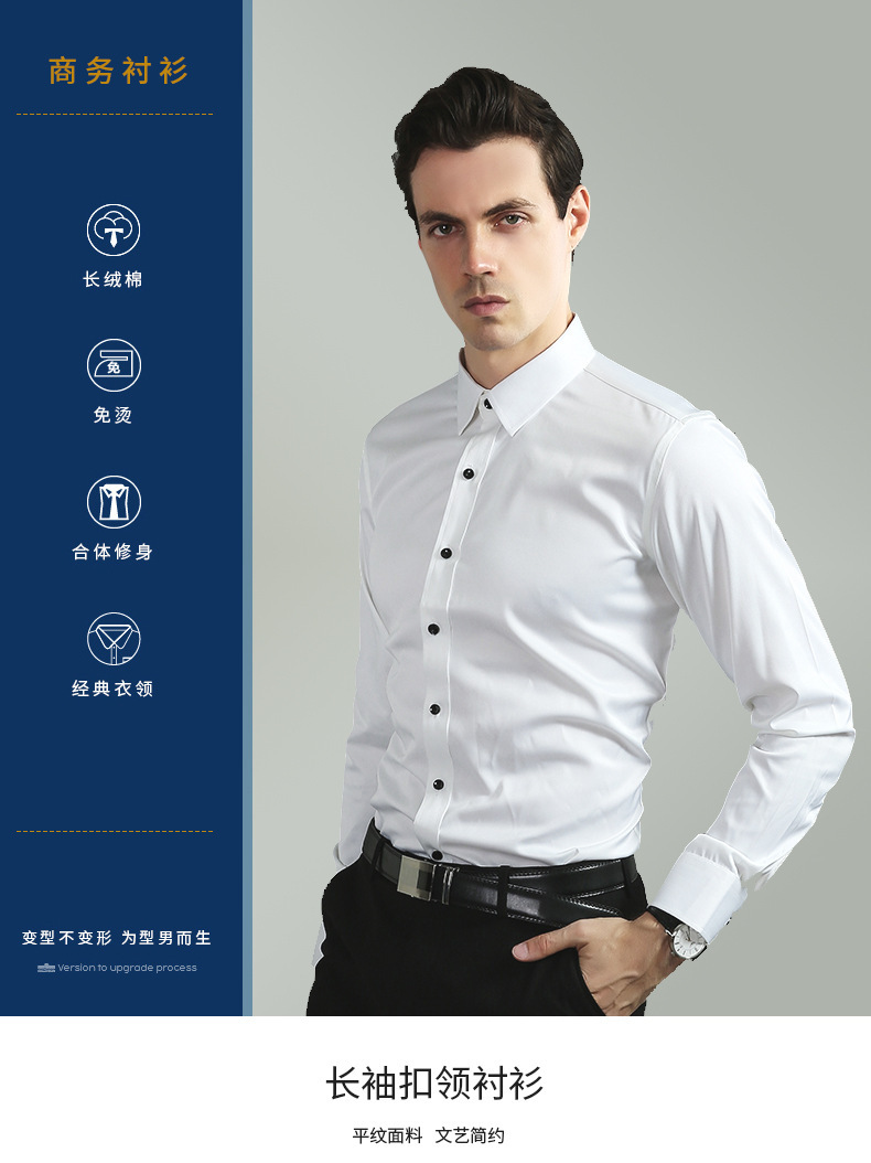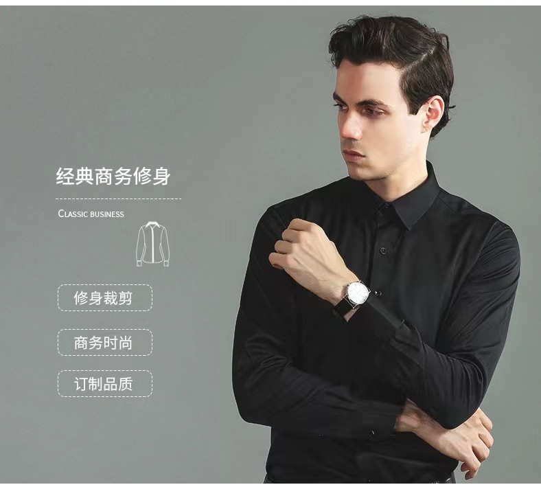Camisa elástica de cuatro lados transfronteriza de los hombres de color sólido antiarrugas no planchado camisa de manga larga de los hombres de negocios casual de los hombres de comercio exterior exclusivo