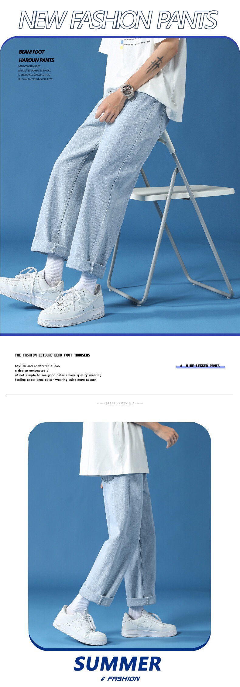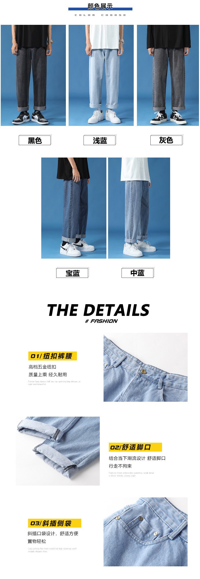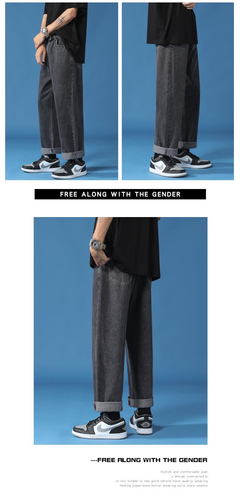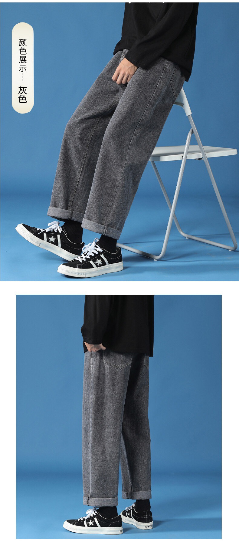 Pantalones de los hombres rectos flojos de los hombres de los pantalones vaqueros que drapean los pantalones a juego de los hombres de moda del estilo de Hong Kong