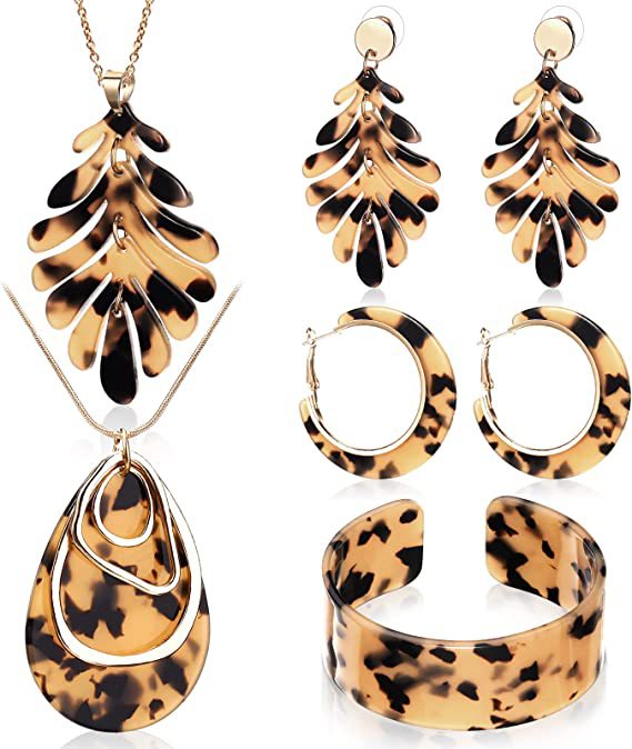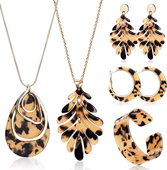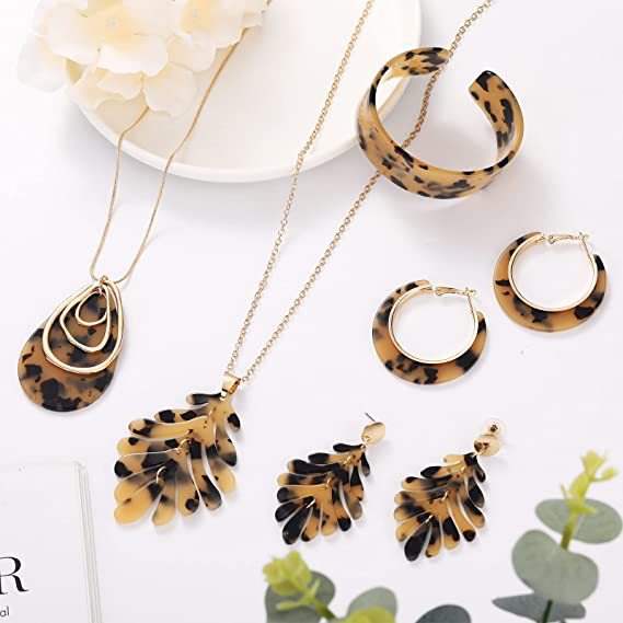 Cross-border Amazon personalizado de tipo C acrílico pulsera pendientes collar joyería traje leopardo moda 4-piece set pendientes