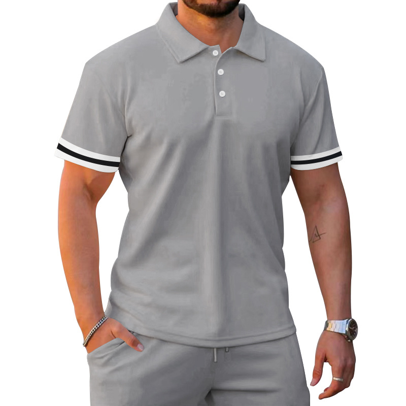 2023 Amazon Comercio exterior verano solapa hebilla costura manga corta pantalones cortos deportes ocio juventud más tamaño traje ropa de los hombres
