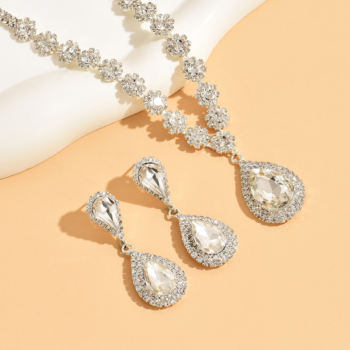 Fábrica al por mayor de la boda joyería nupcial garra cadena con incrustaciones de cristal de las mujeres del todo-fósforo collar de la joyería pendientes traje