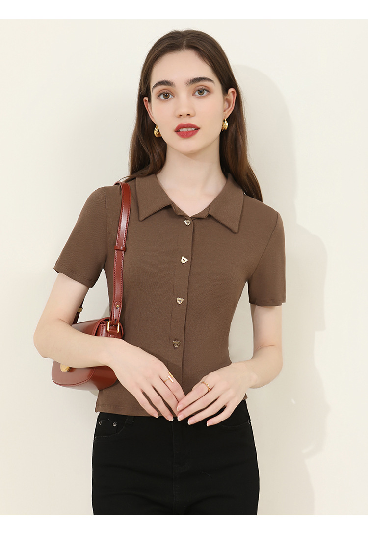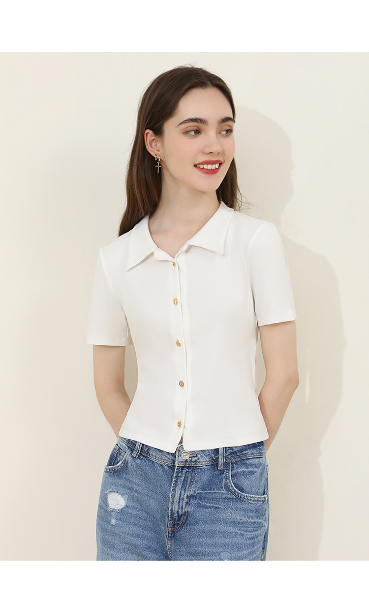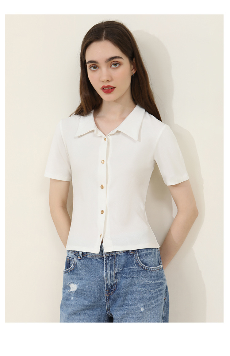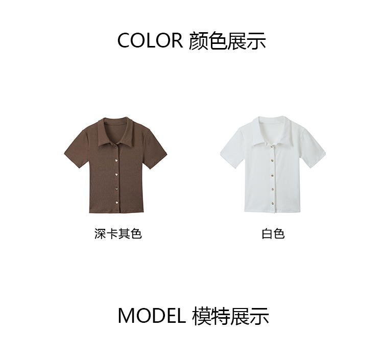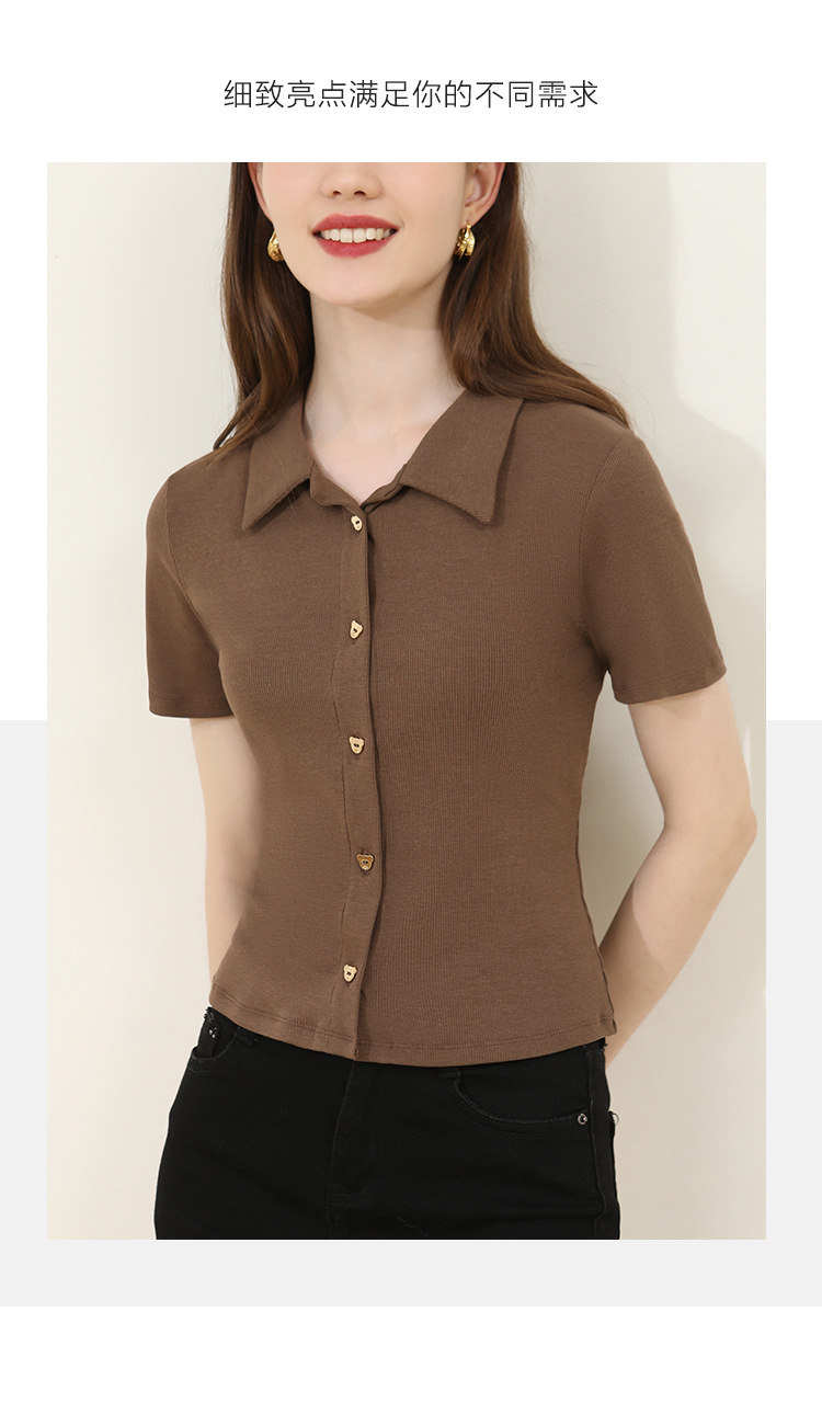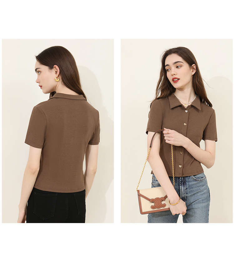 CANVAUS ropa de mujer nuevo color puro simple camisa de polo delgada de manga corta Camiseta de mujer BM estilo solapa adelgazar Top Ahora