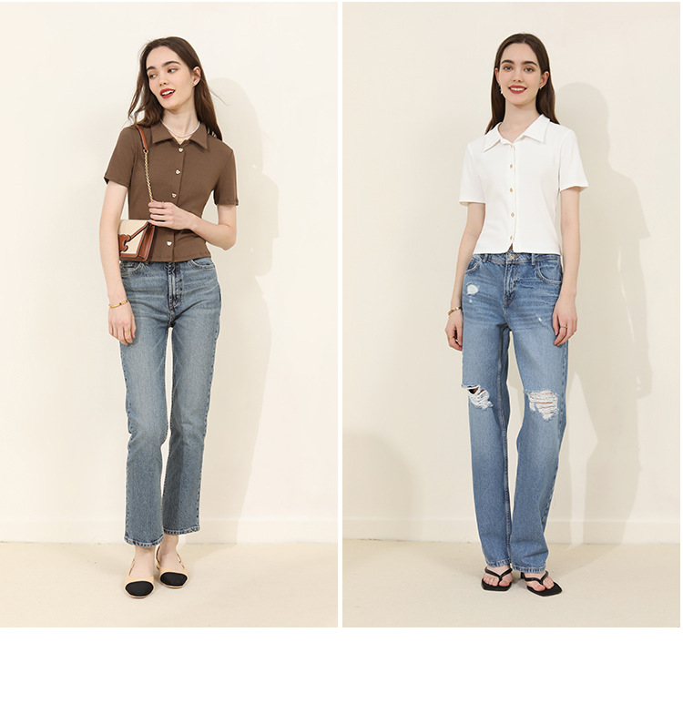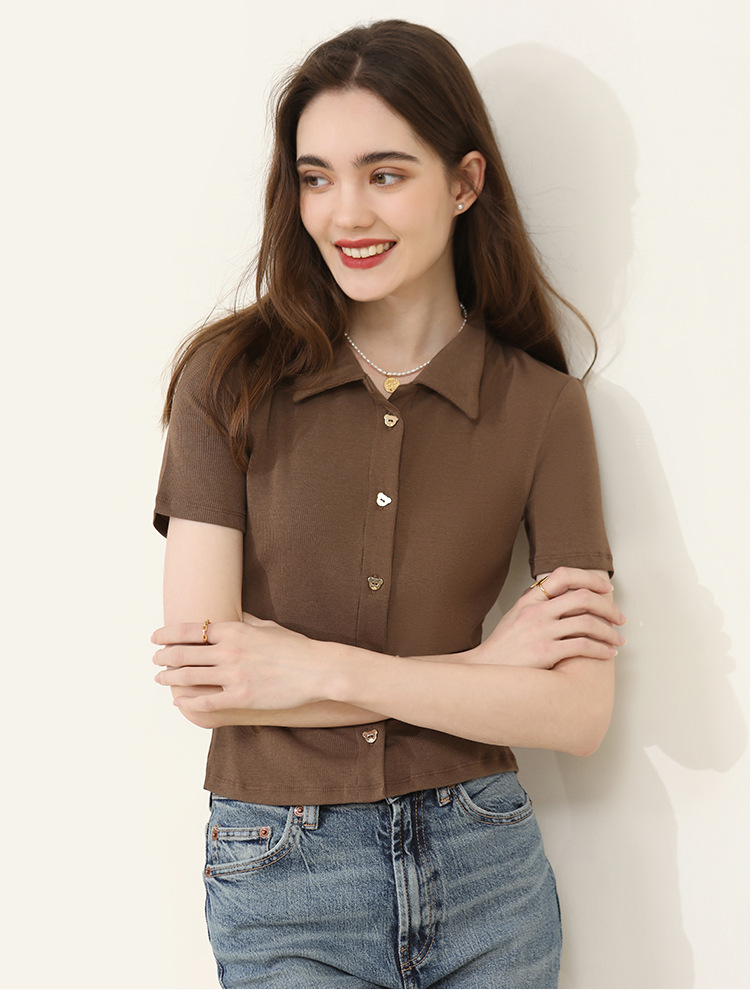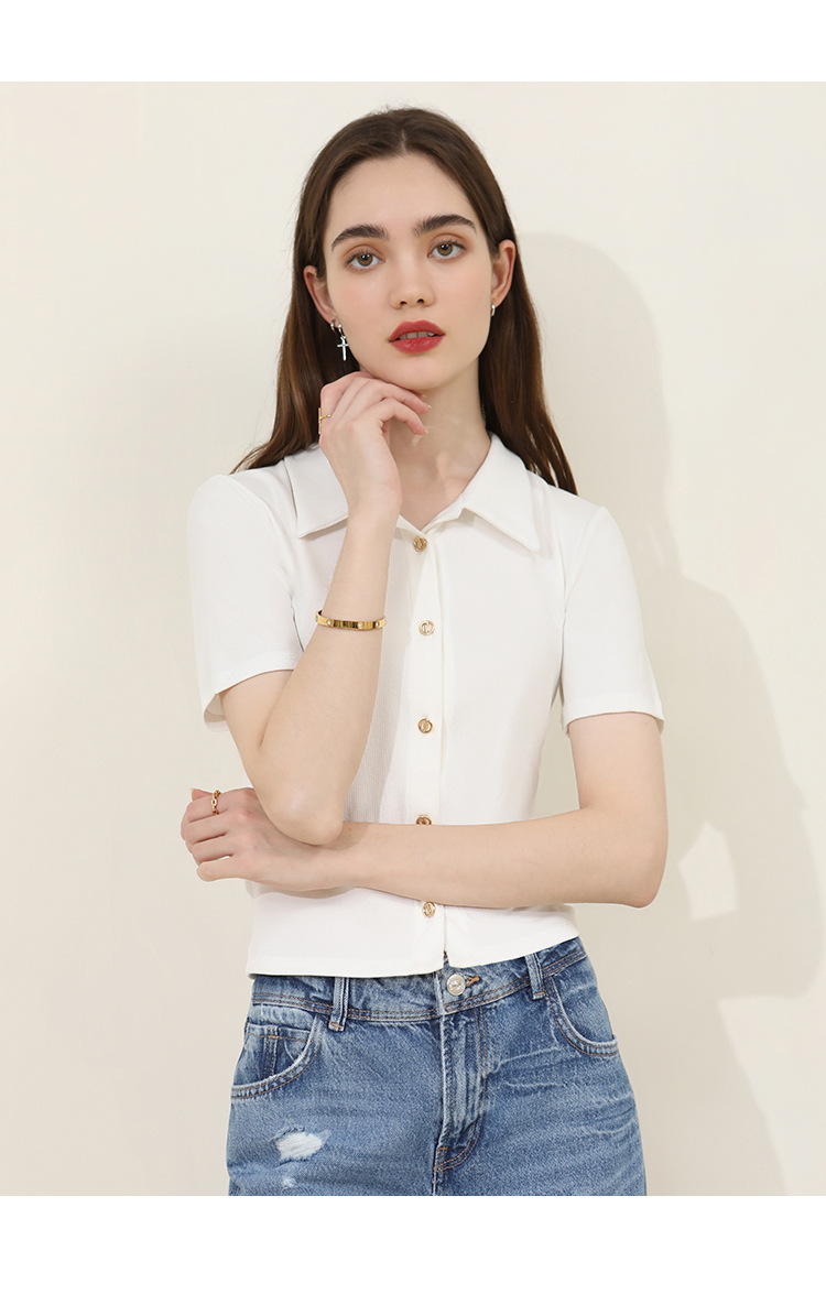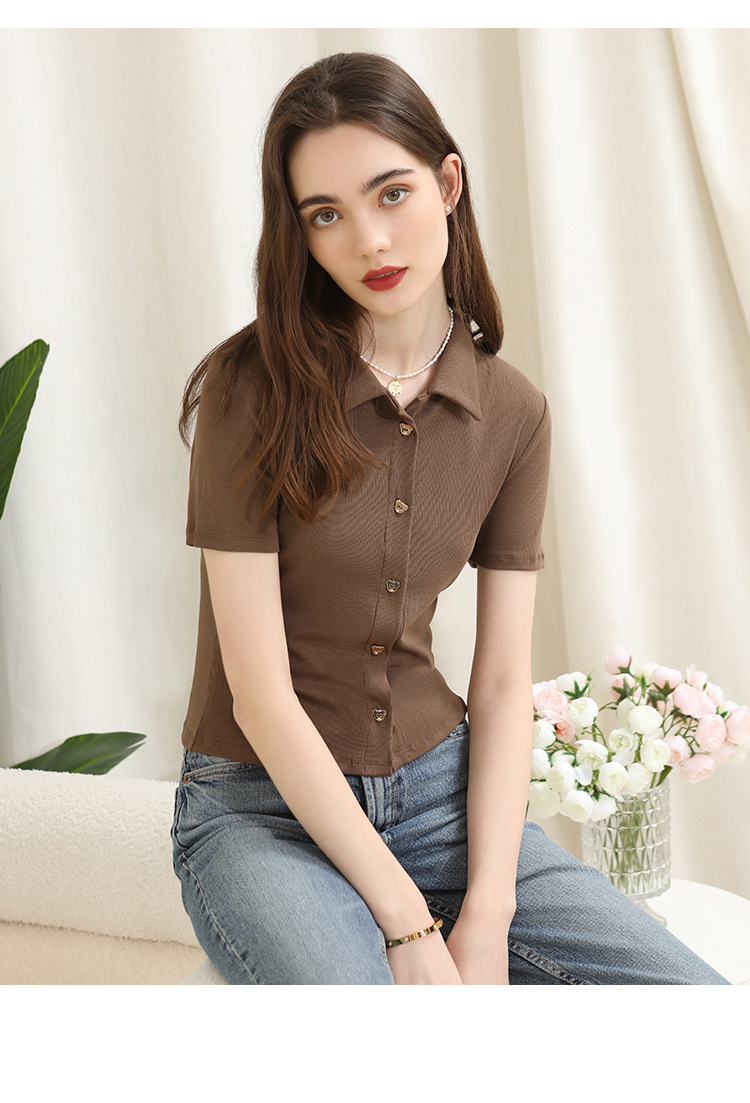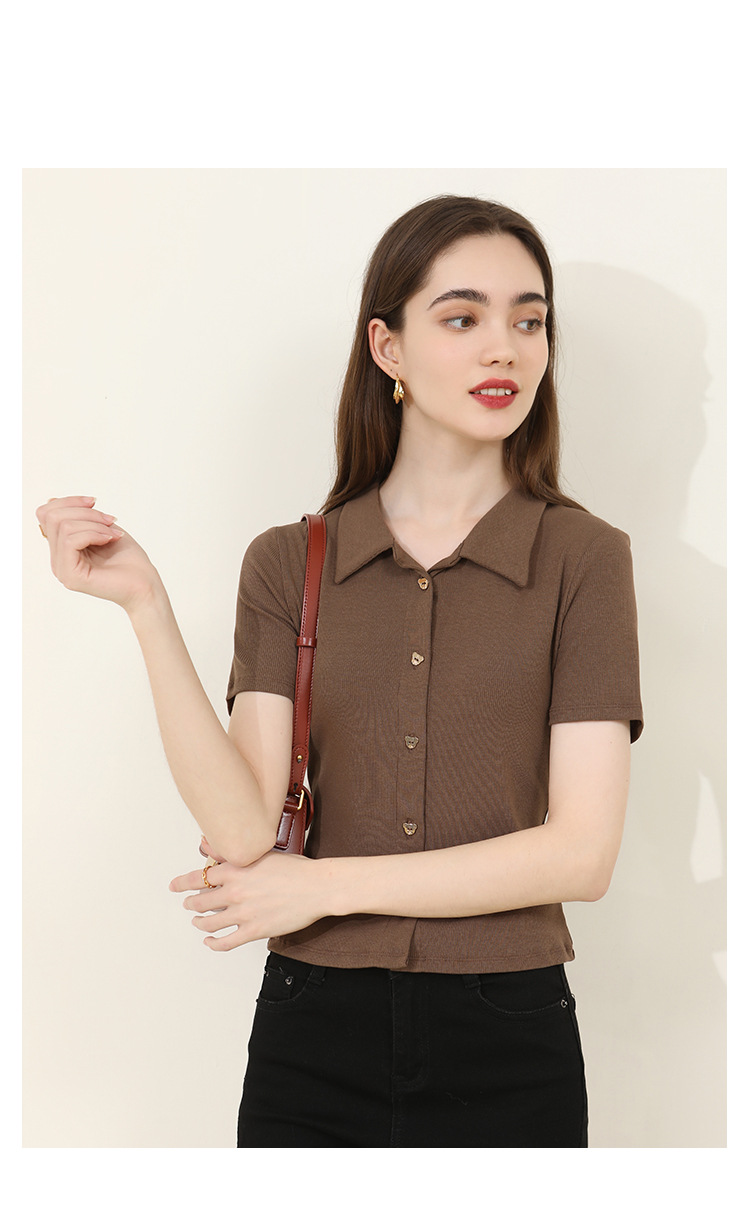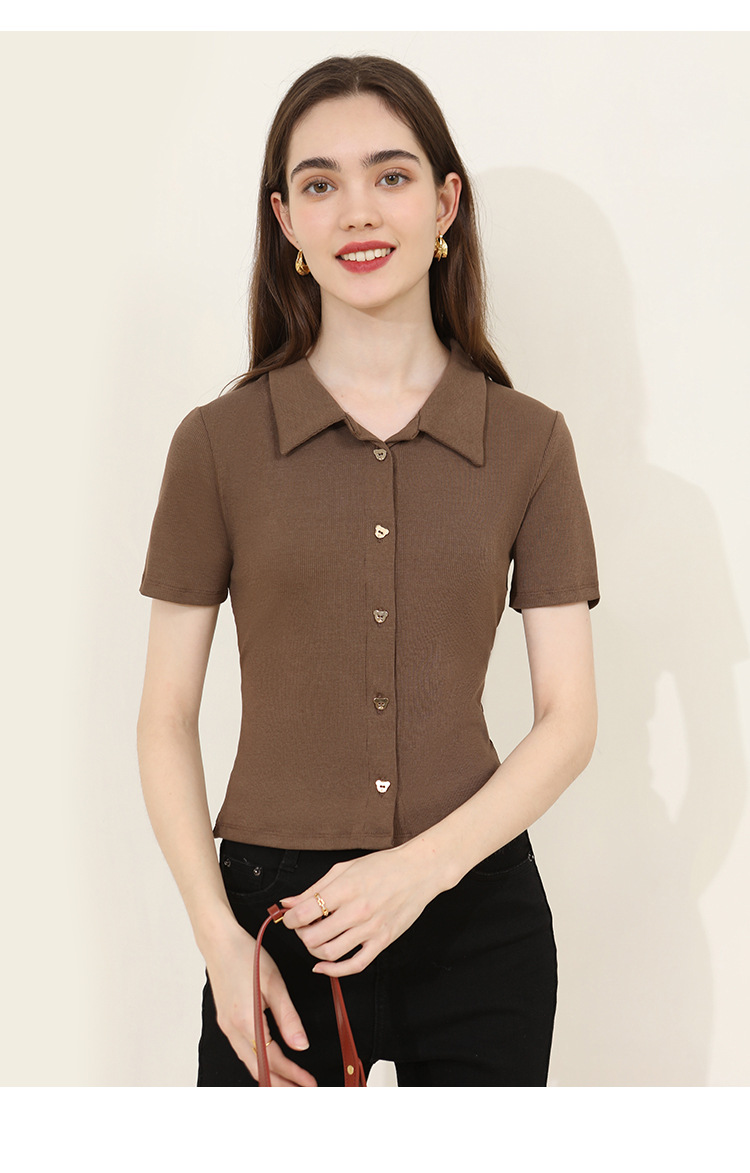 CANVAUS ropa de mujer nuevo color puro simple camisa de polo delgada de manga corta Camiseta de mujer BM estilo solapa adelgazar Top Ahora