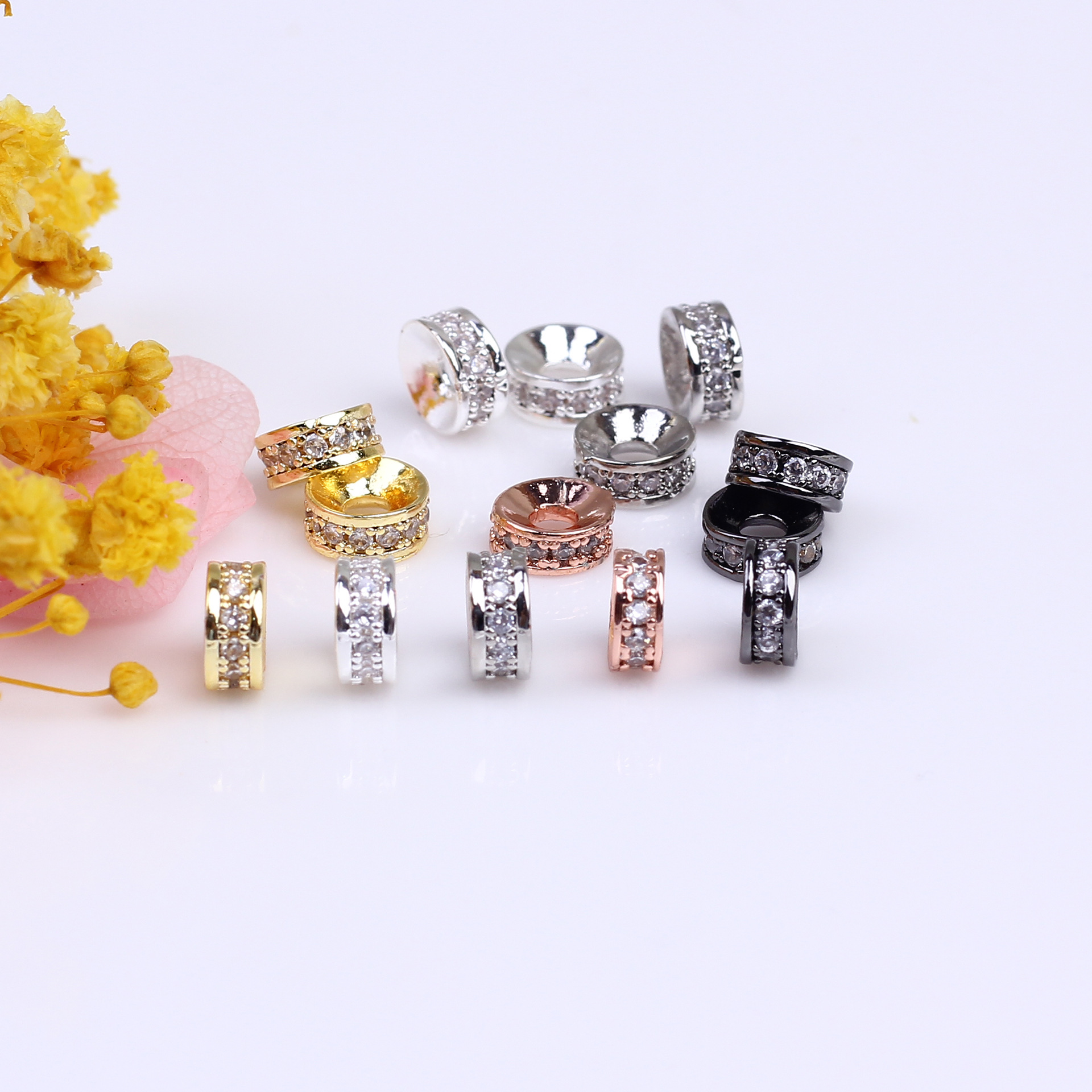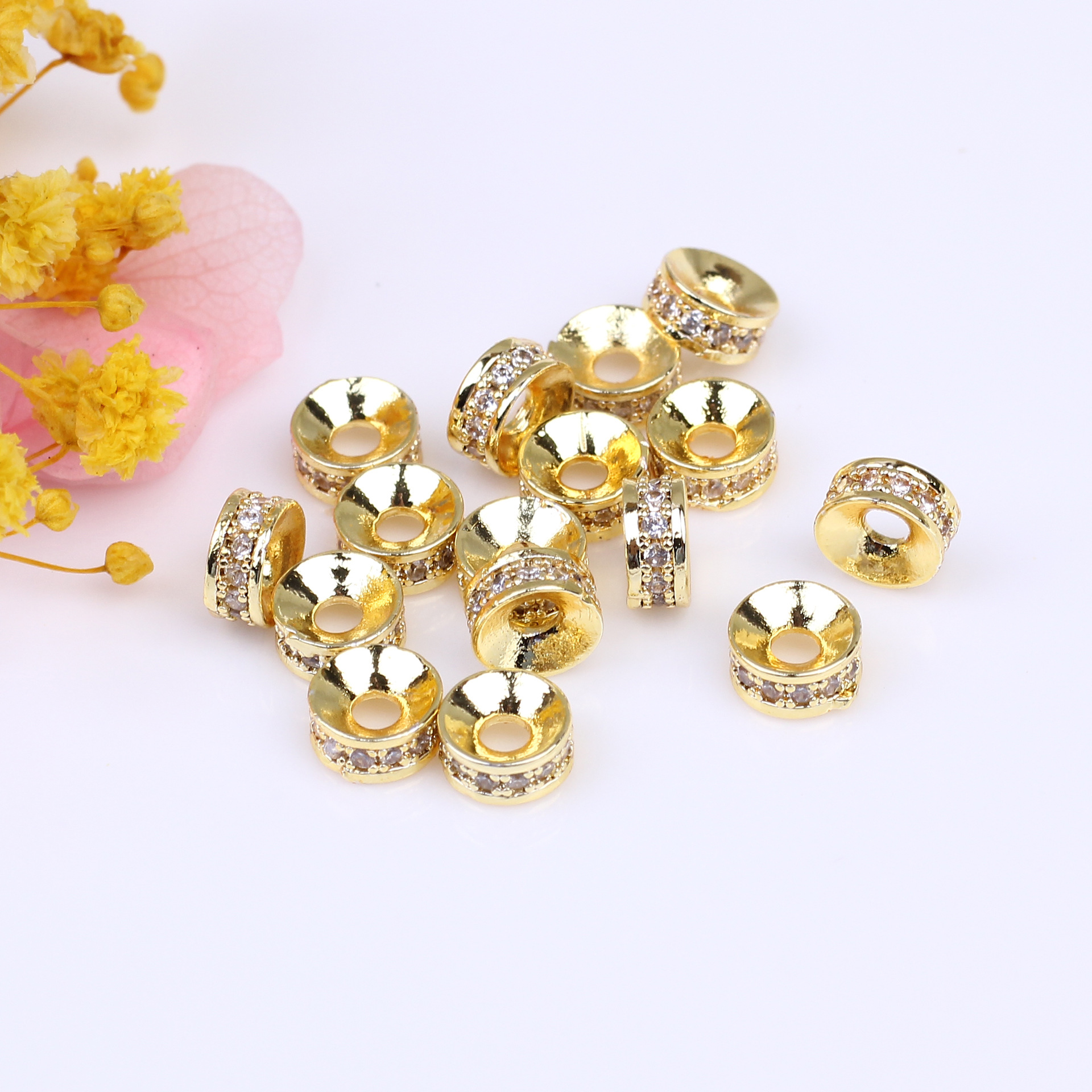 18K oro cobre micro incrustaciones ZIRCON espaciador ronda espaciador DIY pulsera collar joyería accesorios material al por mayor
