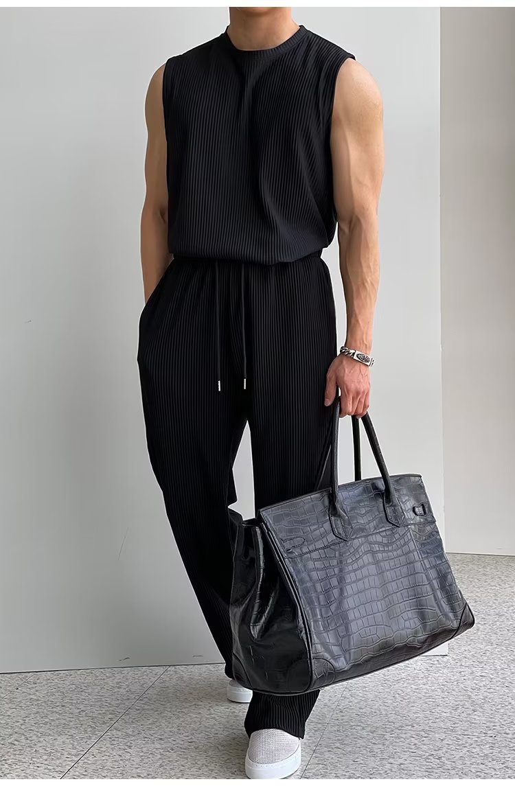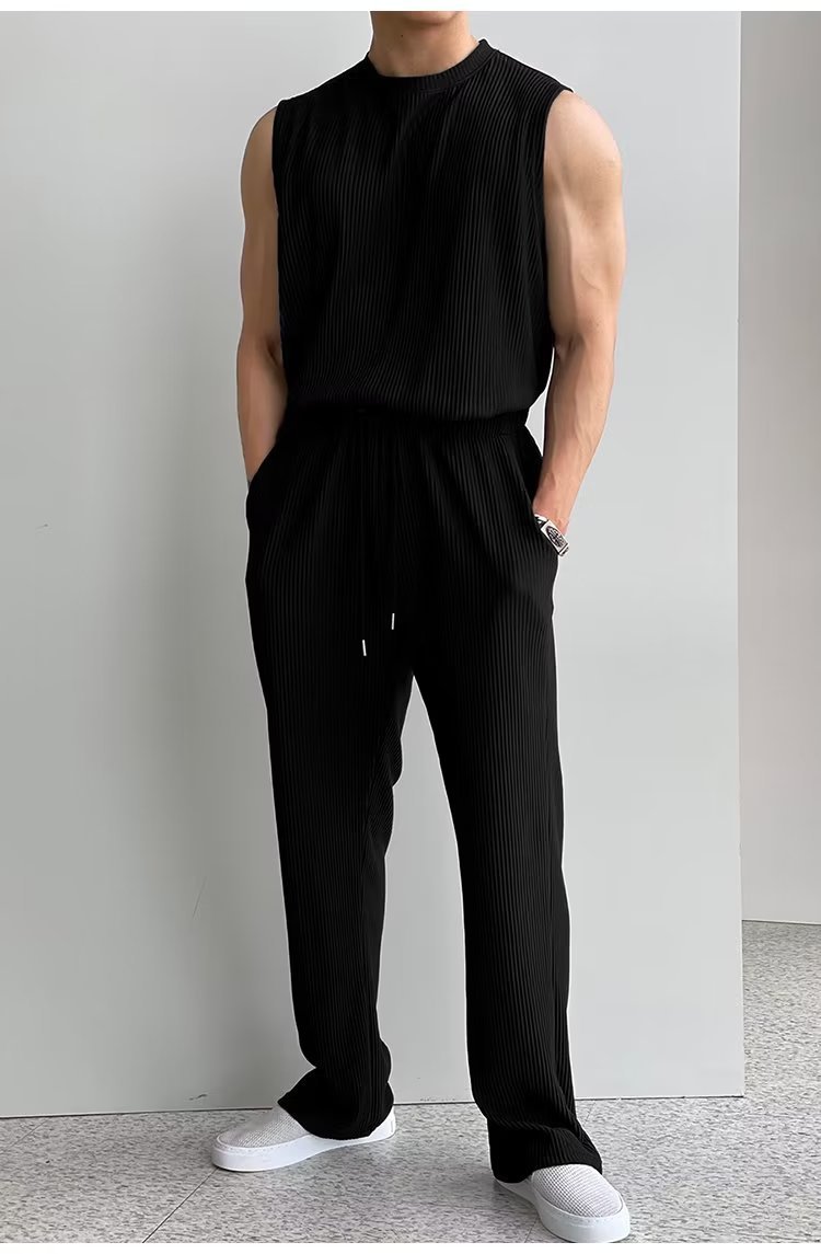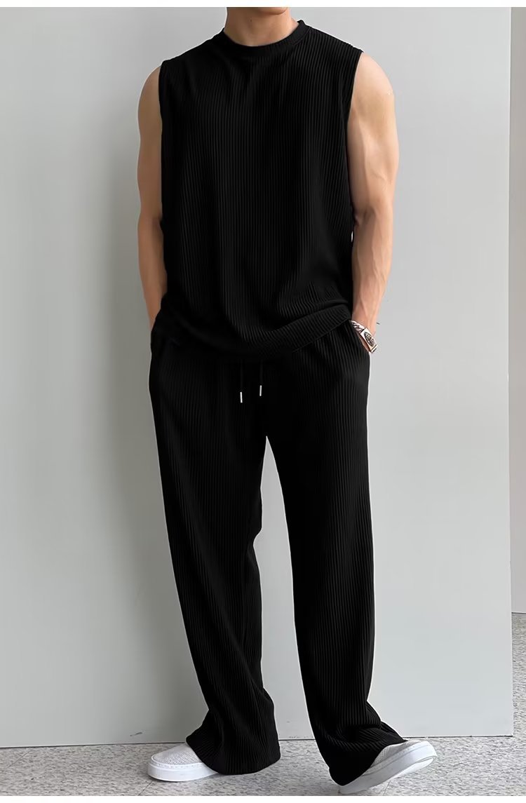 Traje deportivo de seda de hielo Chaleco de verano de los hombres camiseta sin mangas Pu Shuai Alto sentido de los hombres ropa deportiva coreana traje de dos piezas