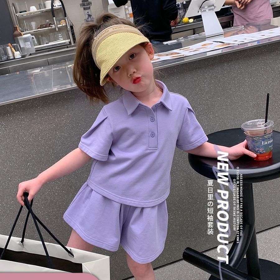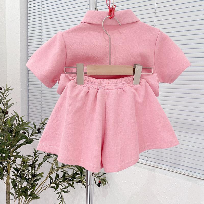 Traje de verano para niñas 2024 nuevo estilo occidental para niños casual de manga corta deportes bebé niñas polo conjunto de dos piezas
