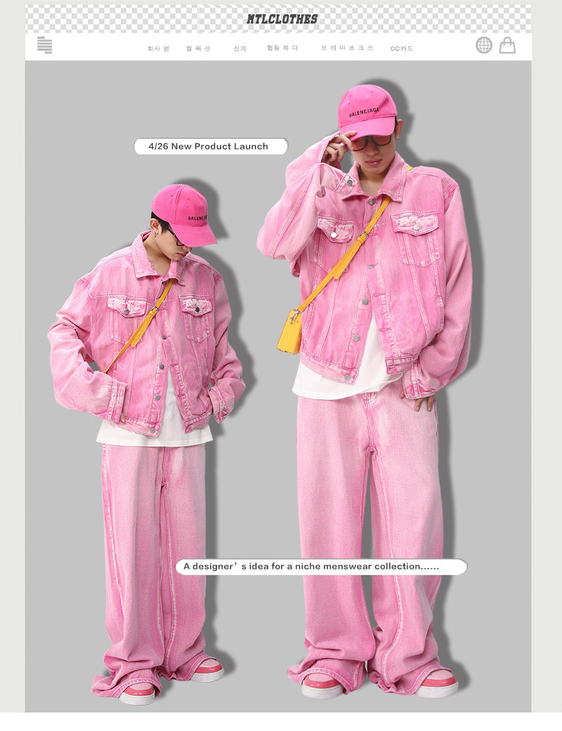 Mtlclothes ropa de Hombre | 2023 nuevo estilo coreano Rosa Denim coat straight jeans casual traje moda