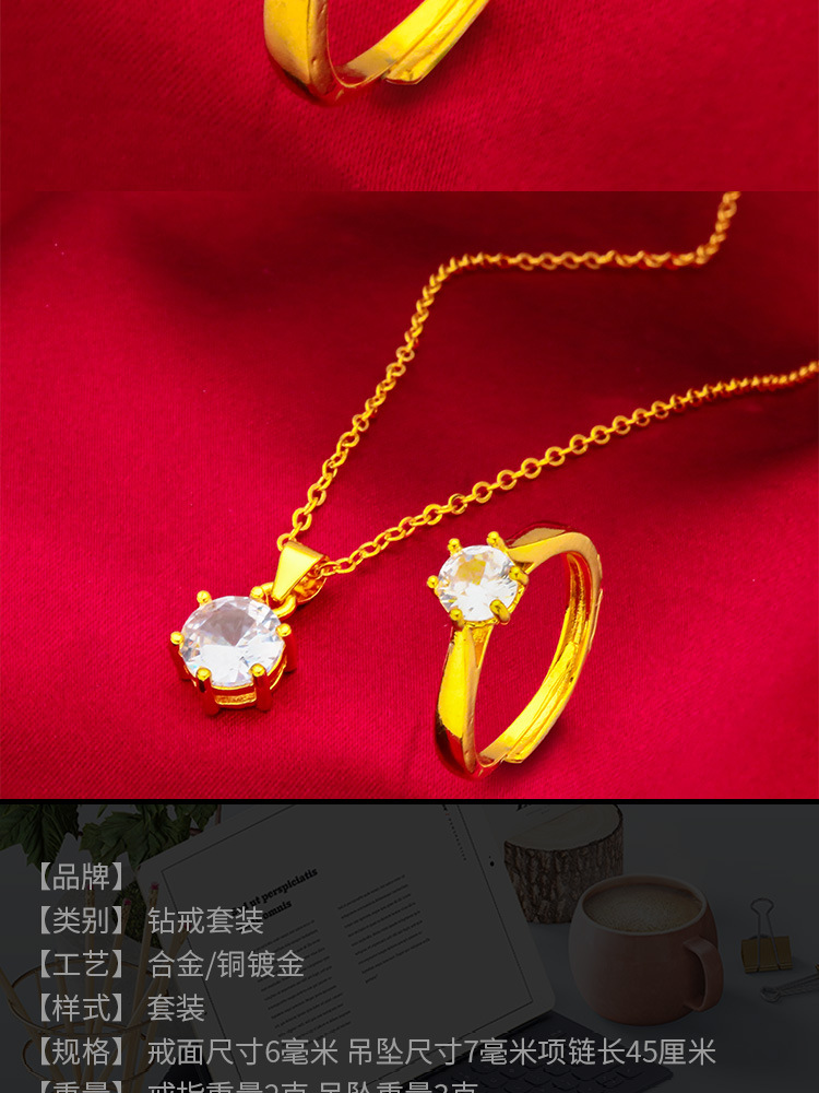 Vietnam arena oro blanco anillo de diamantes de cristal collar Vietnam arena oro blanco anillo collar venta al por mayor traje transfronterizo