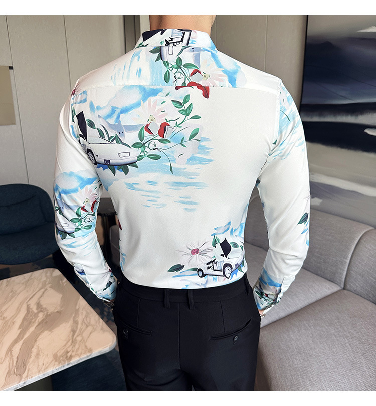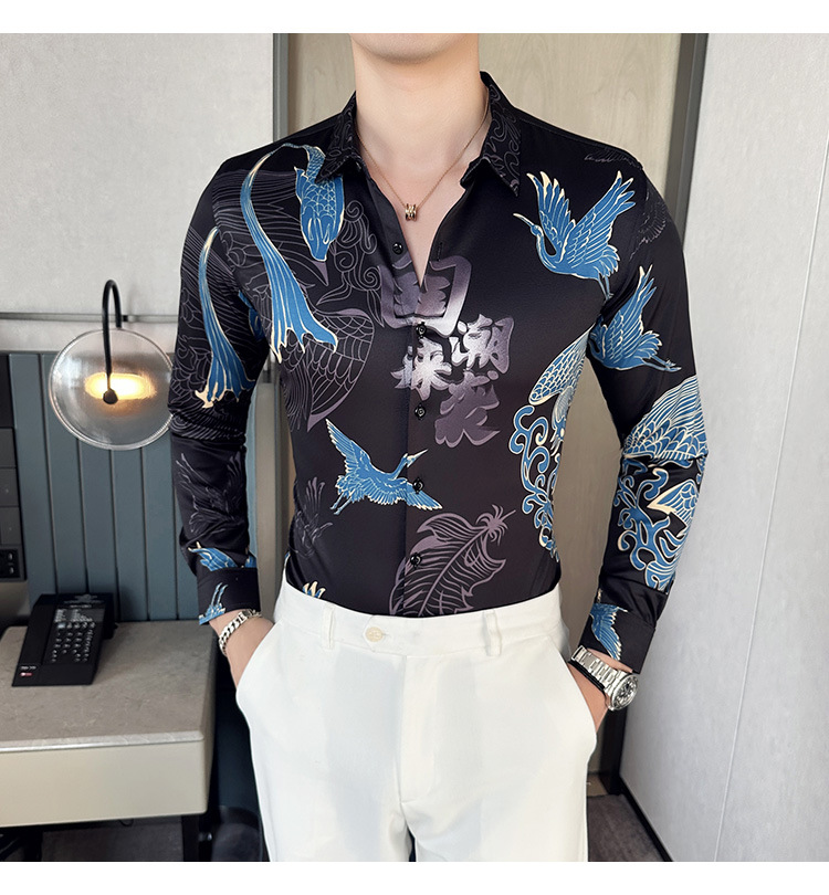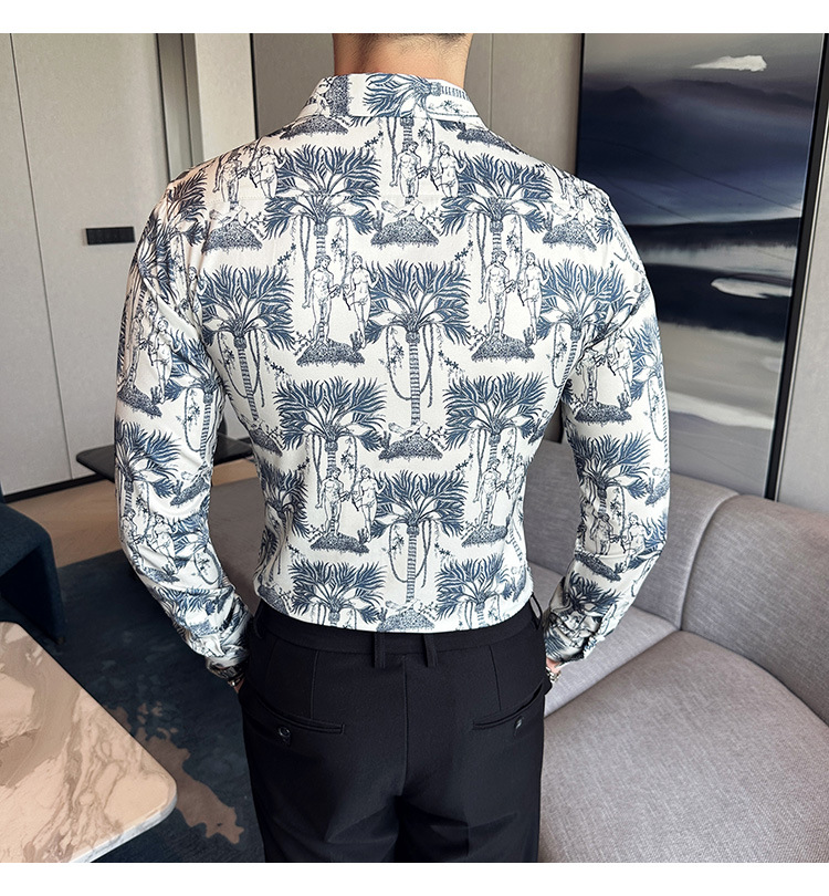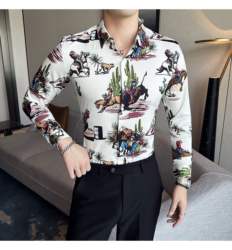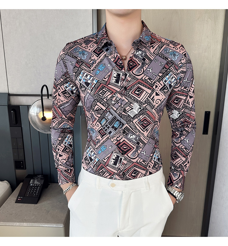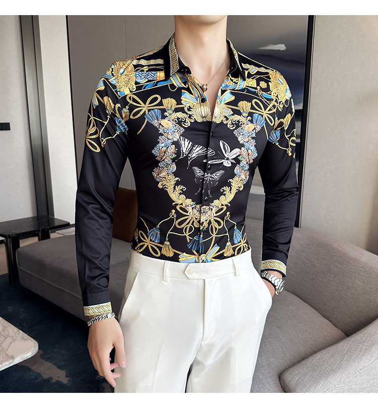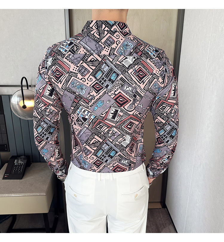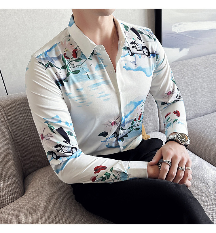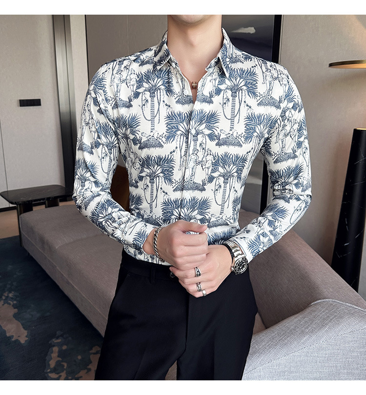Nueva camisa de moda de manga larga de los hombres de moda camisa impresa slim fit ropa de suministro transfronterizo version-P55 de colección