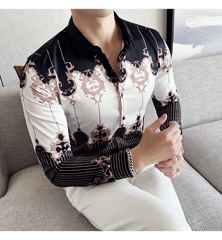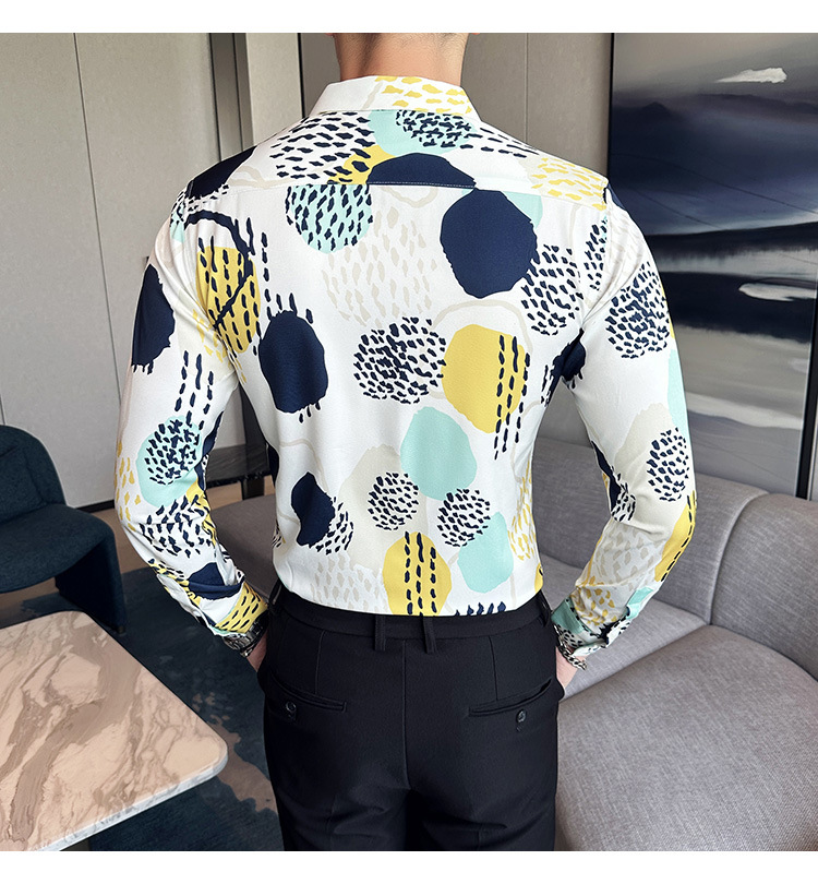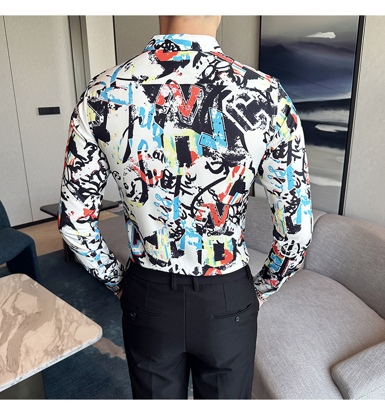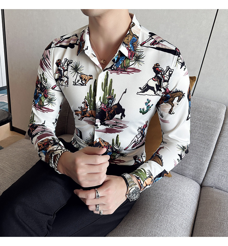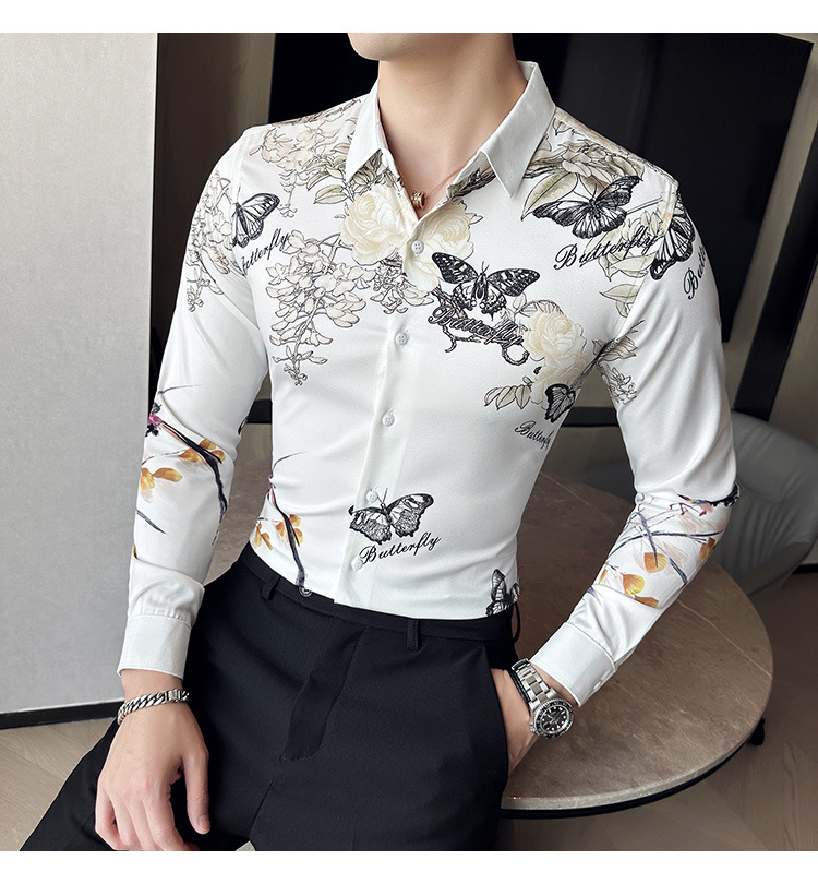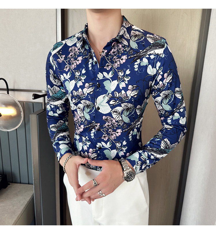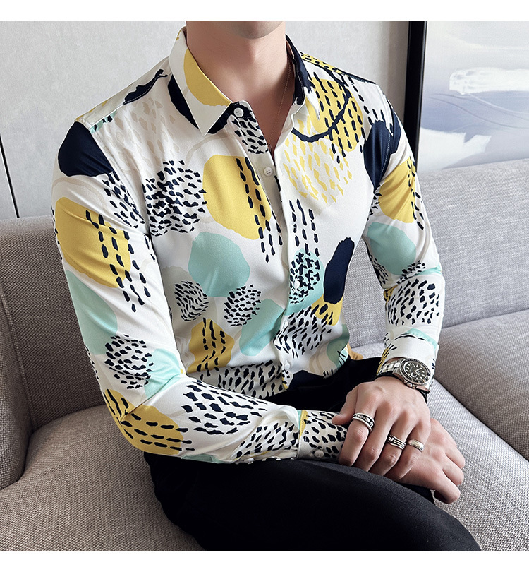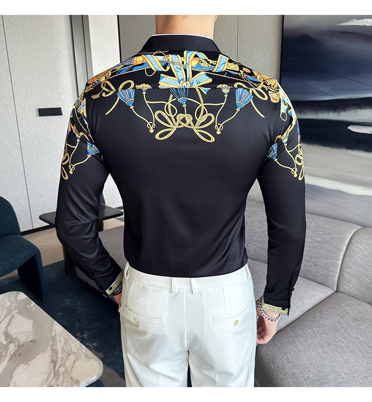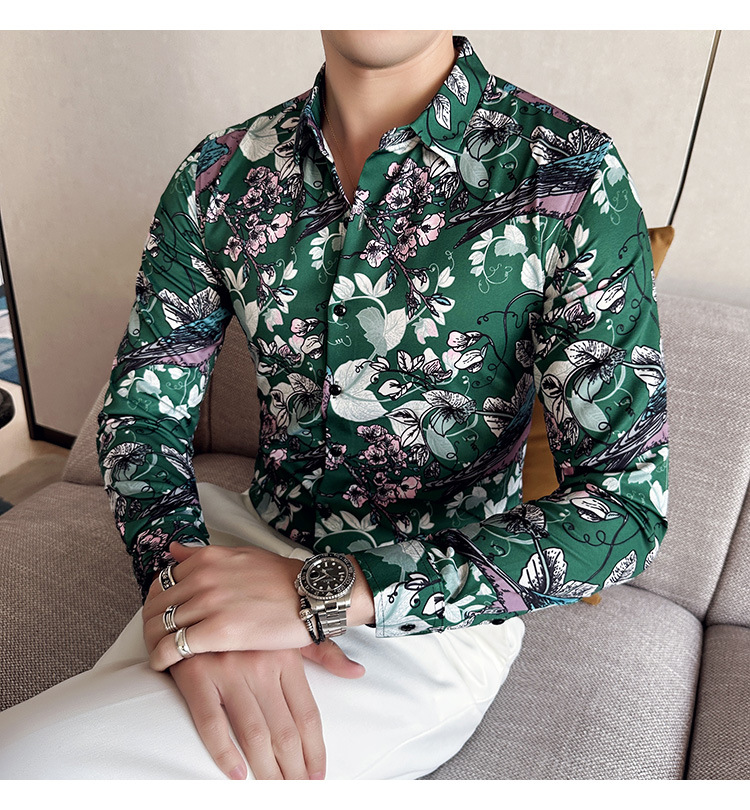 Nueva camisa de moda de manga larga de los hombres de moda camisa impresa slim fit ropa de suministro transfronterizo version-P55 de colección