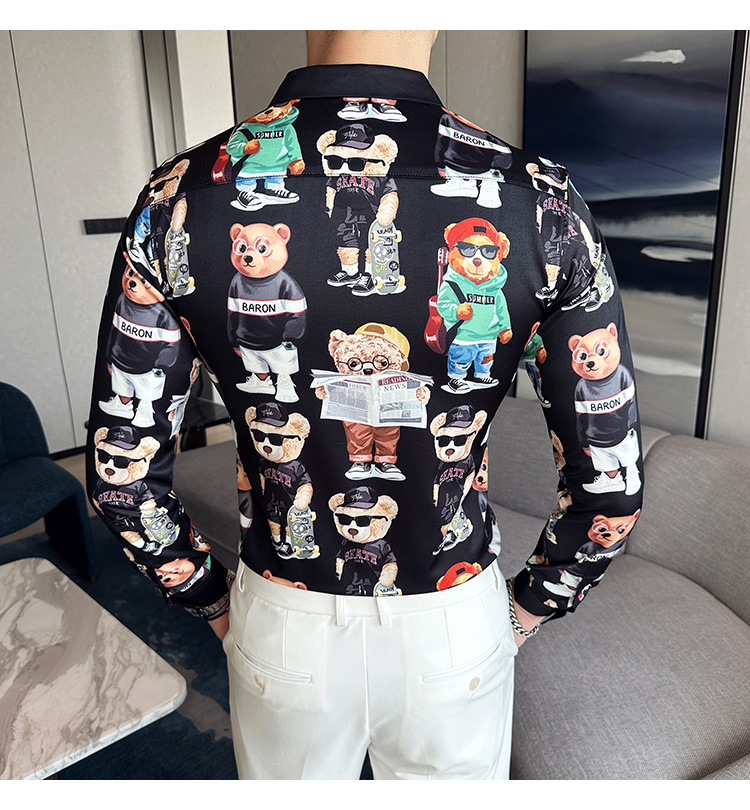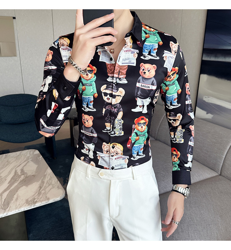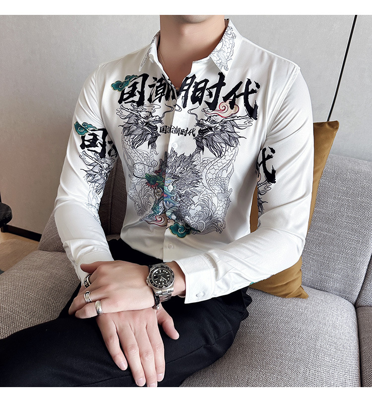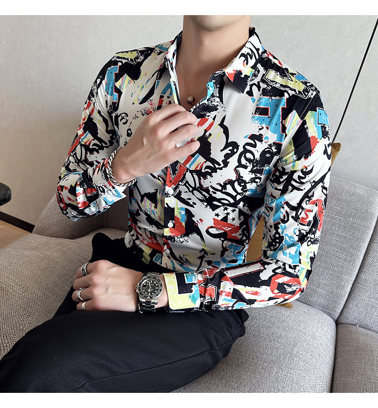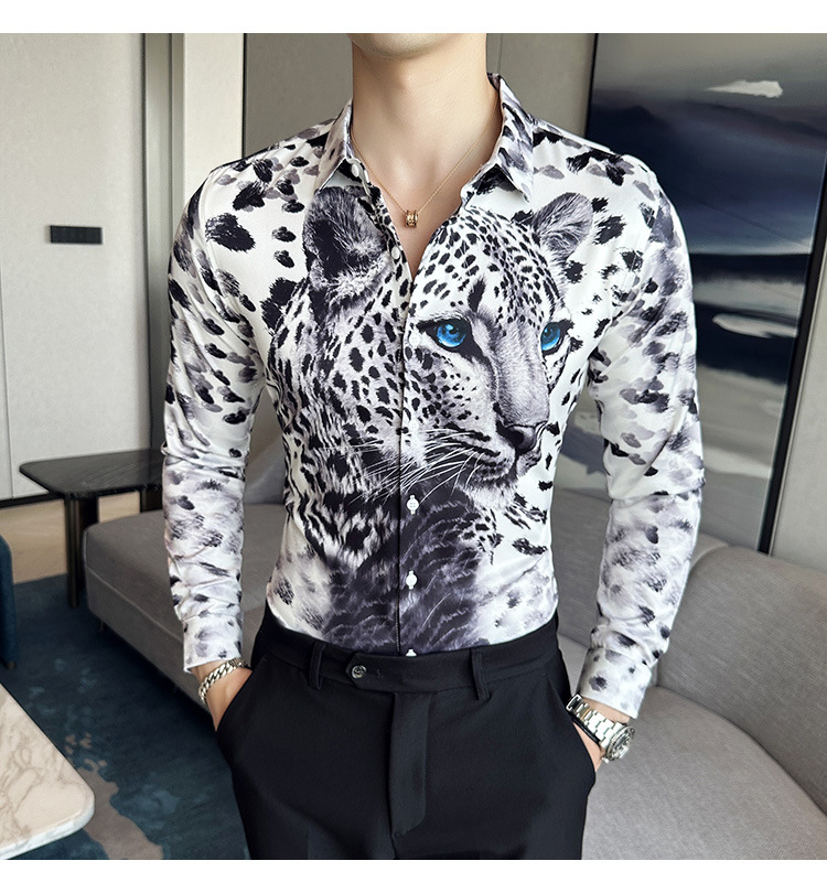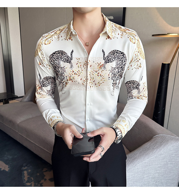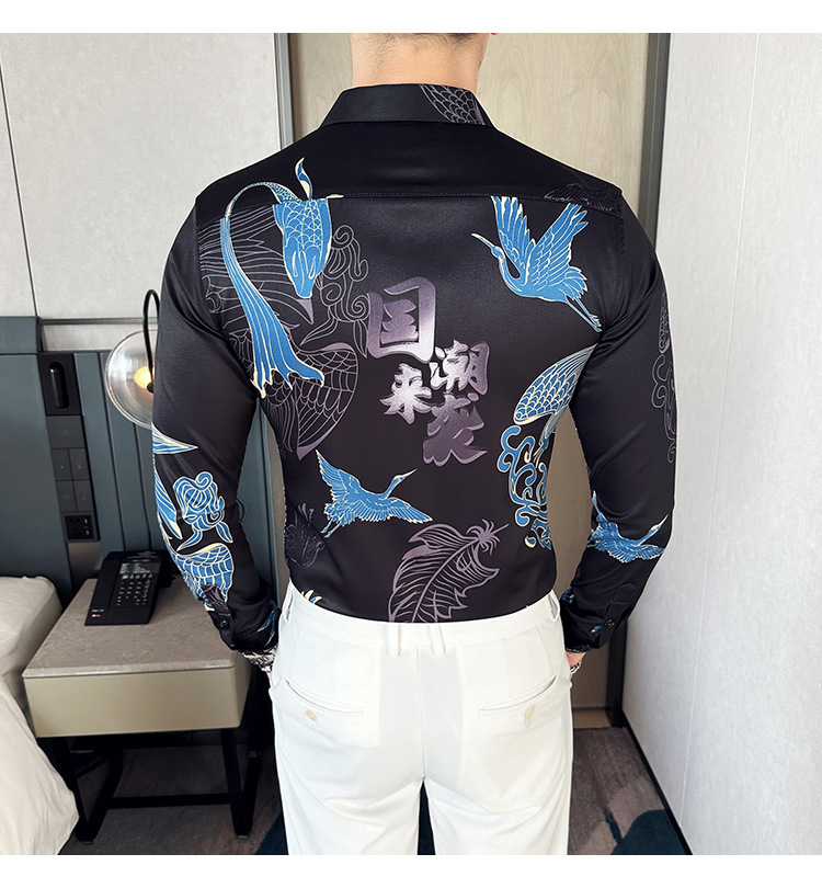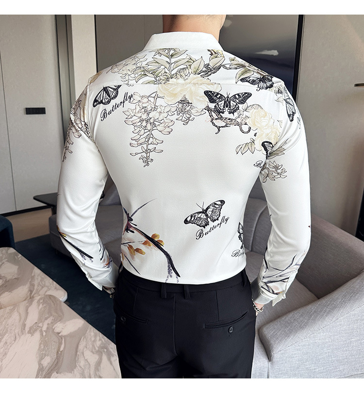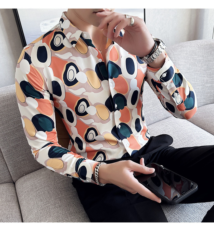 Nueva camisa de moda de manga larga de los hombres de moda camisa impresa slim fit ropa de suministro transfronterizo version-P55 de colección