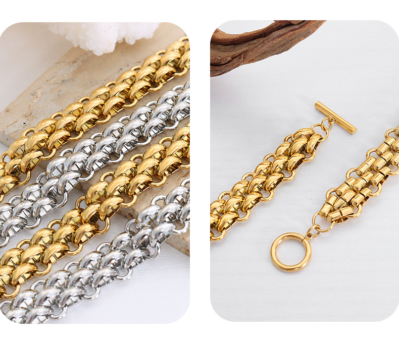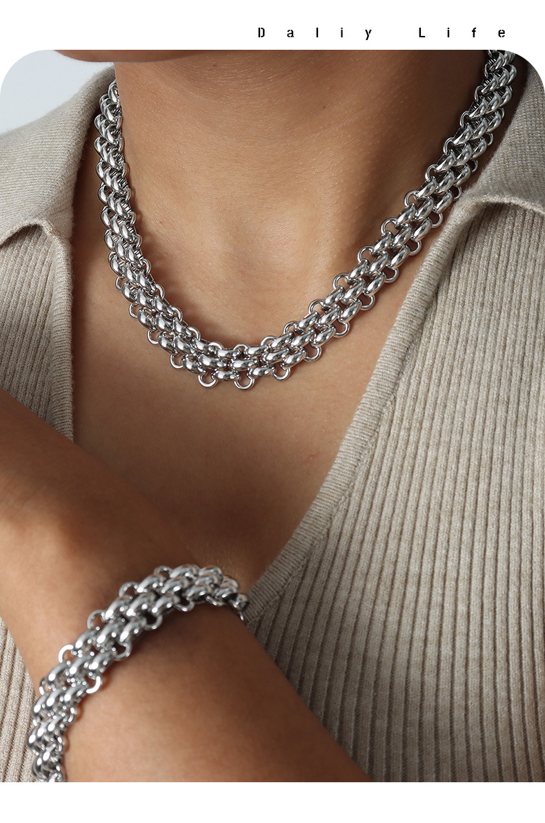 Europeo y americano exagerado metal otbuckle pulsera collar de la joyería traje transfronterizo todo-fósforo de acero de titanio de cadena gruesa no-decoloración de la joyería