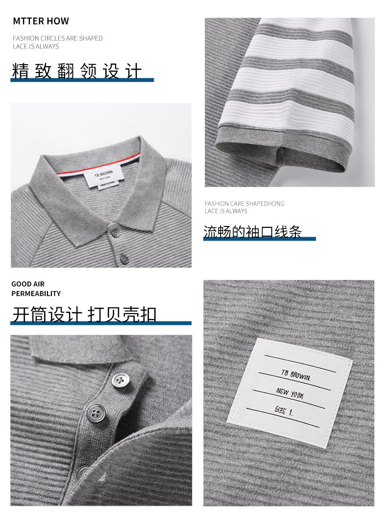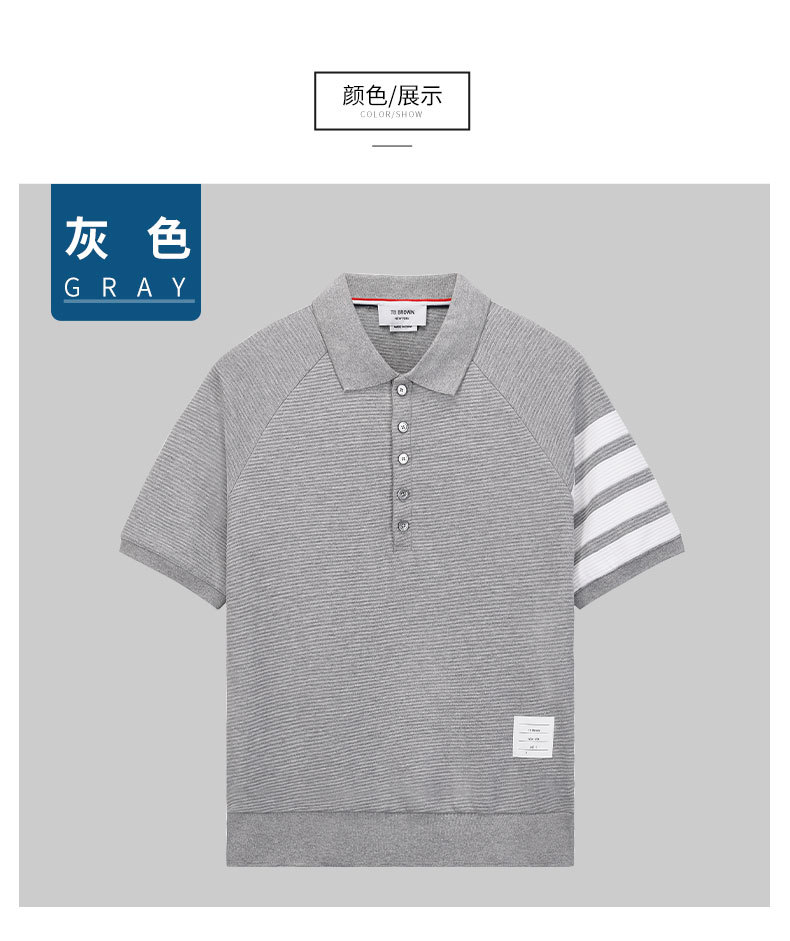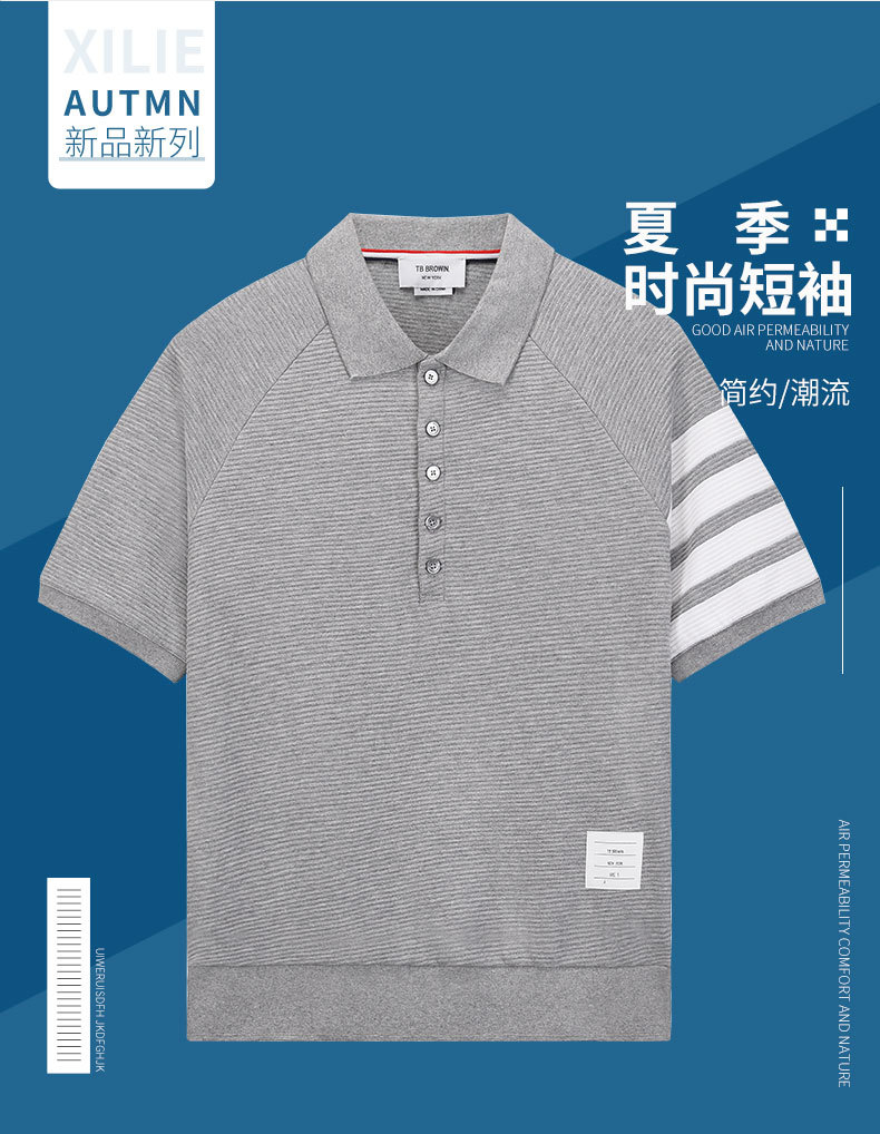 TB BROWIN2023 verano nuevos hombres y mujeres del mismo estilo de ondulación agua solapa manga corta casual cuatro barras polo
