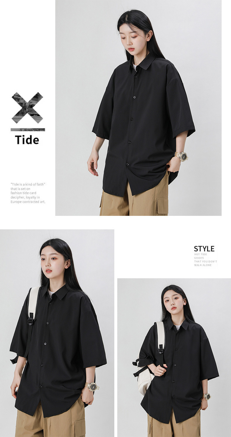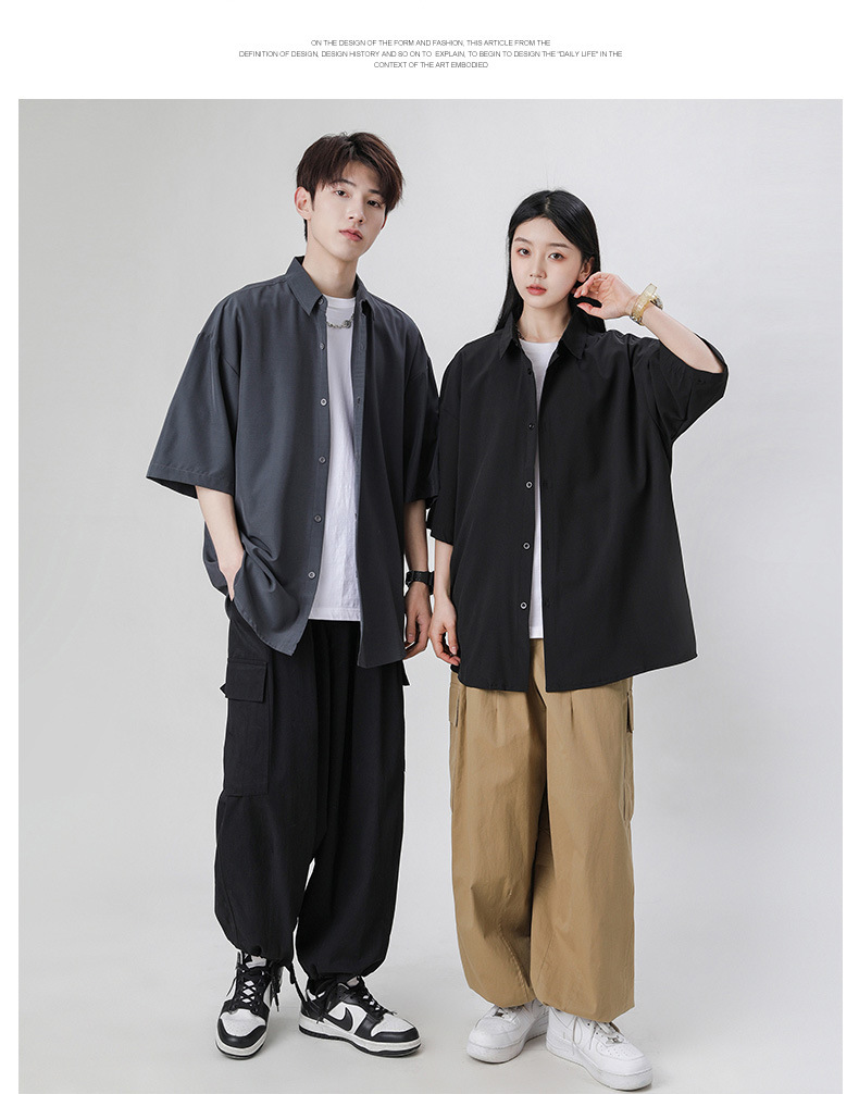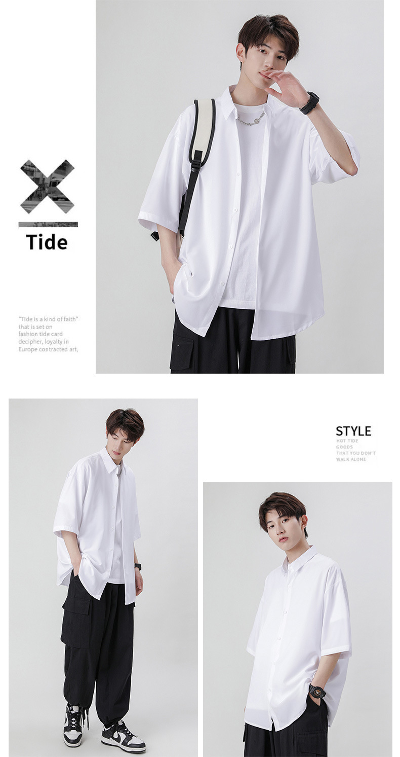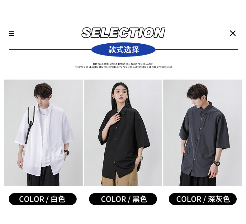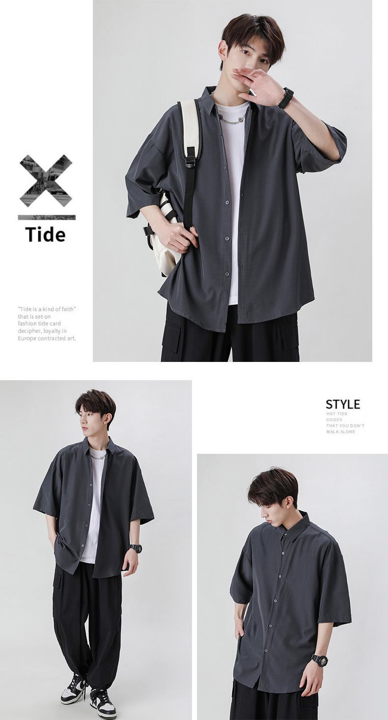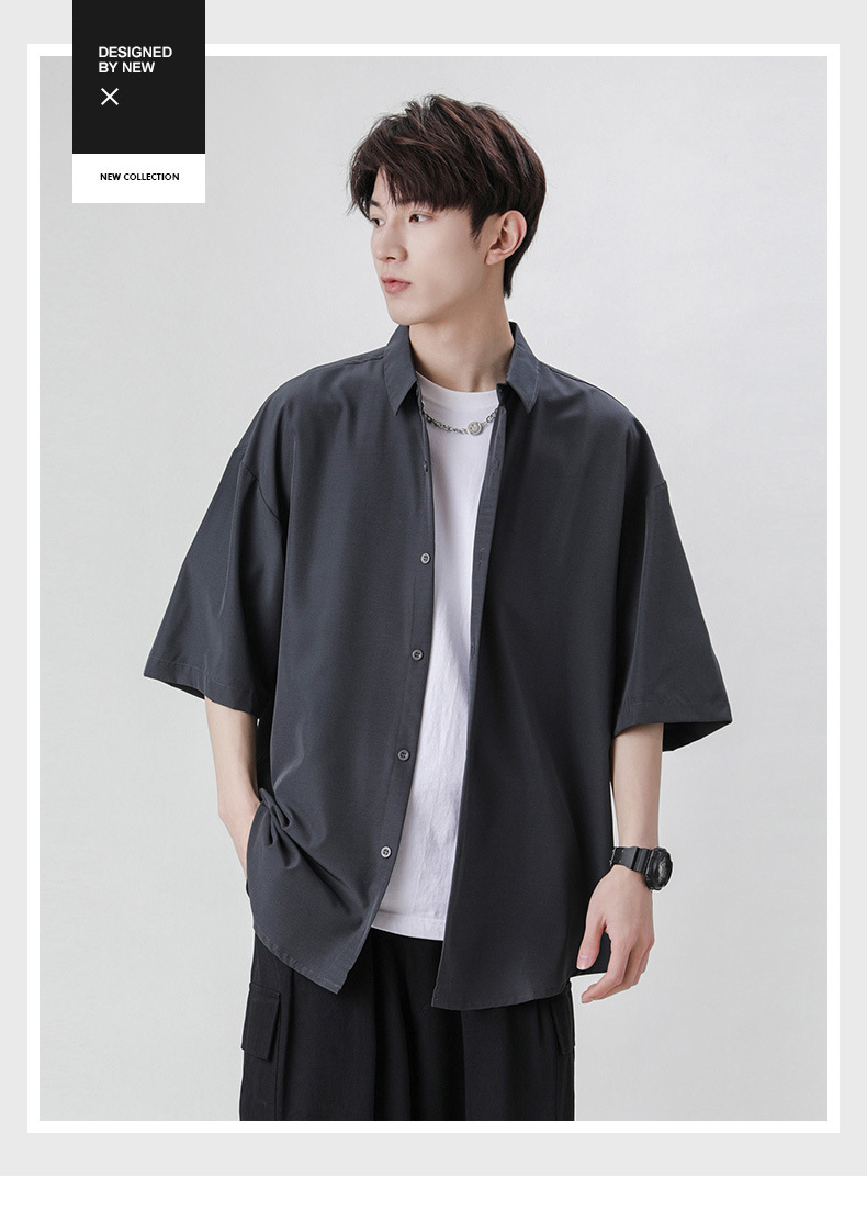 ACU ropa de Hombre | 2024 verano nuevo ligero fresco suelta marca gota hombro solapa color sólido seda del hielo camisa manga corta