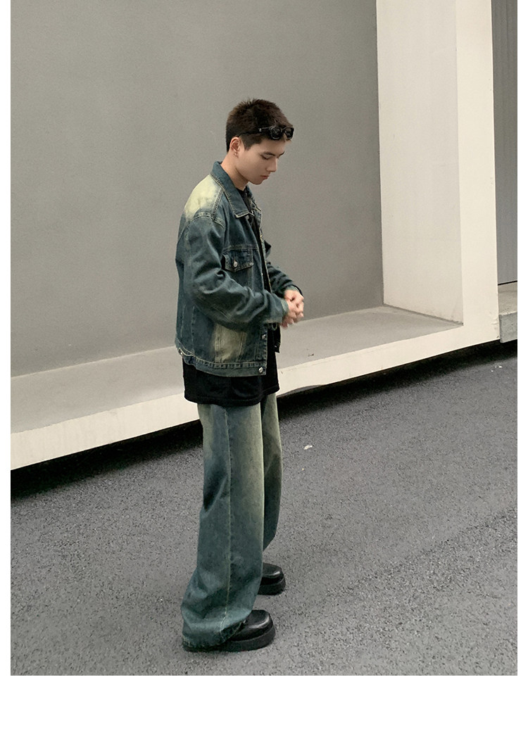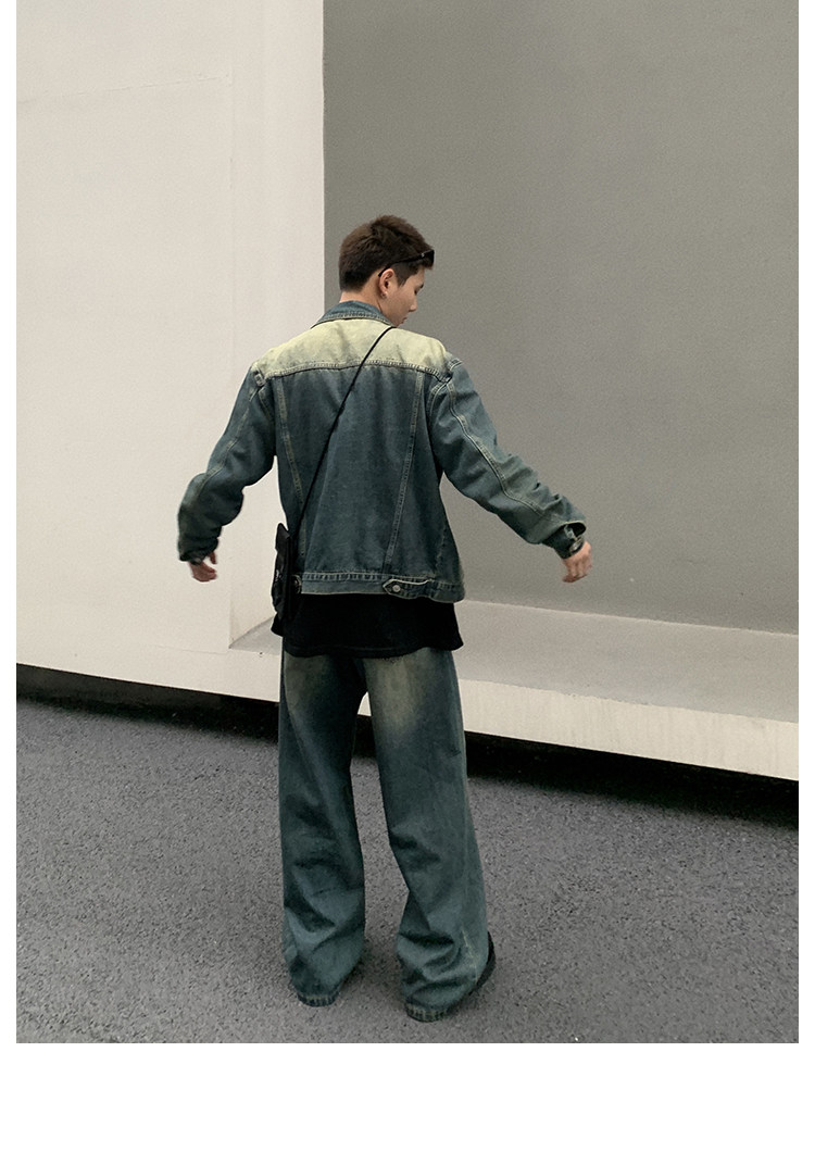 2023 marca de moda americana retro Denim coat hombres primavera moda guapo suelta chaqueta de moda de dos piezas