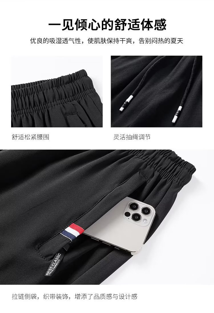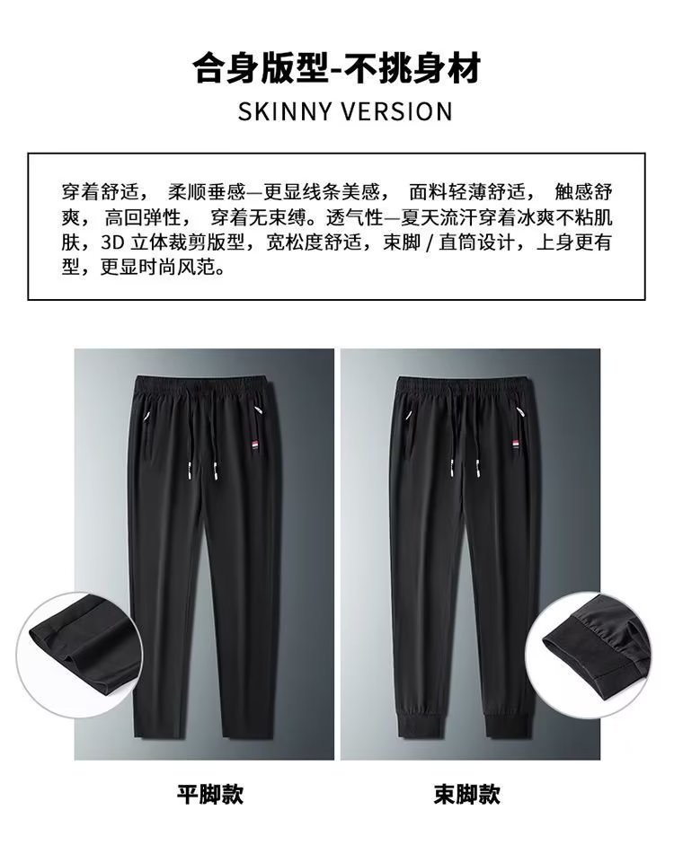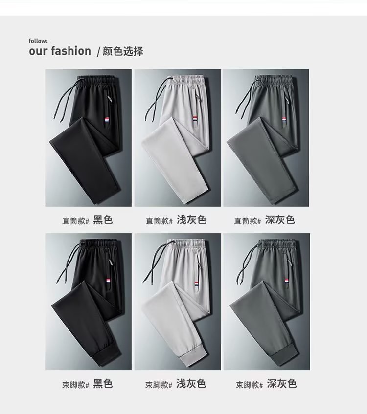 Pantalones de los hombres de verano Delgado estilo coreano de moda estilo coreano de seda de hielo transpirable pantalones casuales marca de moda Pantalones deportivos a juego