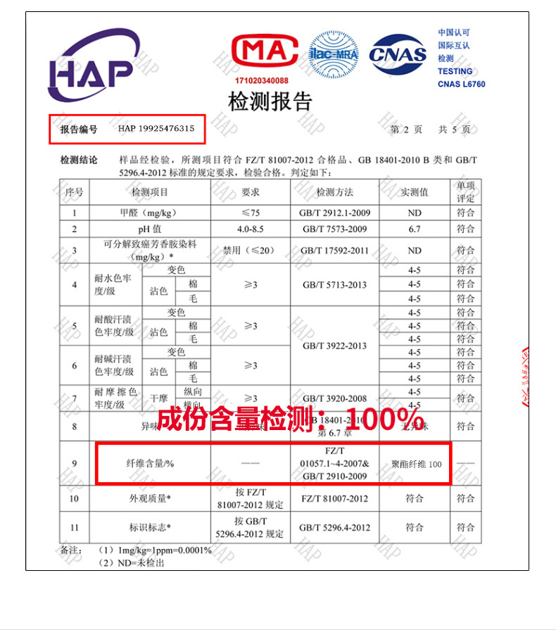 | Contenido de la composición de la tela principal | 100 |