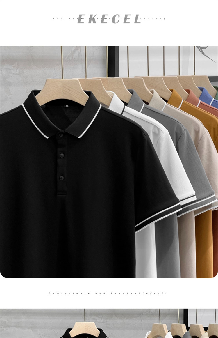 Tiktok verano nuevo Polo camisa de los hombres de seda de hielo de manga corta juvenil casual simple moda todo partido solapa camiseta