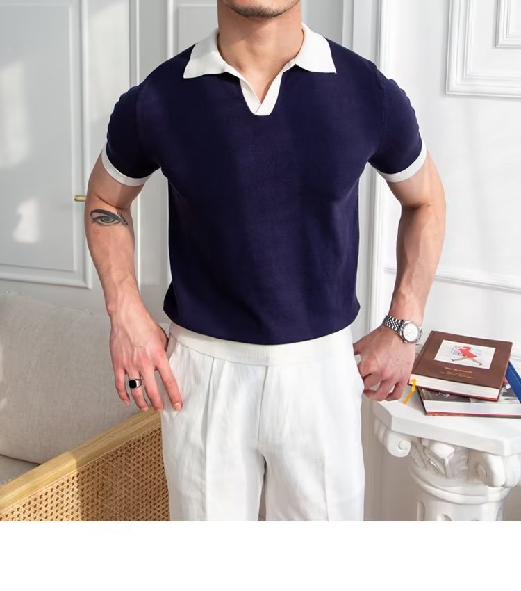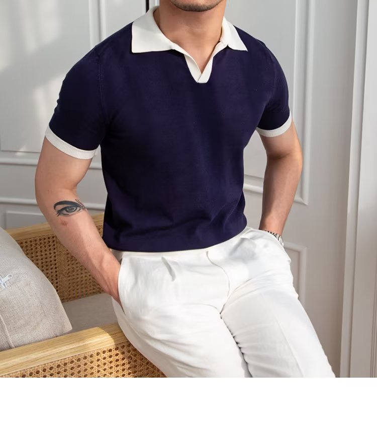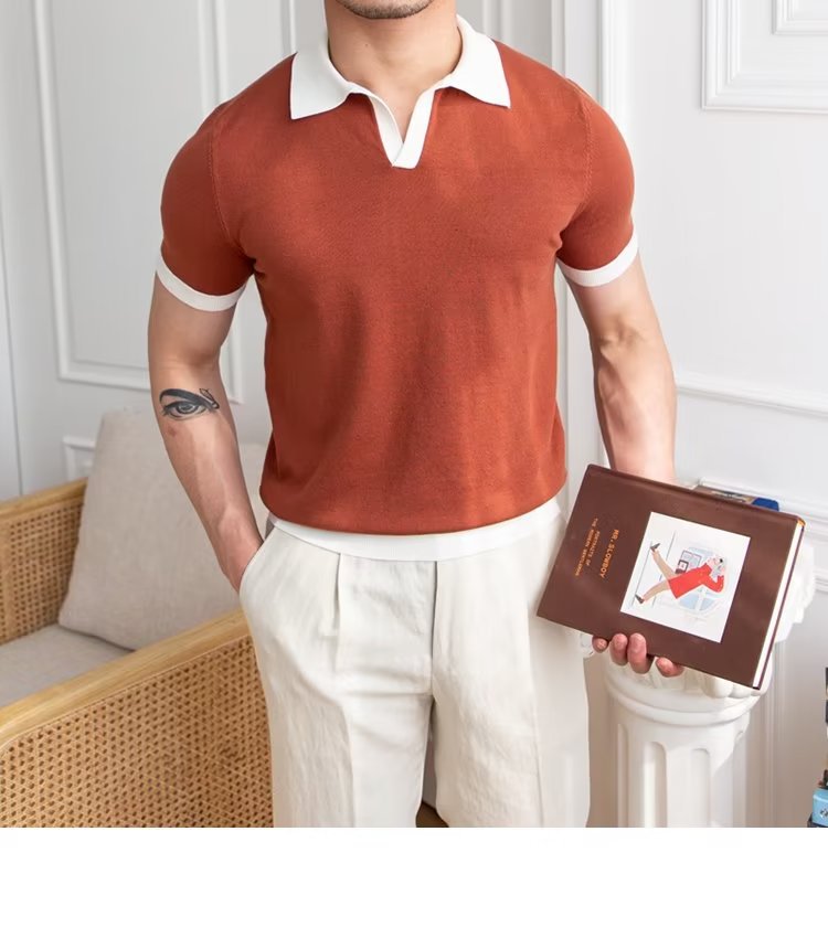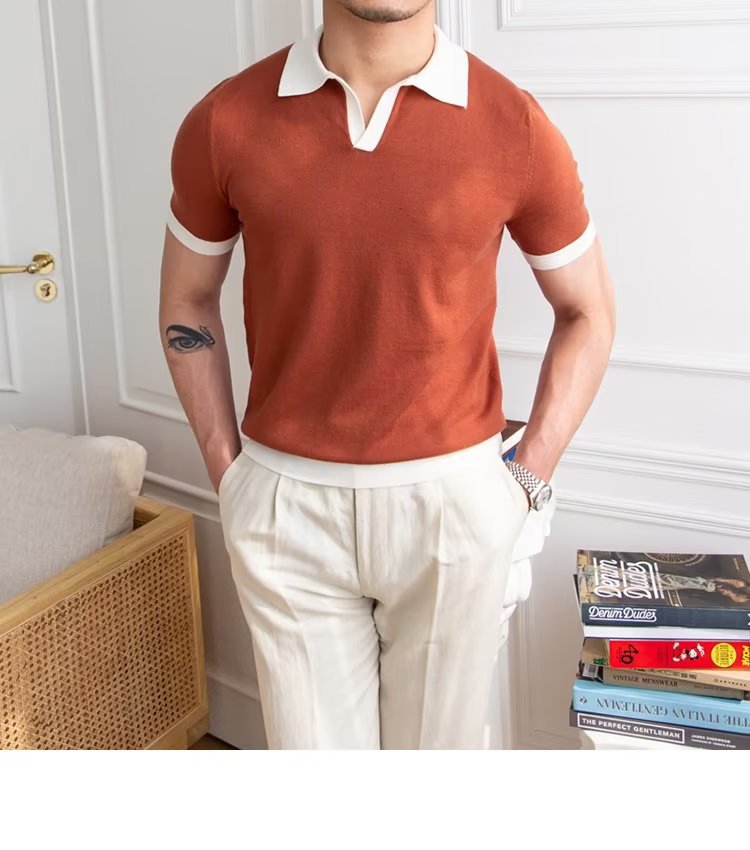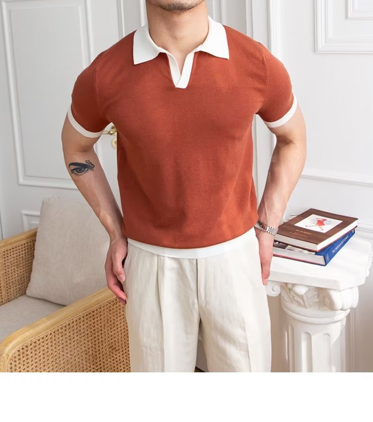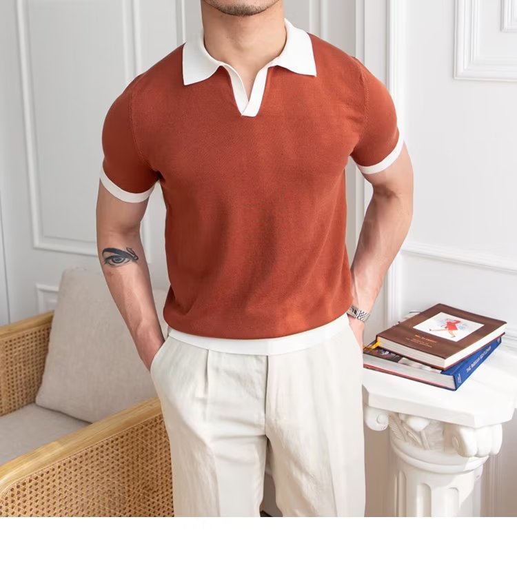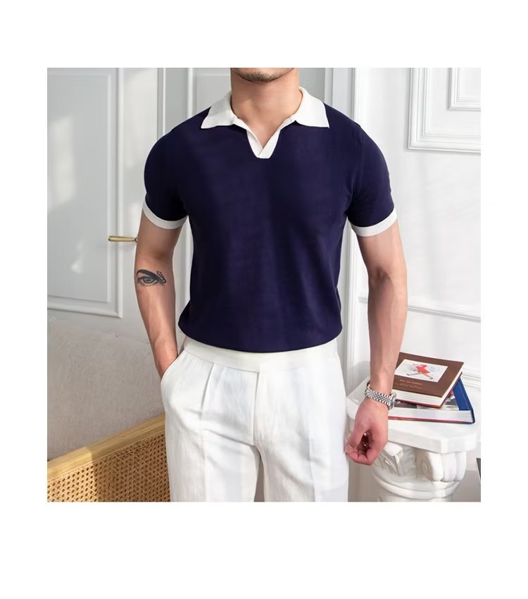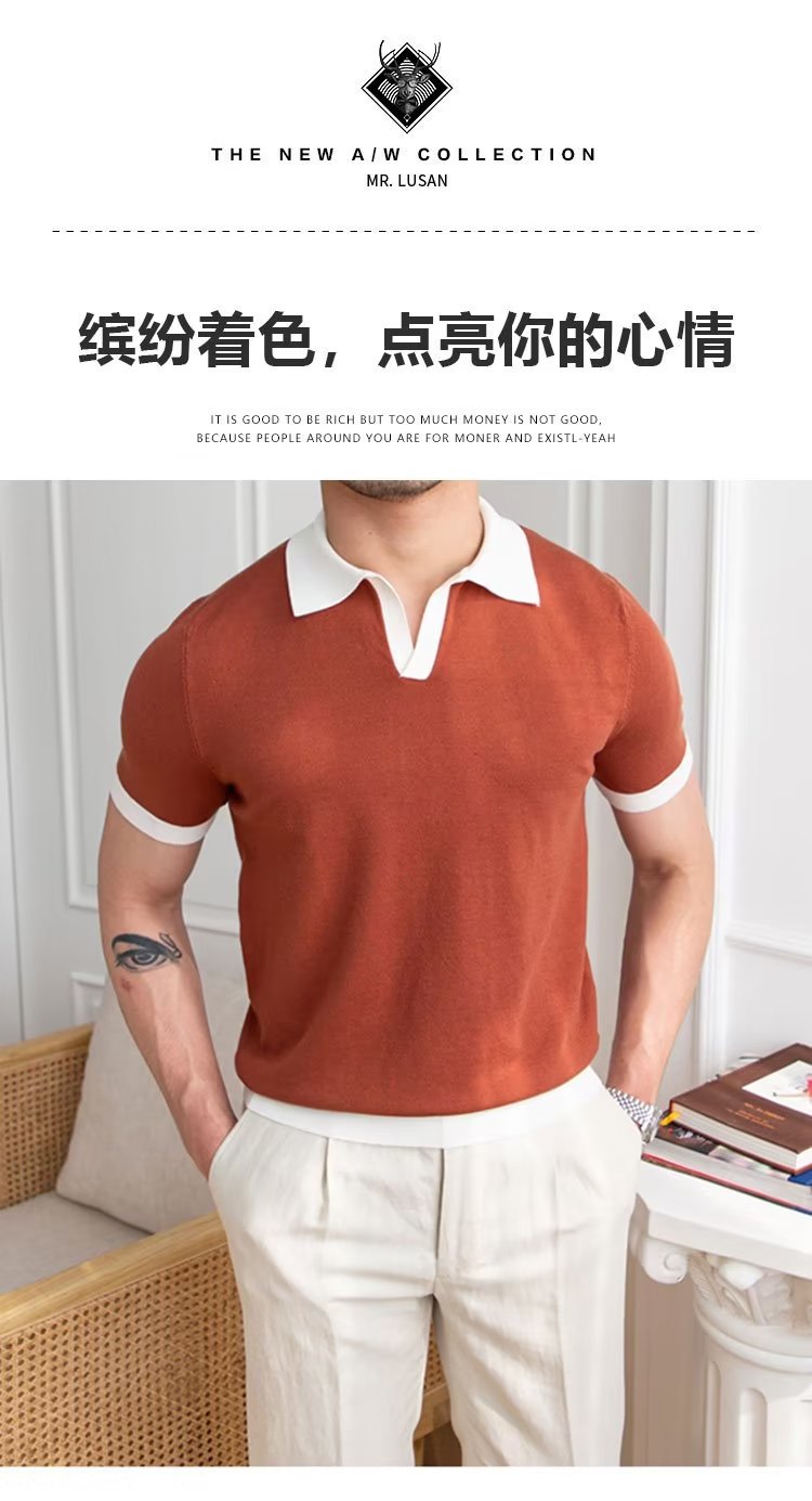 Polo de manga corta de color sólido, estilo japonés informal y moderno, nuevo estándar para hombre, moda juvenil y popular para el verano 2025.