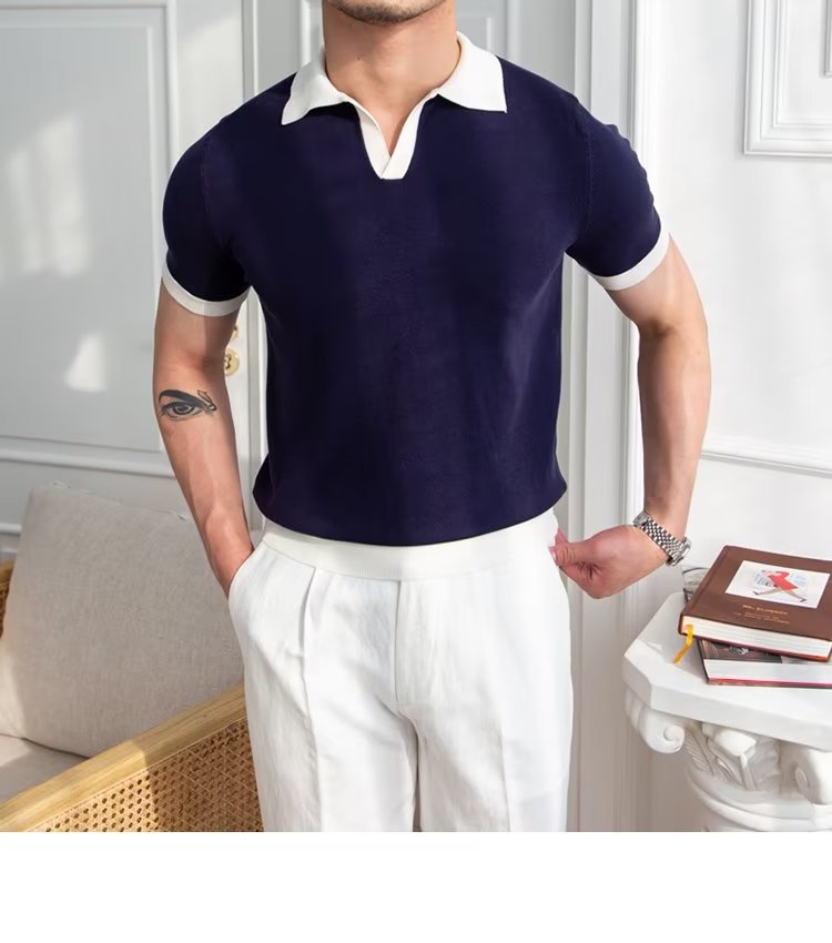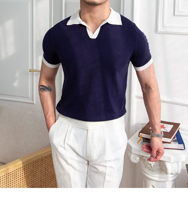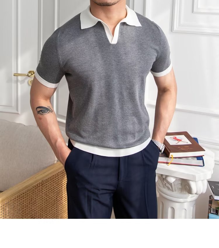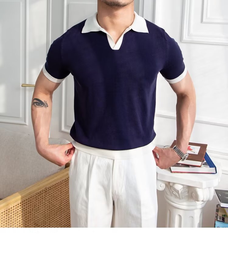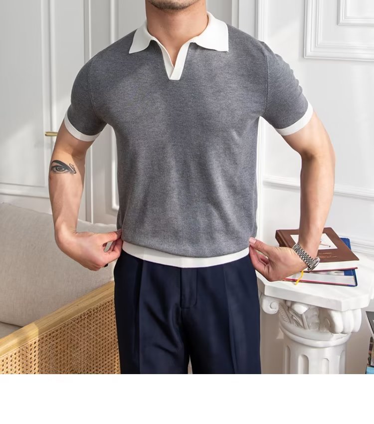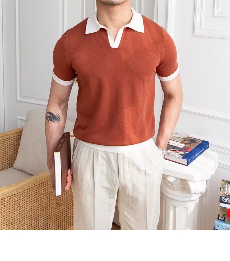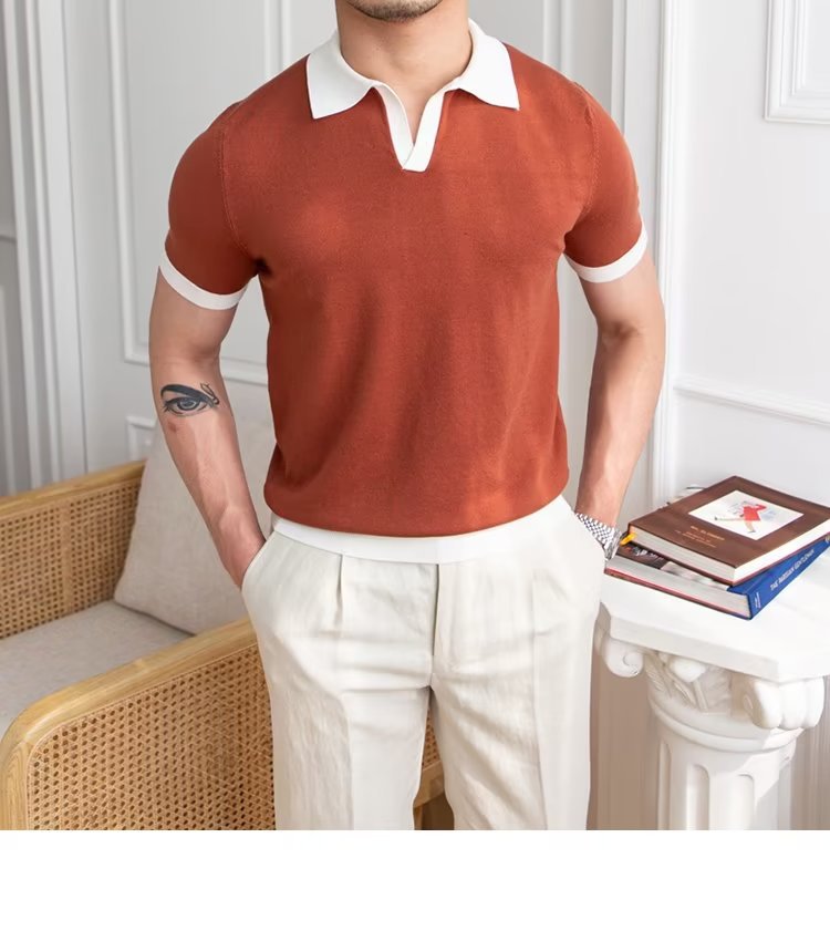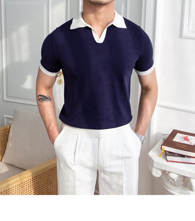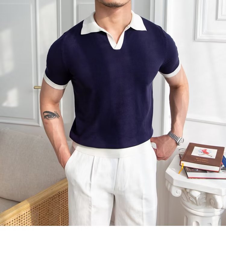 Polo de manga corta de color sólido, estilo japonés informal y moderno, nuevo estándar para hombre, moda juvenil y popular para el verano 2025.