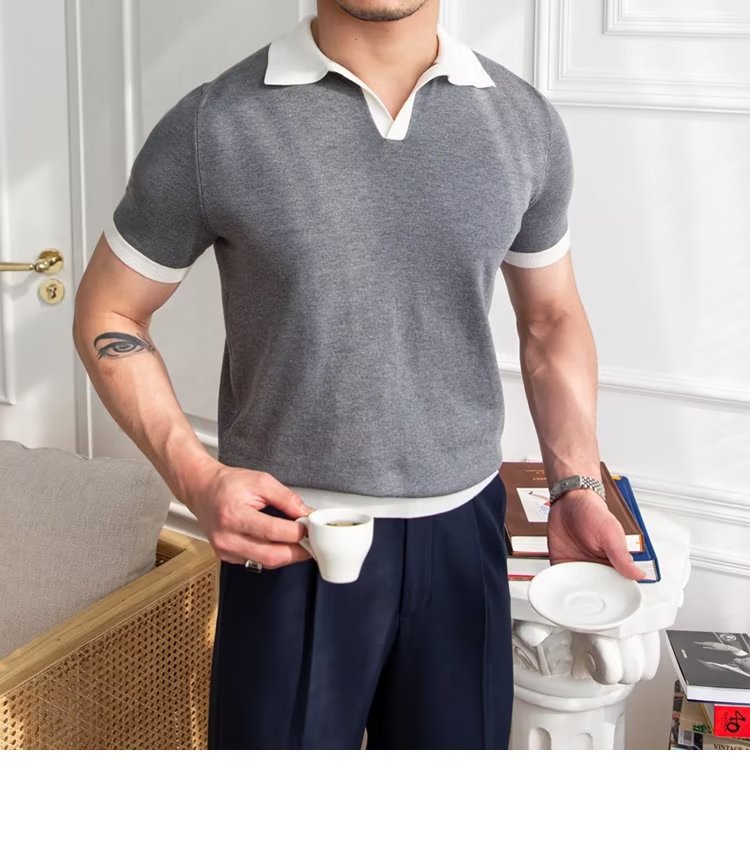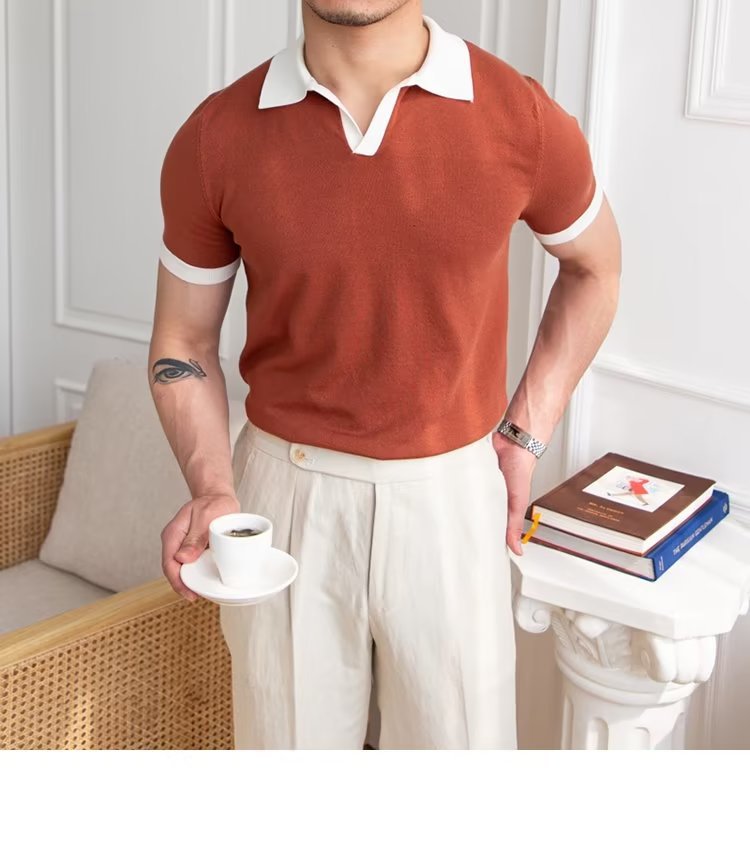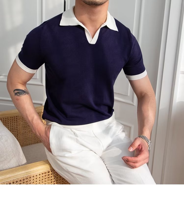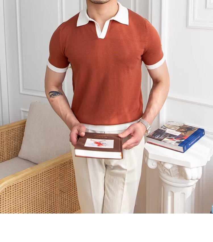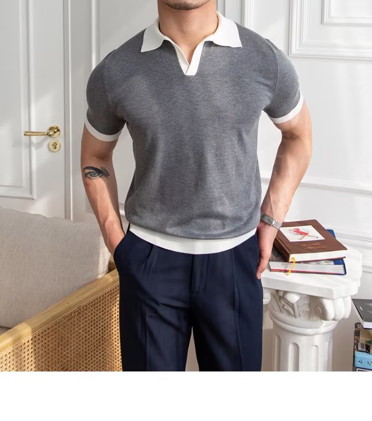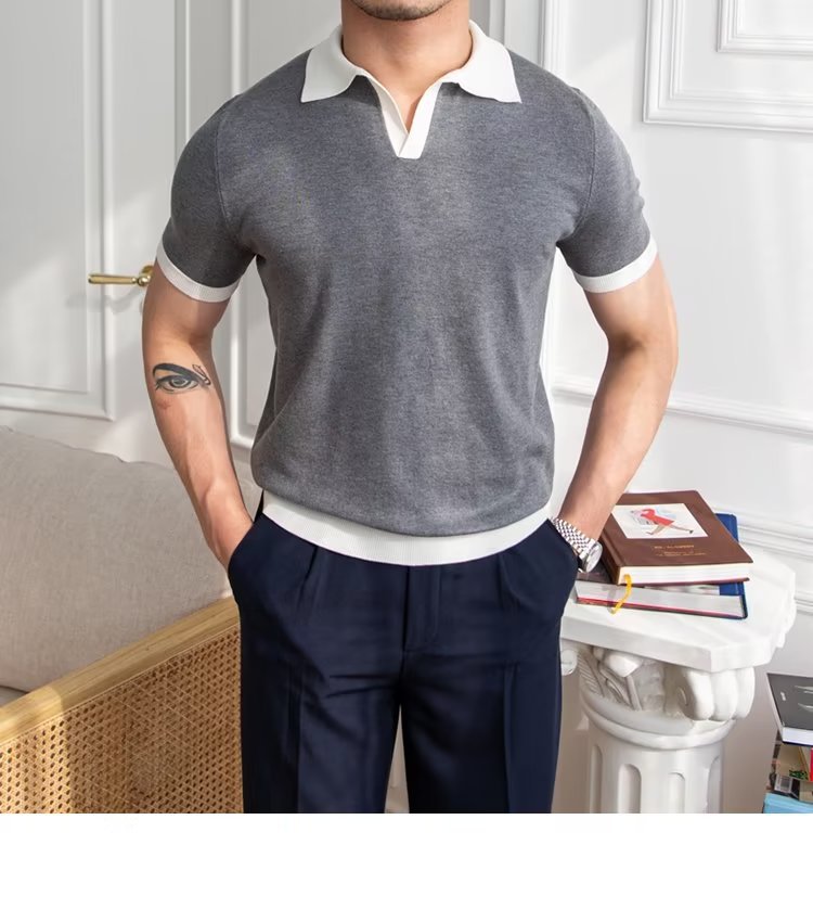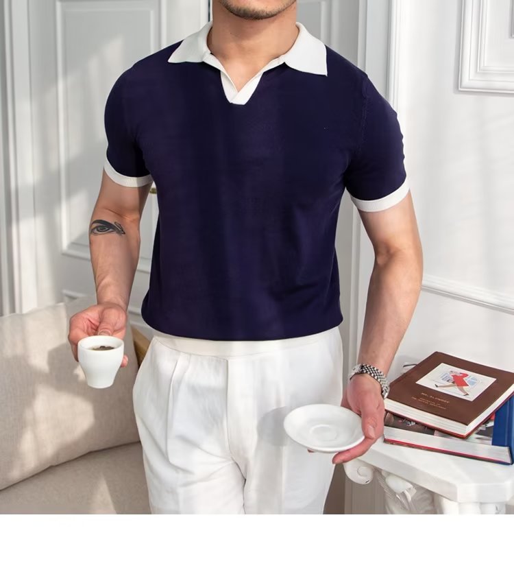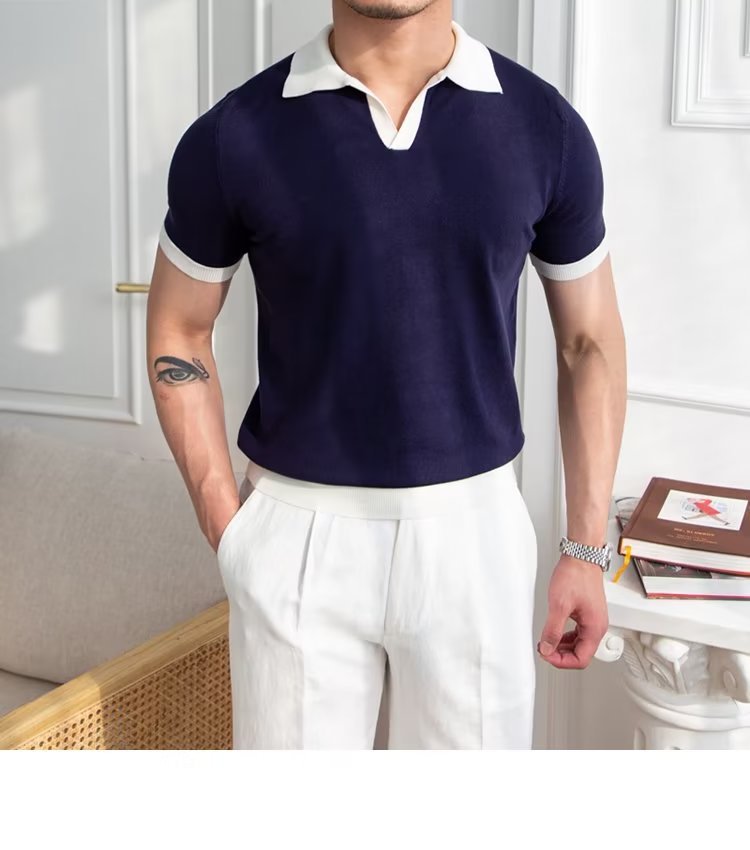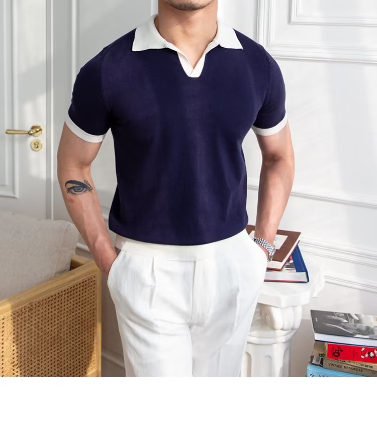 Polo de manga corta de color sólido, estilo japonés informal y moderno, nuevo estándar para hombre, moda juvenil y popular para el verano 2025.