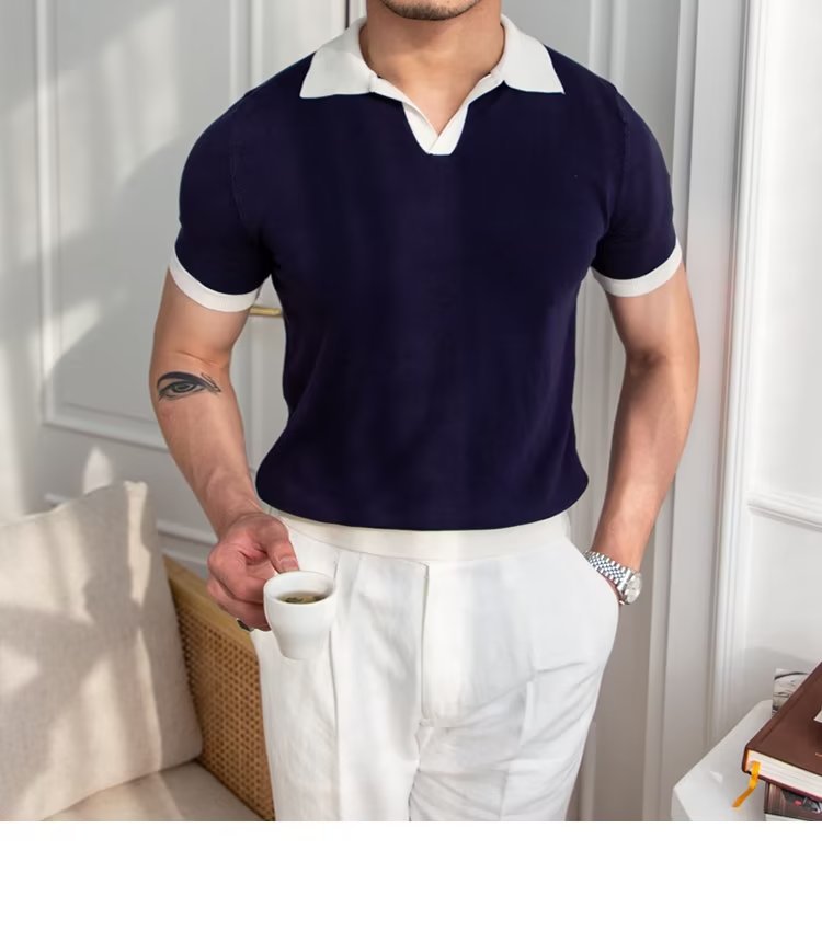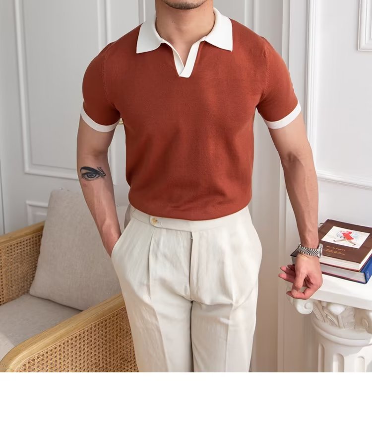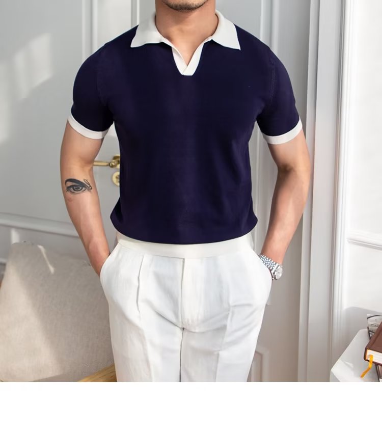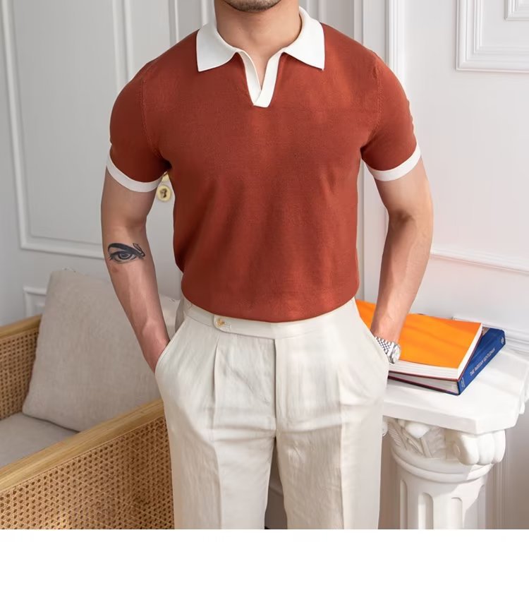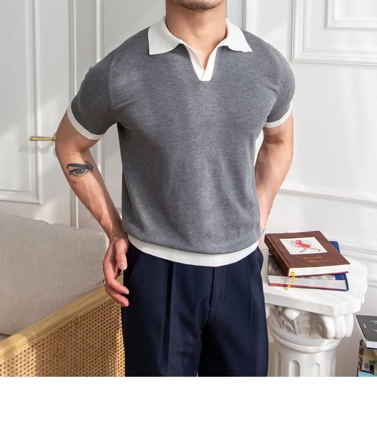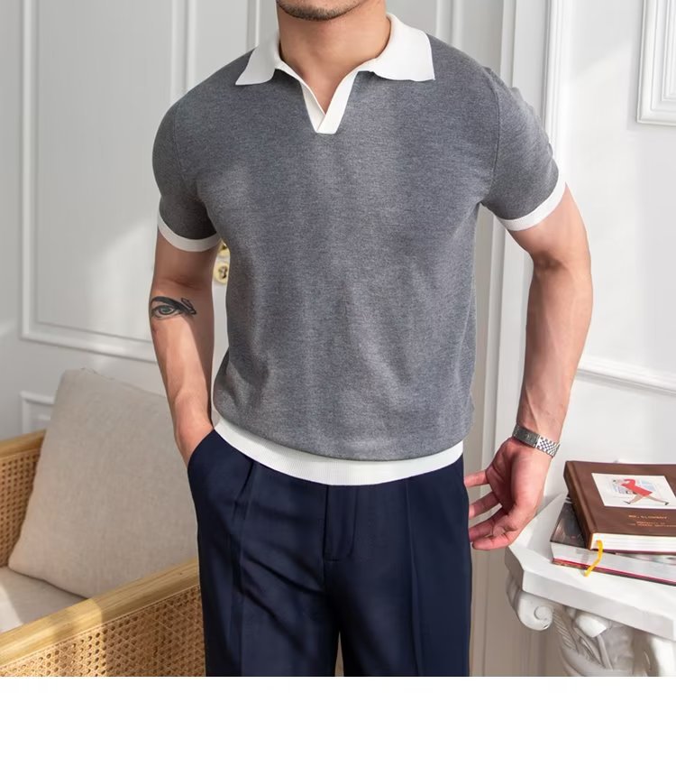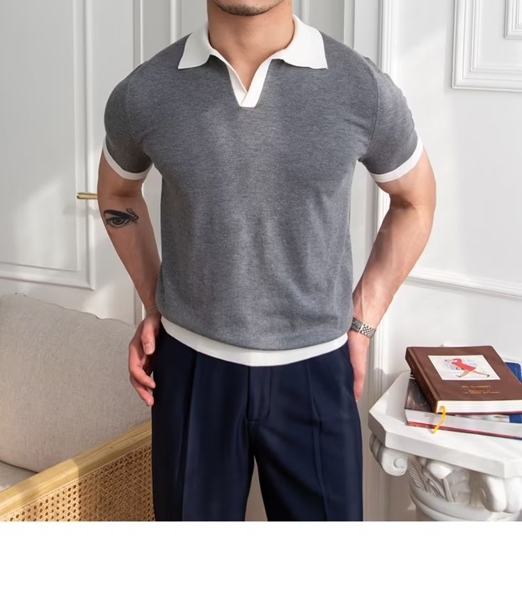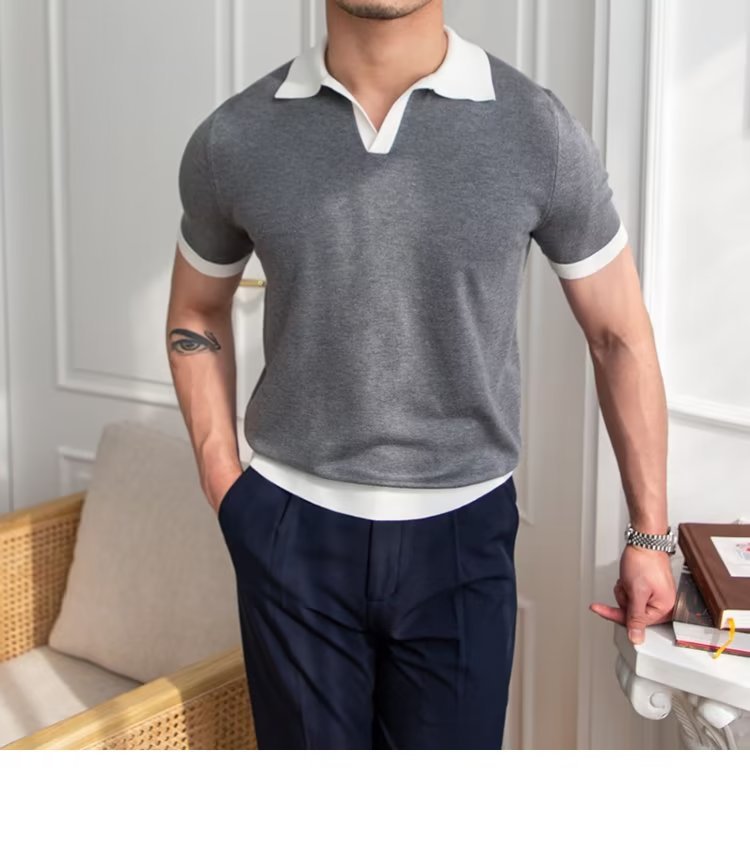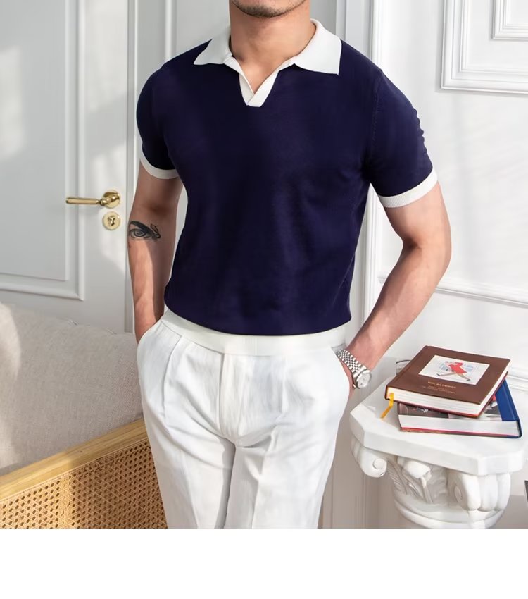 Polo de manga corta de color sólido, estilo japonés informal y moderno, nuevo estándar para hombre, moda juvenil y popular para el verano 2025.