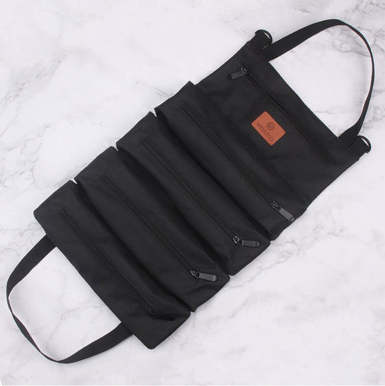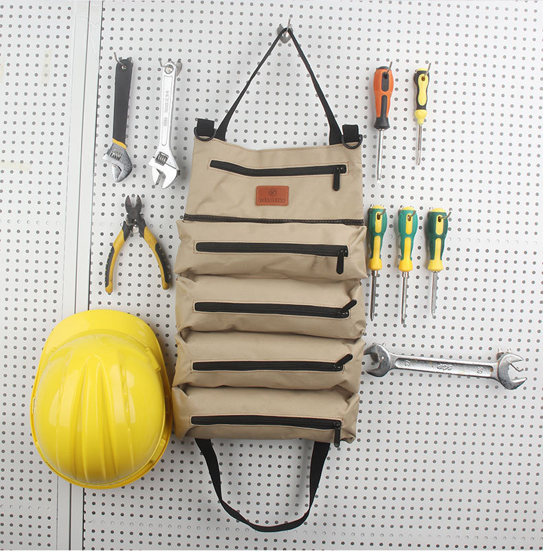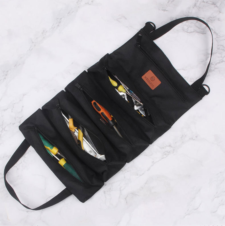 Bolsa de herramientas de lona, multifuncional y duradera, bolsa de cosméticos de reparación especial para carpintería y electricistas, bolsa de herramientas portátil para coche enrollable