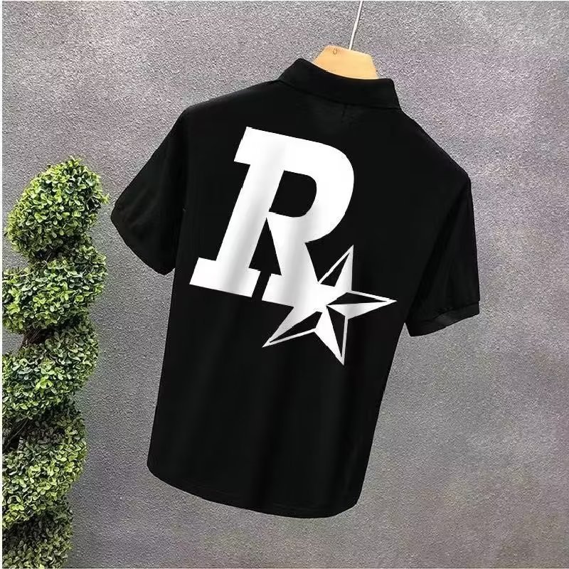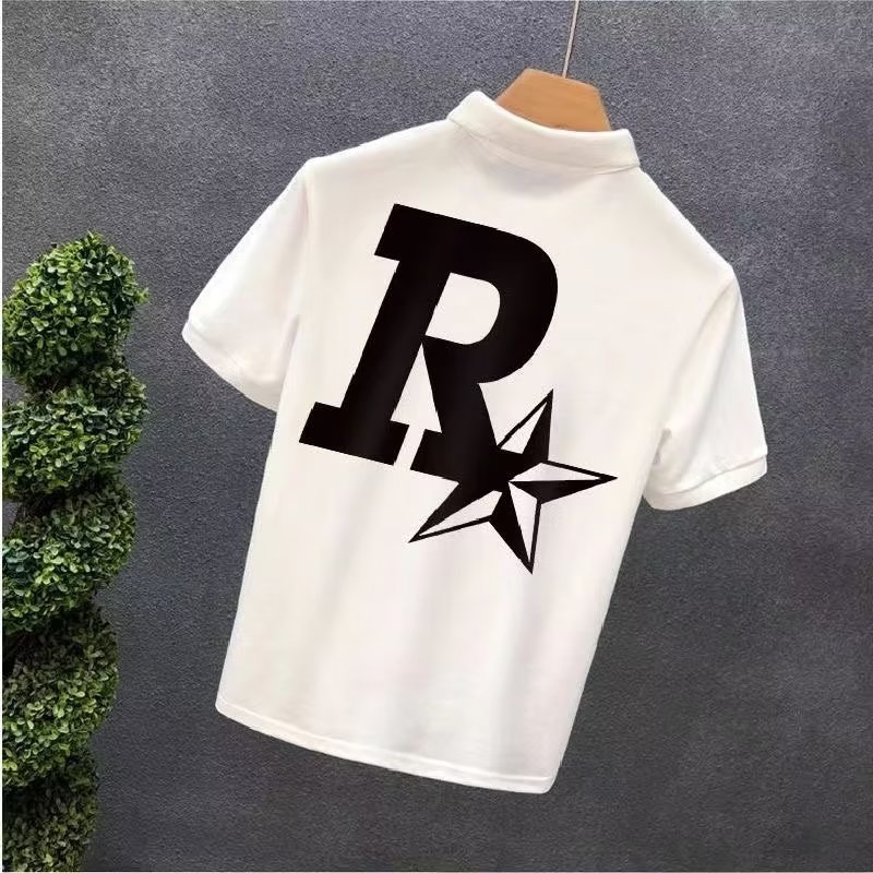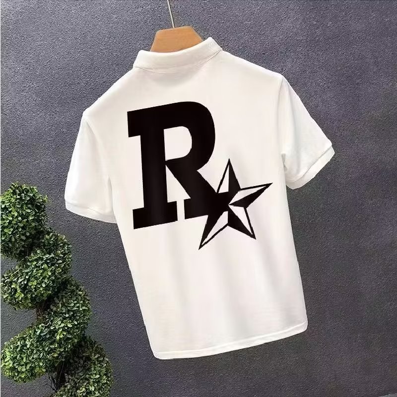 Verano 2023 camisa de Polo para hombre verano estampado de estrellas suelta estilo Hong Kong versátil estudiante casual cuello redondo camisa de manga corta blanco